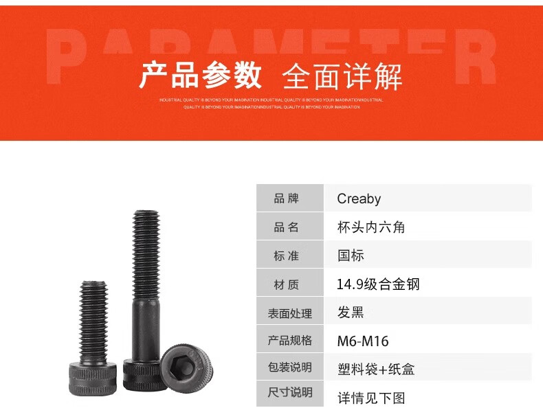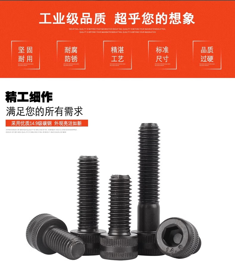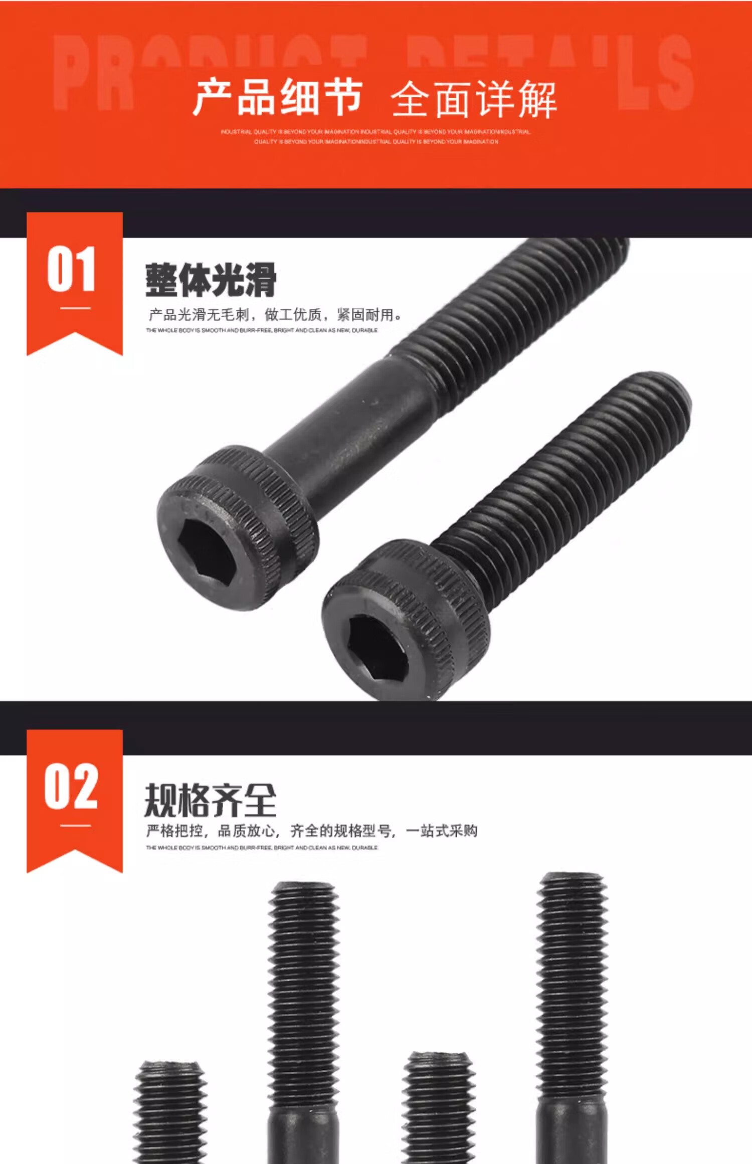Creaby14.9 grade hexagon socket screws high strength bolts extended full-thread half-thread screws alloy steel cup head M6M8-M16 M8x30 5 pcs