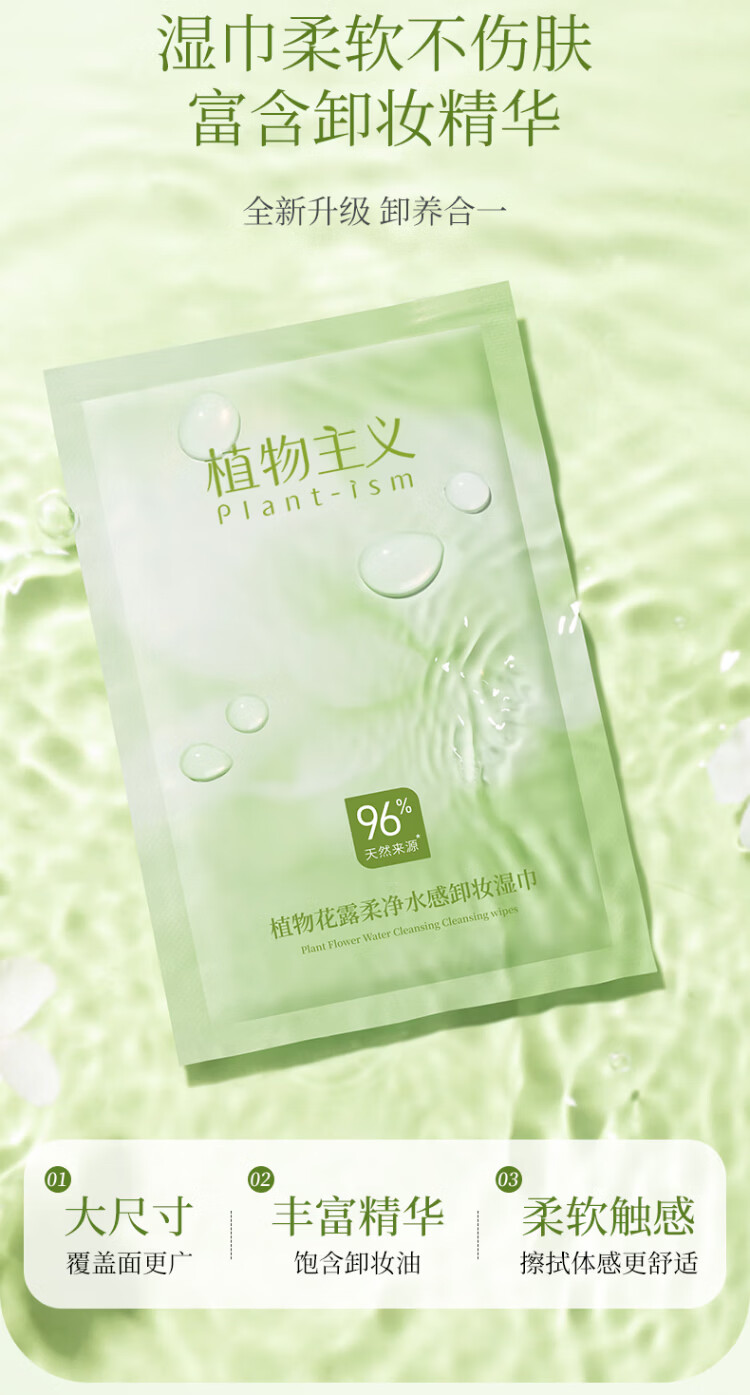 Botanical makeup remover wipes individually packaged, deep cleansing sensitive skin, non-irritating, travel size, lazy portable three-in-one makeup remover wipes, 3 boxes of 90 pieces, plus 20 pieces for free