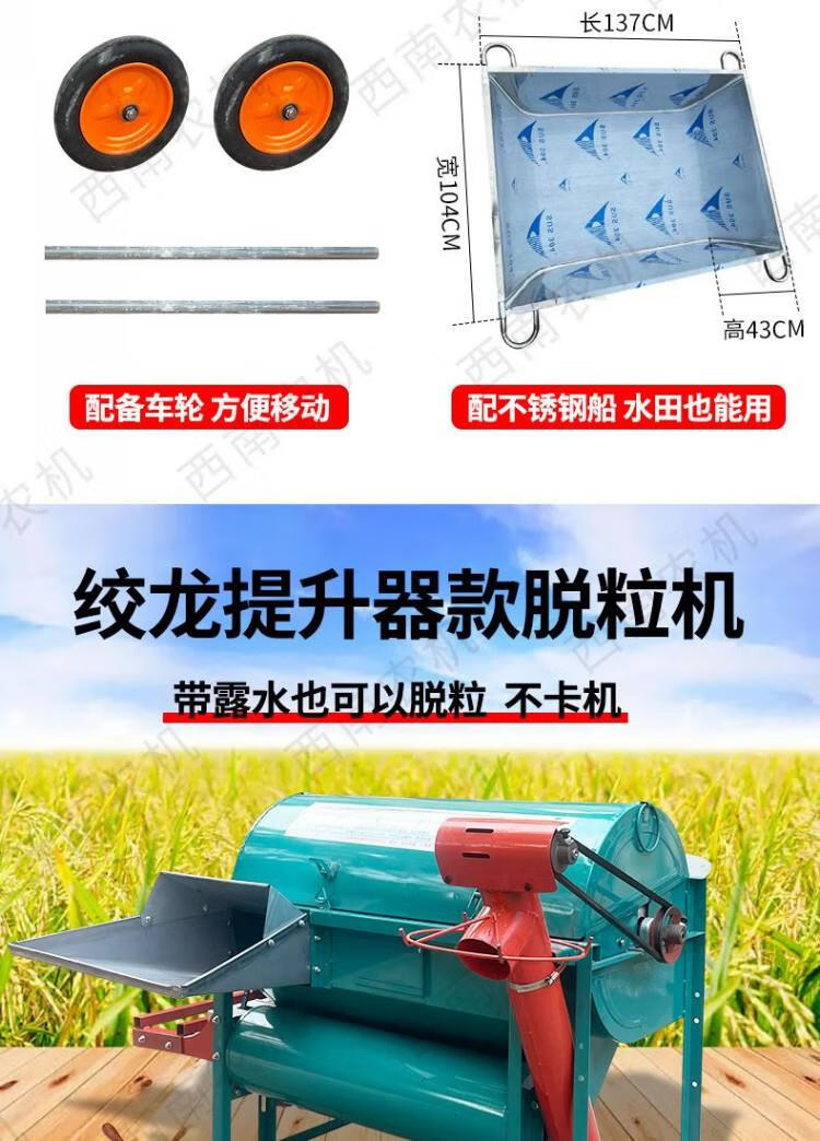 Wen Yijia fully automatic new rice threshing machine fully fed threshing machine household harvester rice automatic bagging and threshing upgraded model wet and dry + wheels + electric start diesel