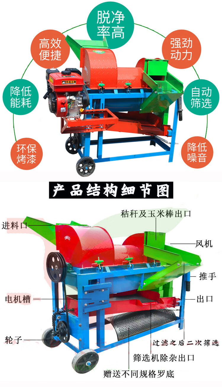 Wen Yijia customized small multi-function corn thresher soybean sorghum rice wheat millet cob peeling threshing and screening small multi-function thresher (bare metal)