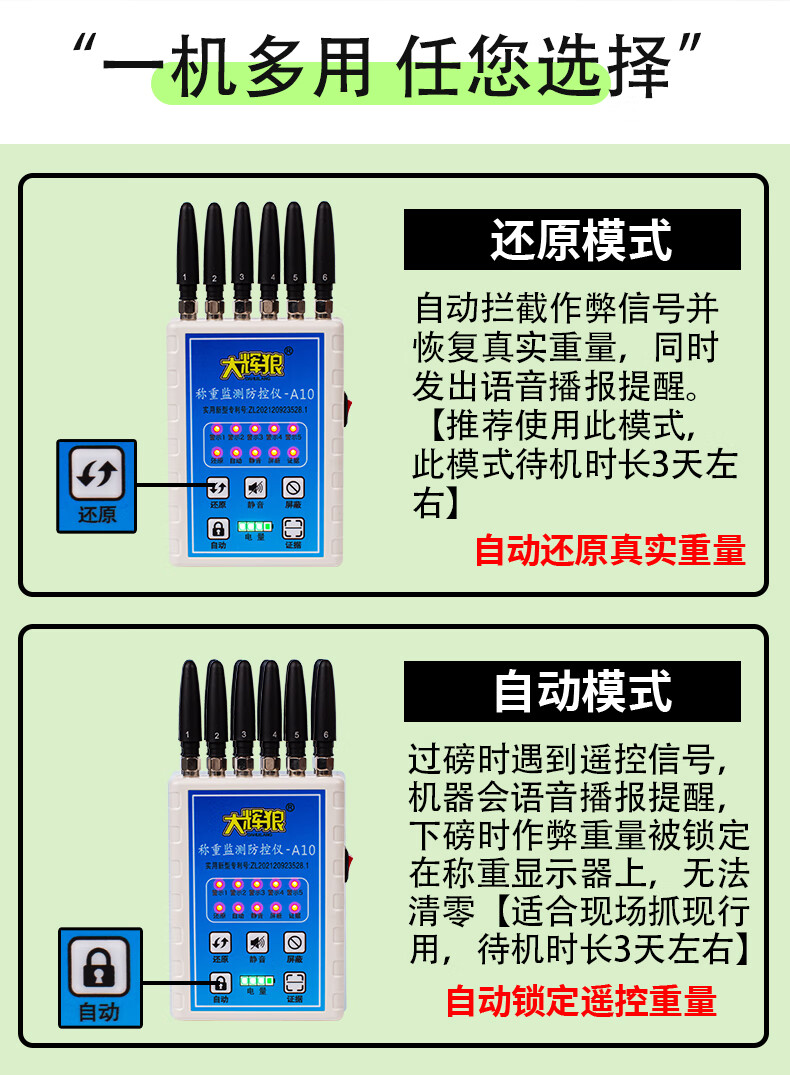 Dahui Wolf Big Bad Wolf weighing monitor floor scale anti-remote control instrument anti-cheating monitoring and selling grain anti-pit special x3 upgrade A10 blue (new model with power display can be upgraded)