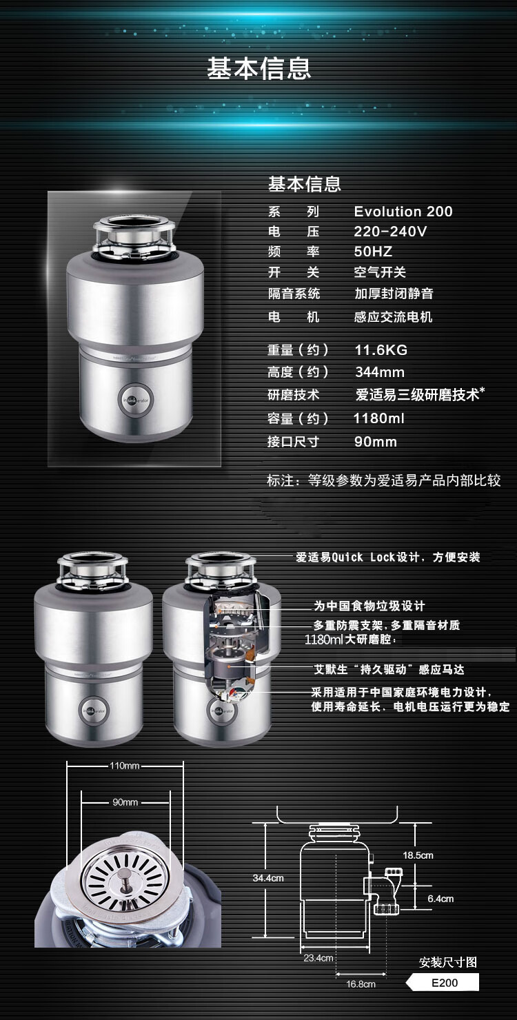 InSinkErator E200 food waste disposer comes with luxury original E200 package installation