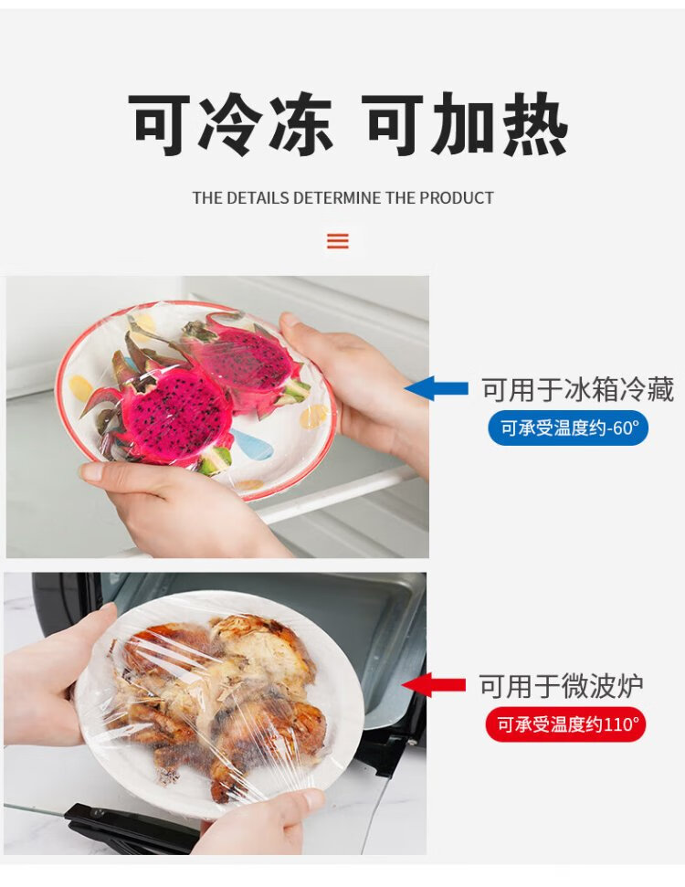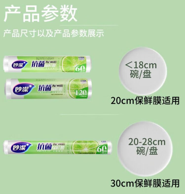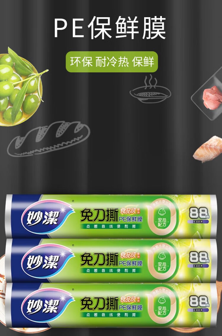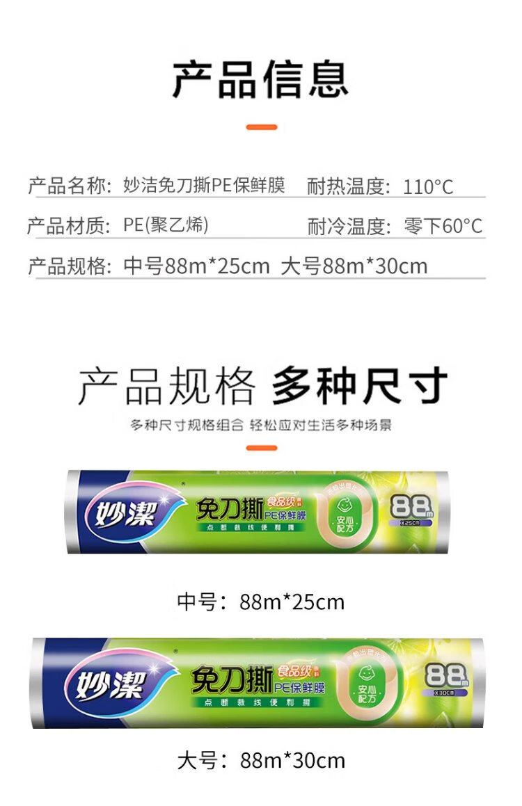 MIAOJIE plastic wrap cover, knife-free, tear-off, point-breaking, food-grade plastic wrap, high temperature resistant, suitable for refrigerator, microwave, steamer, large bowl 30cm 88m
