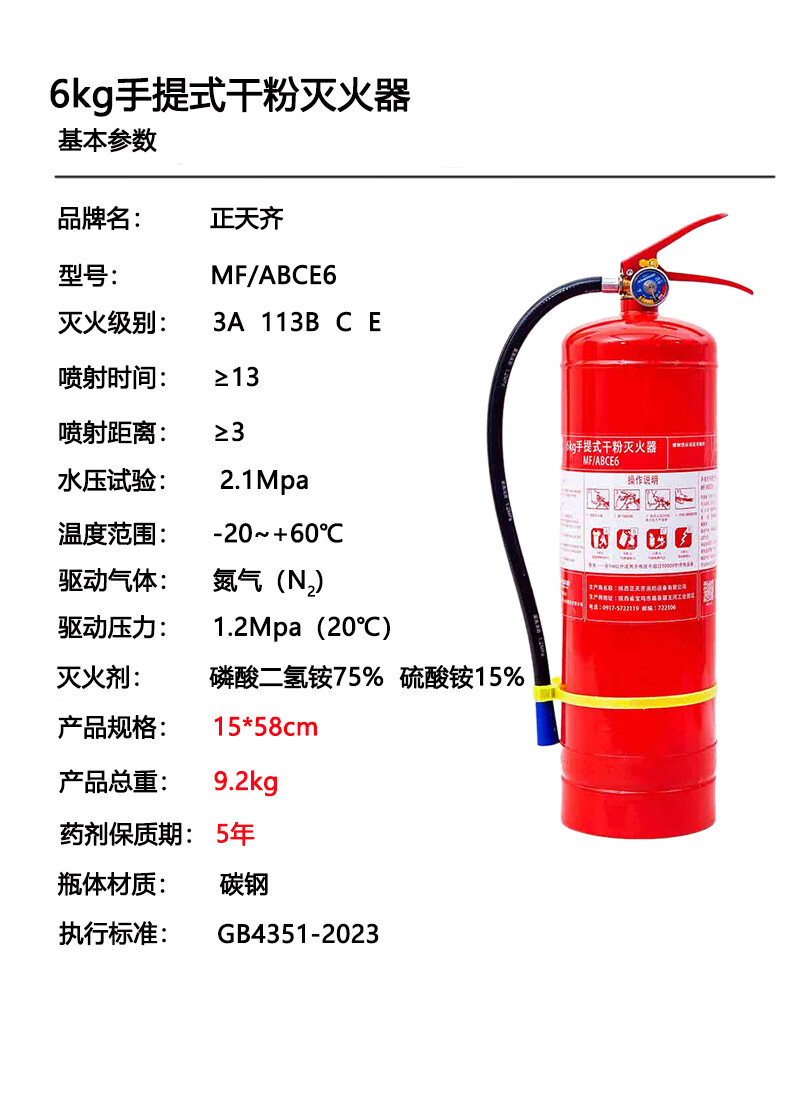 Zhengtianqi portable dry powder fire extinguisher portable small 6 kg vehicle household fire 3C certified equipment MF/ABCE6