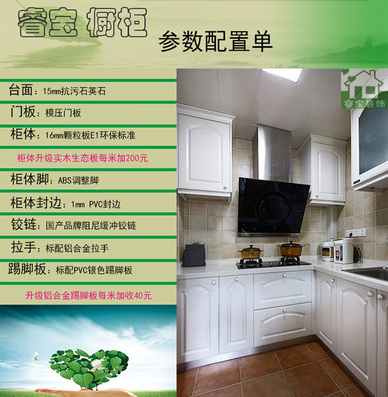 Wen Yijia custom-made integrated cabinets with simple modern style blister molded door kitchen integrated kitchen cabinets quartz stone countertops pet+quartz stone+ecological board 1 meter