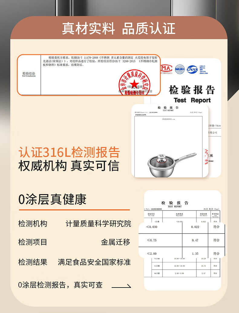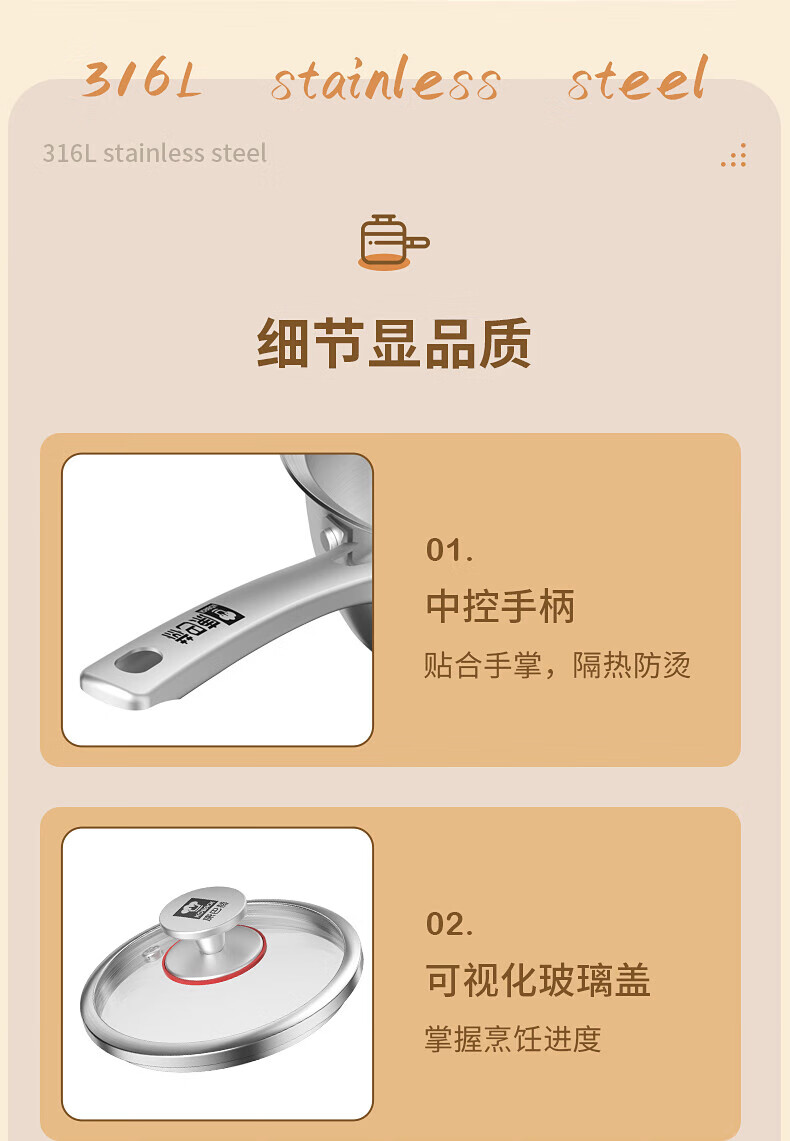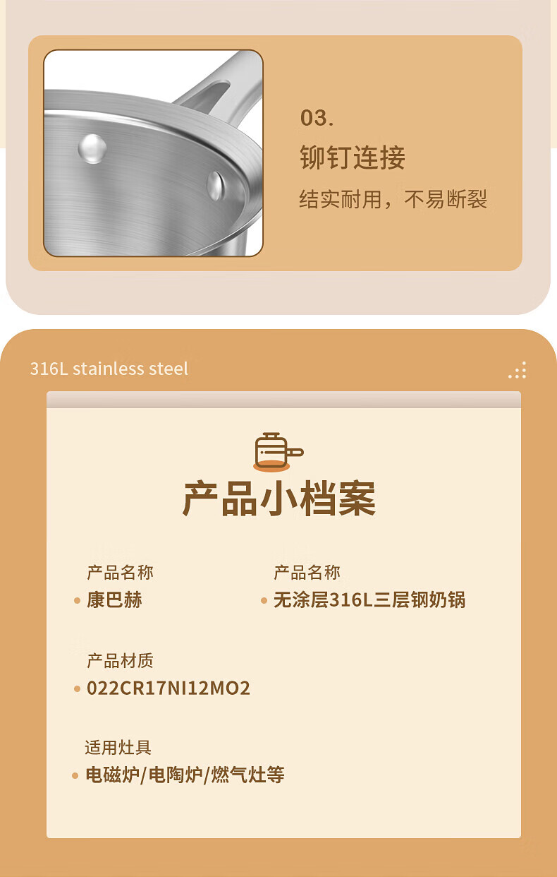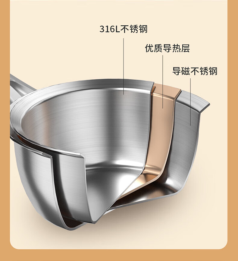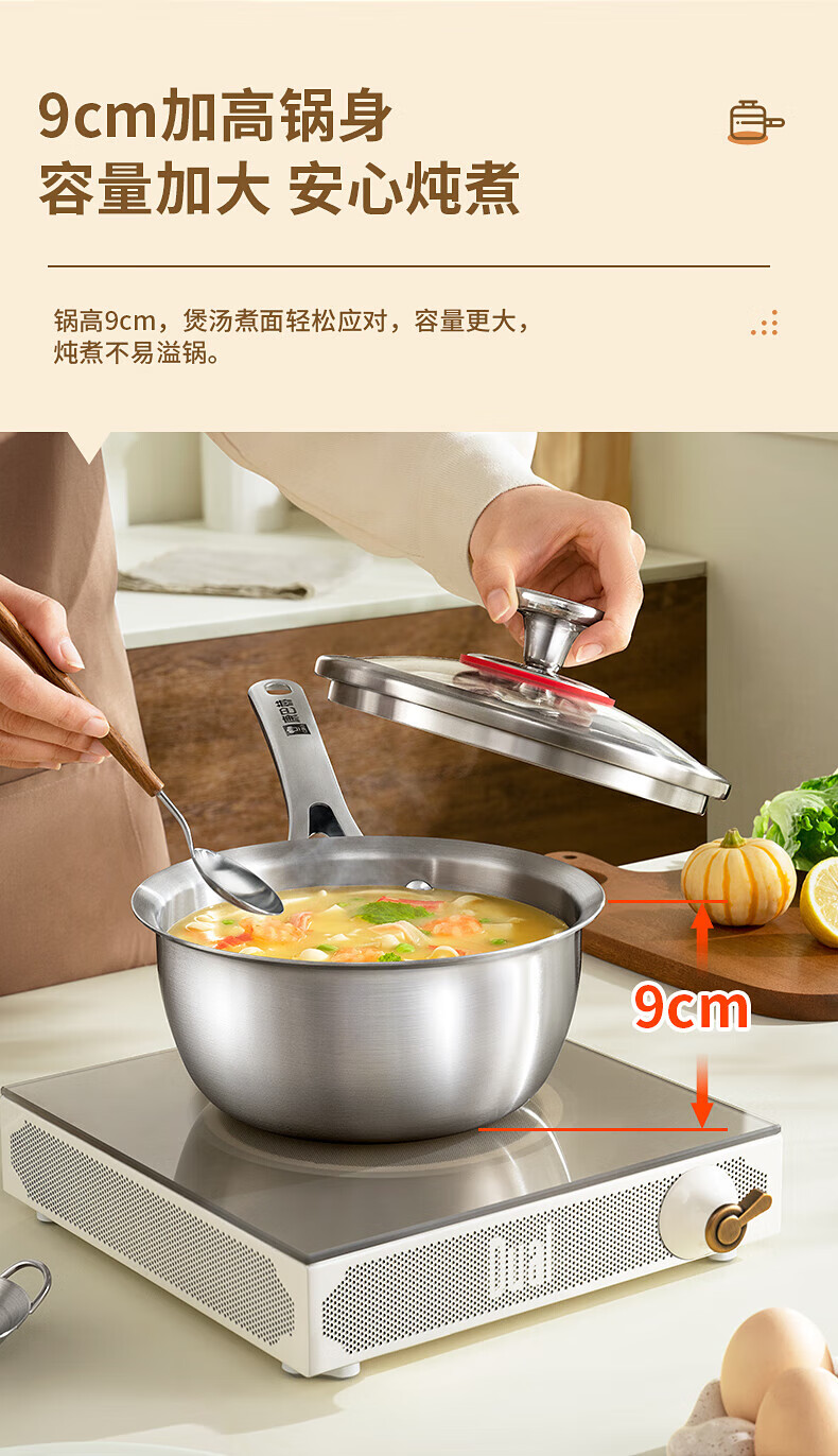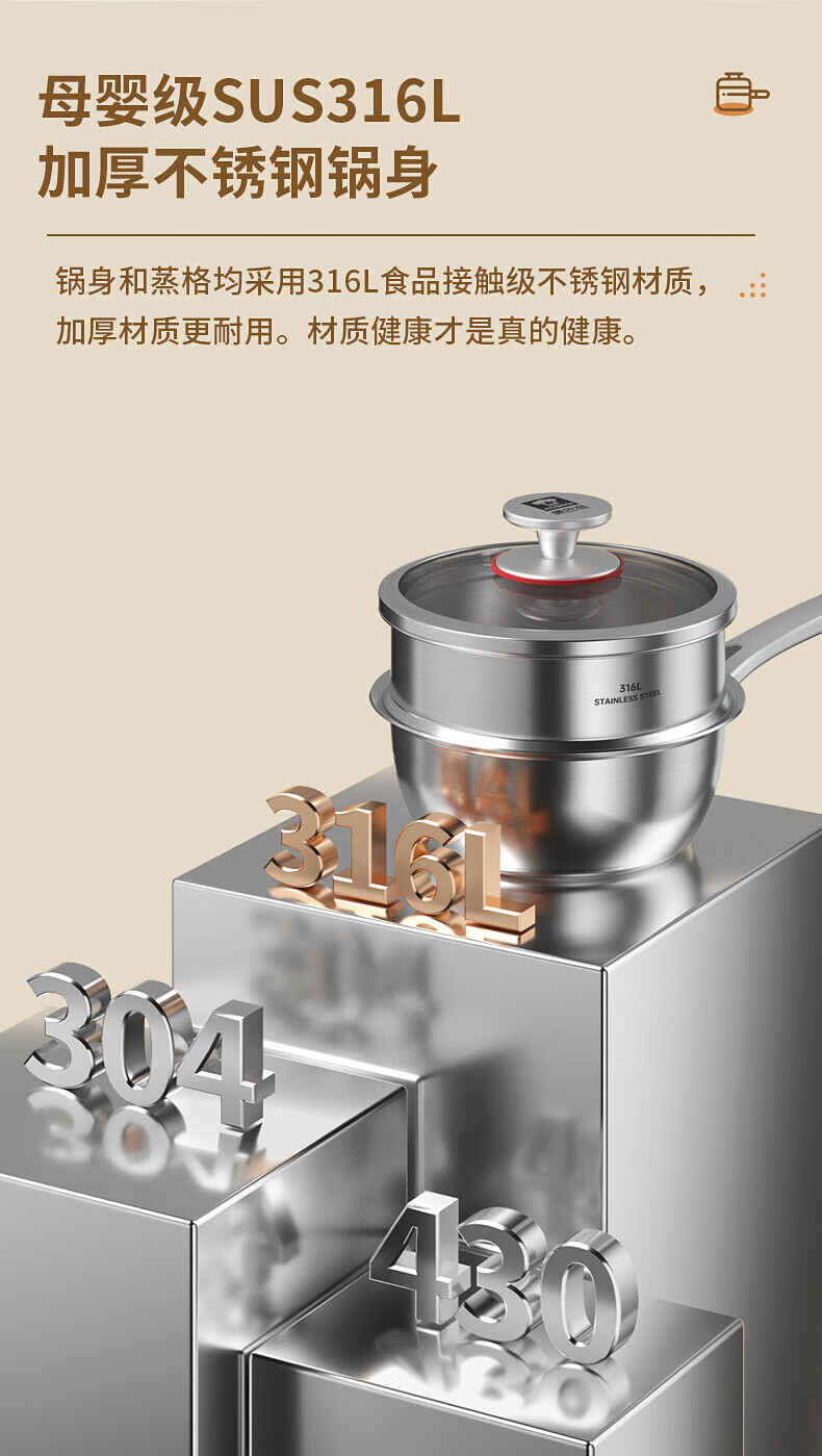 Konbach uncoated milk pot and food supplement pot 316L stainless steel baby baby cooking all-in-one stainless steel small milk pot and noodle pot 316L thickened body milk pot + steamer 18cm