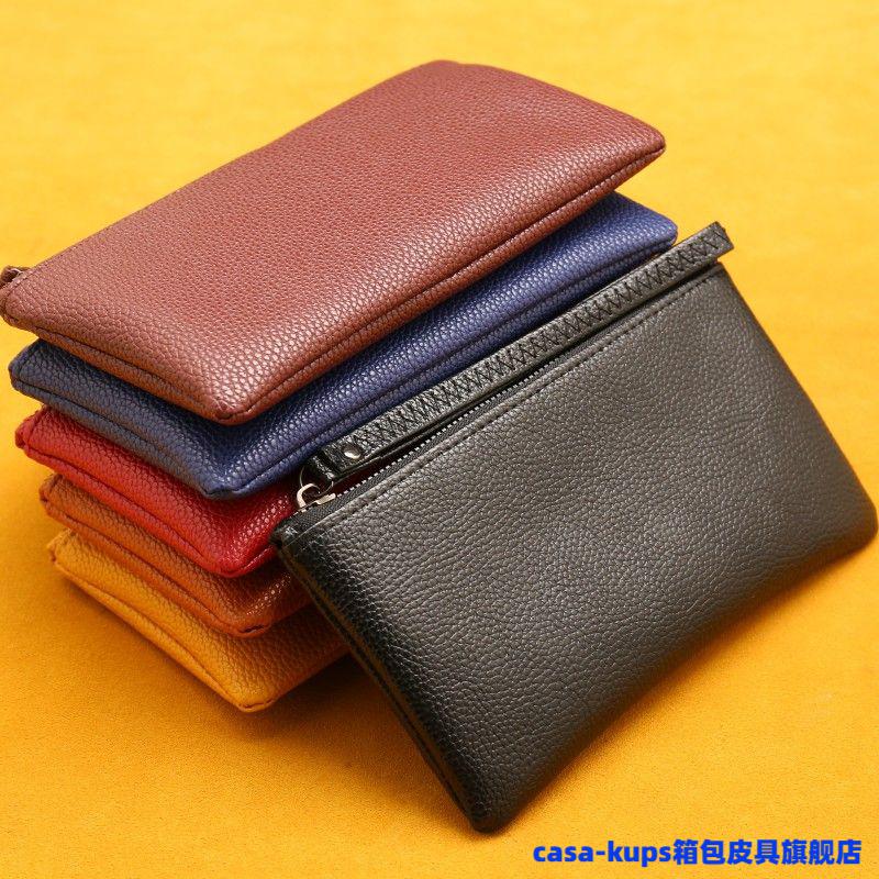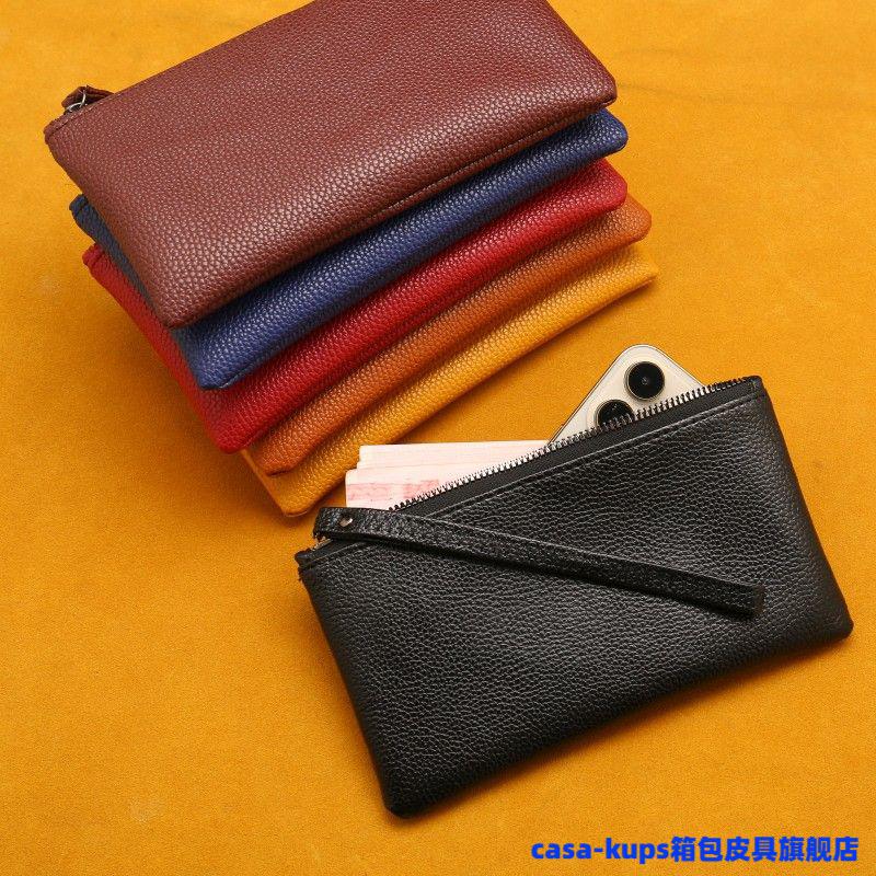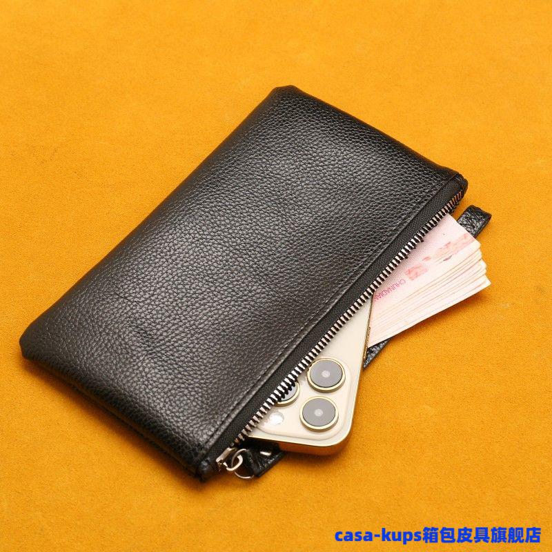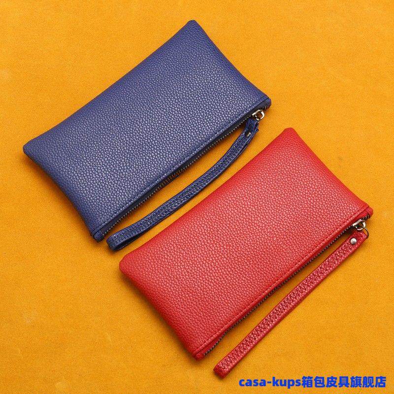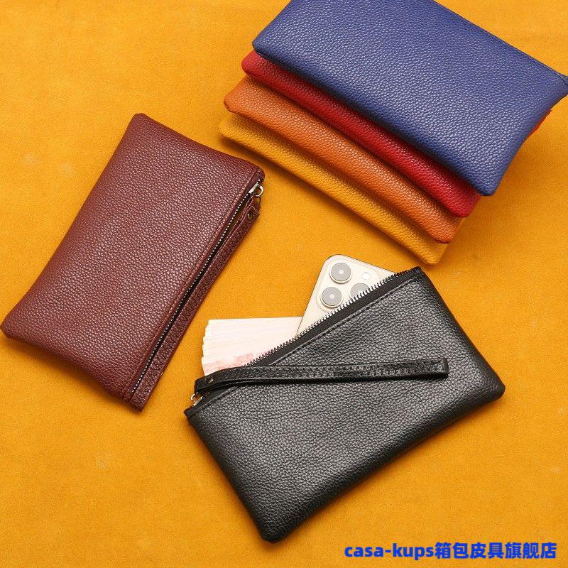 Casa-kupsCK cowhide men and women mini coin purse leather zipper coin bag short small wallet hand key bag card bag female sapphire blue