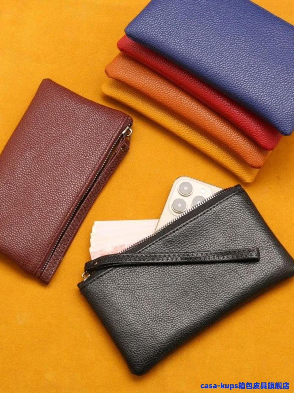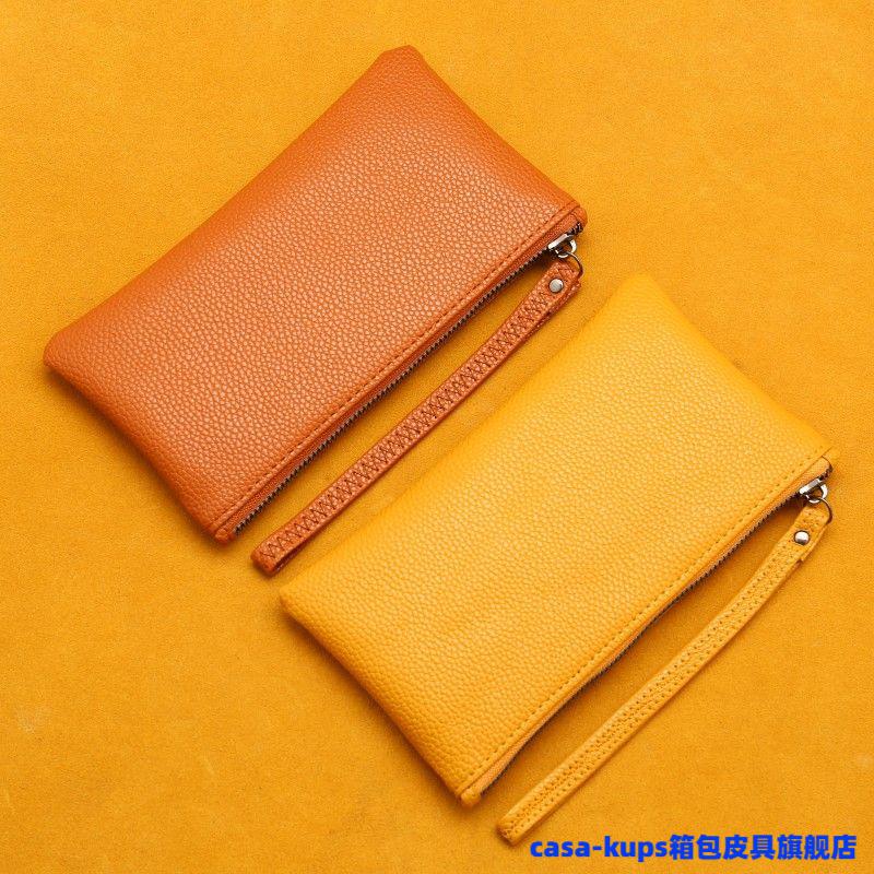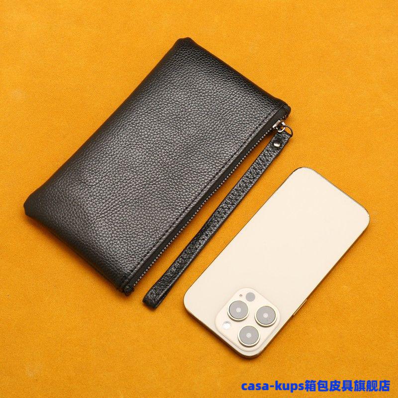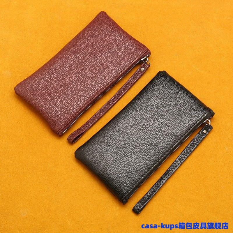 Casa-kupsCK cowhide men and women mini coin purse leather zipper coin bag short small wallet hand key bag card bag female sapphire blue