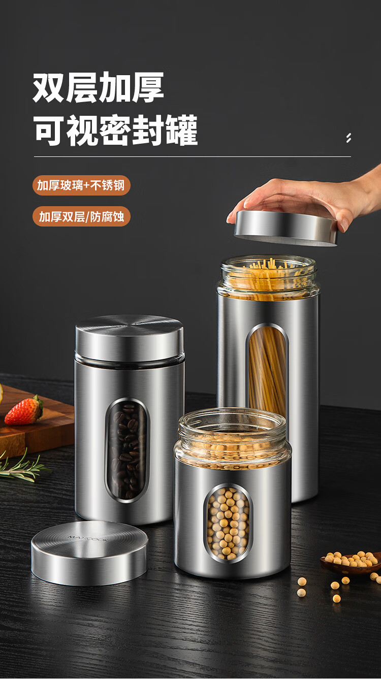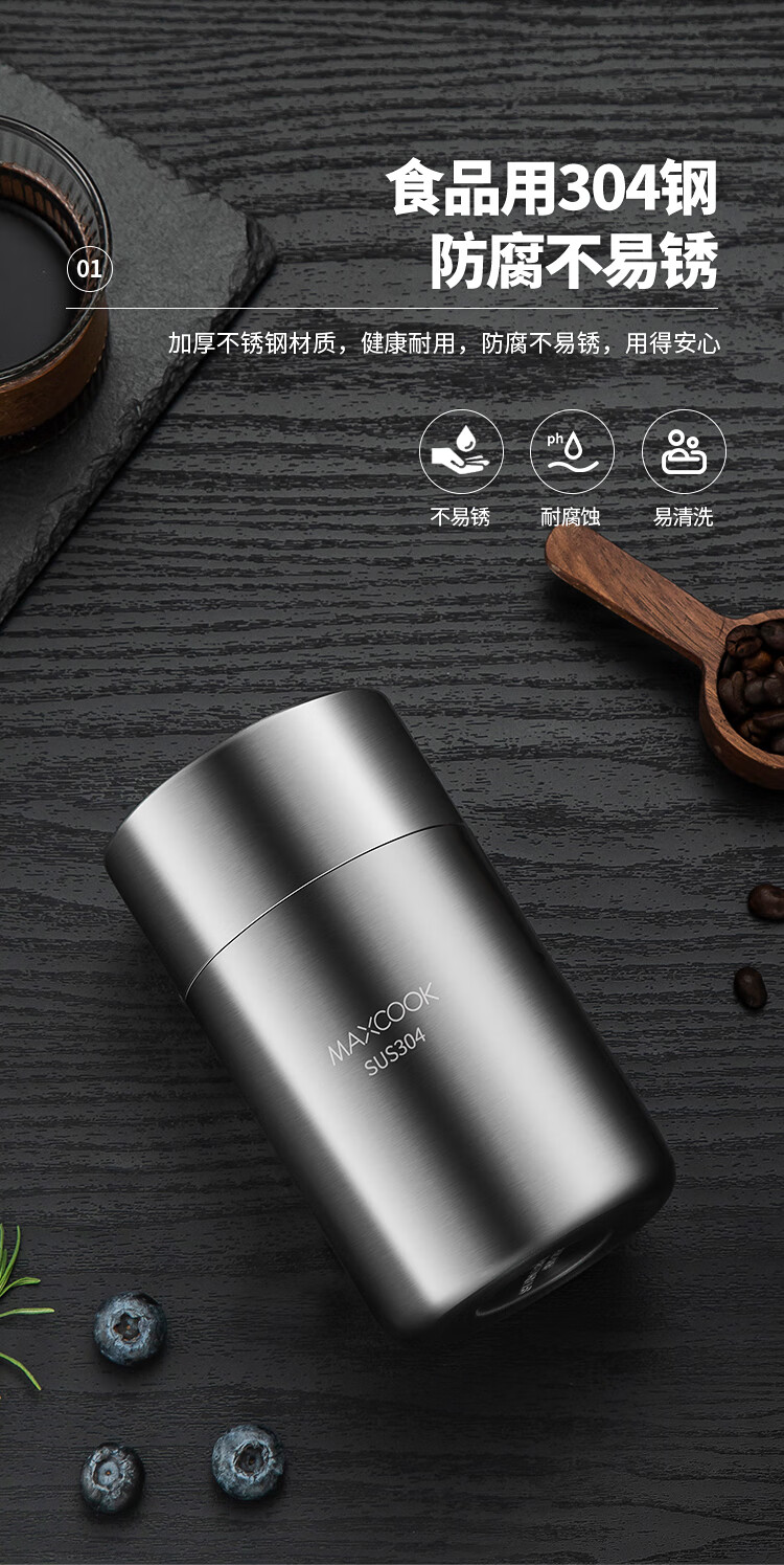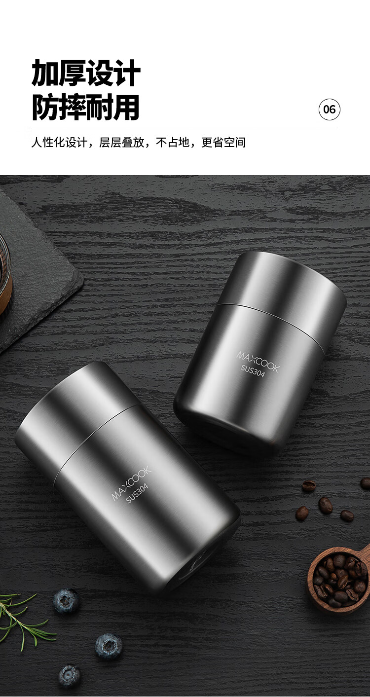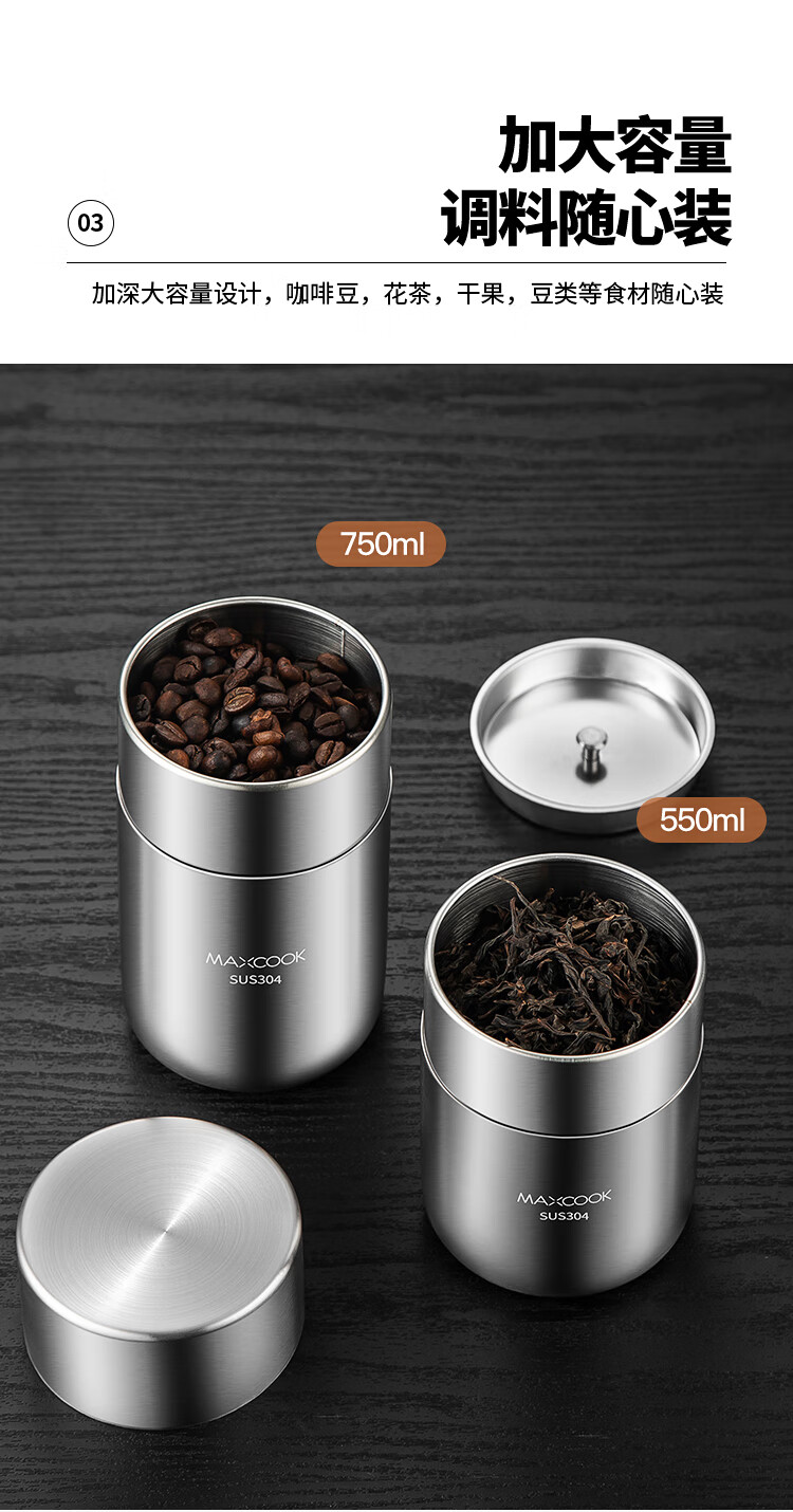 MAXCOOK sealed jar seasoning jar tea jar spice jar storage jar thickened stainless steel storage storage sealed jar portable 304 stainless steel storage jar 550ml MCX3505