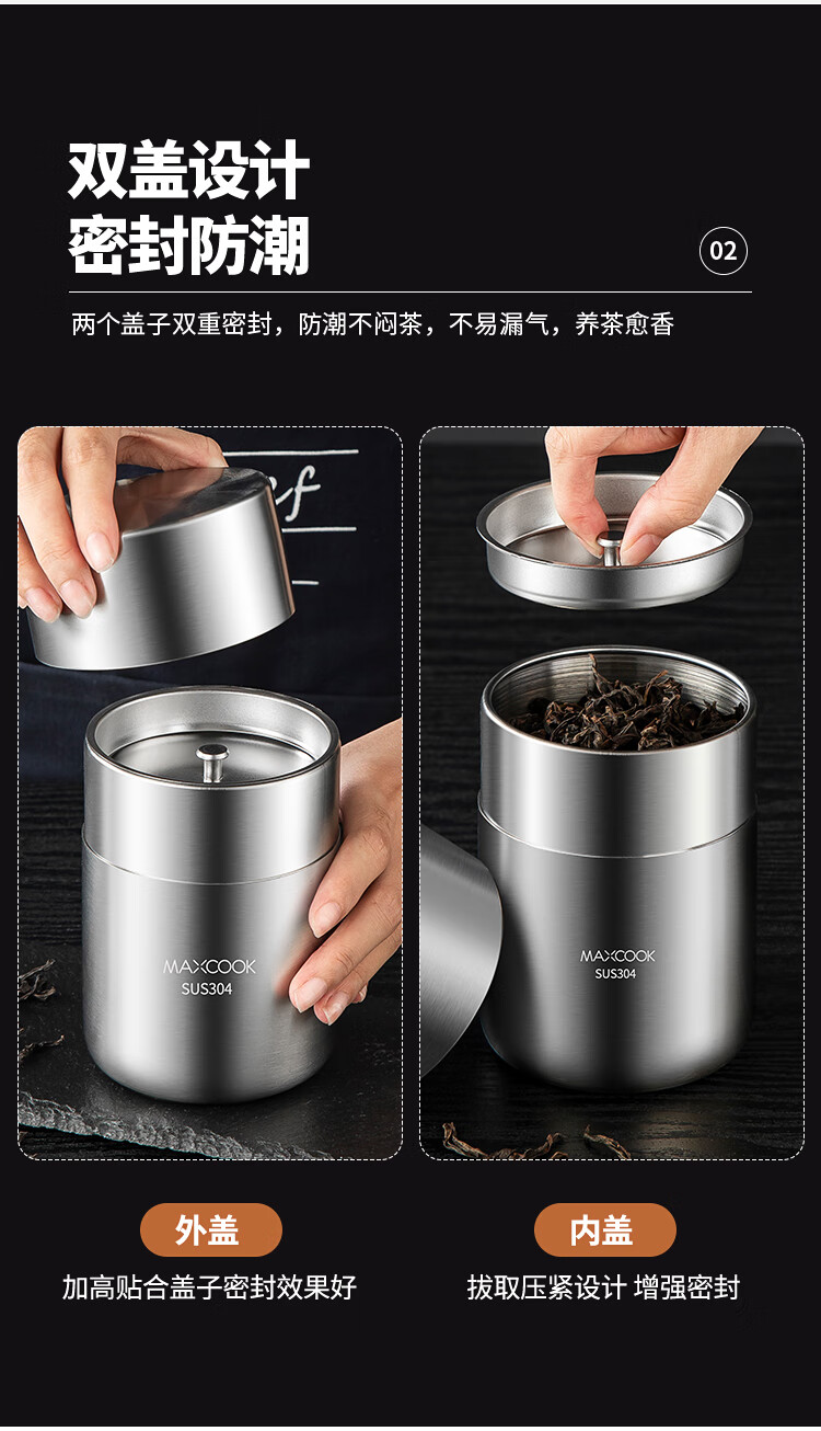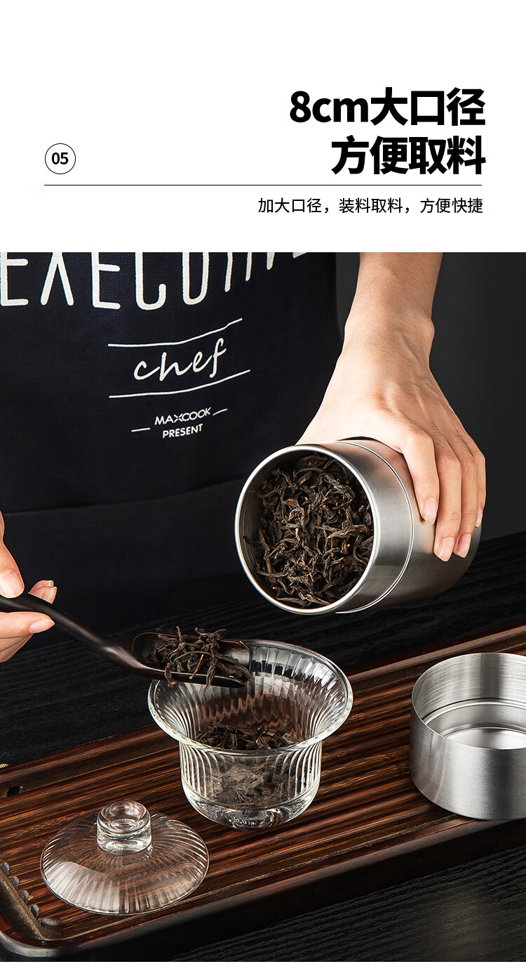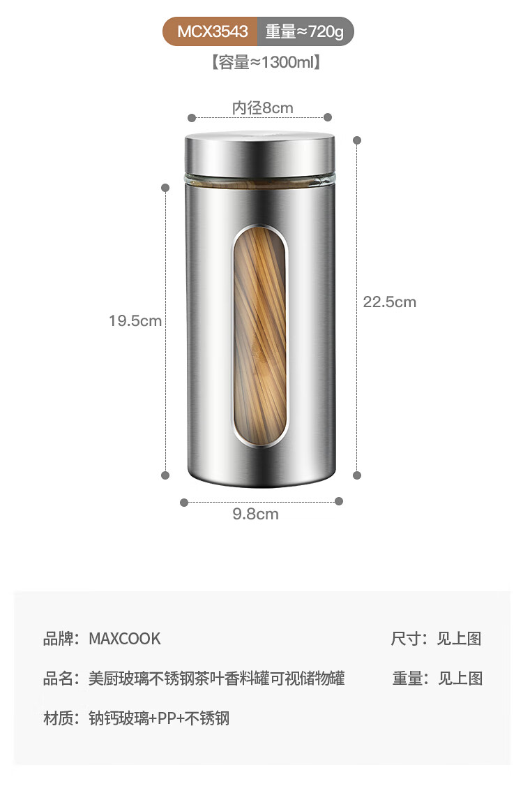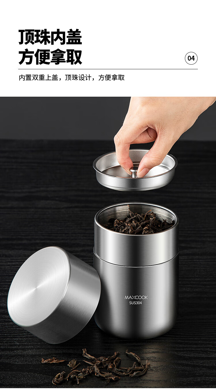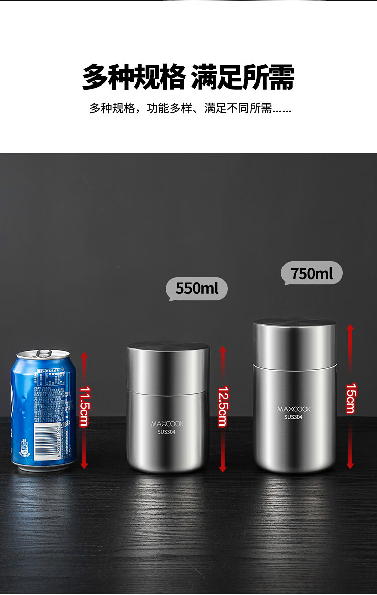 MAXCOOK sealed jar seasoning jar tea jar spice jar storage jar thickened stainless steel storage storage sealed jar portable 304 stainless steel storage jar 550ml MCX3505