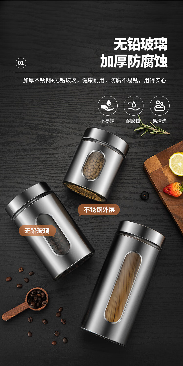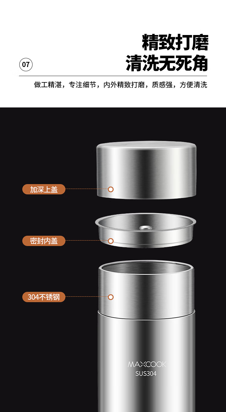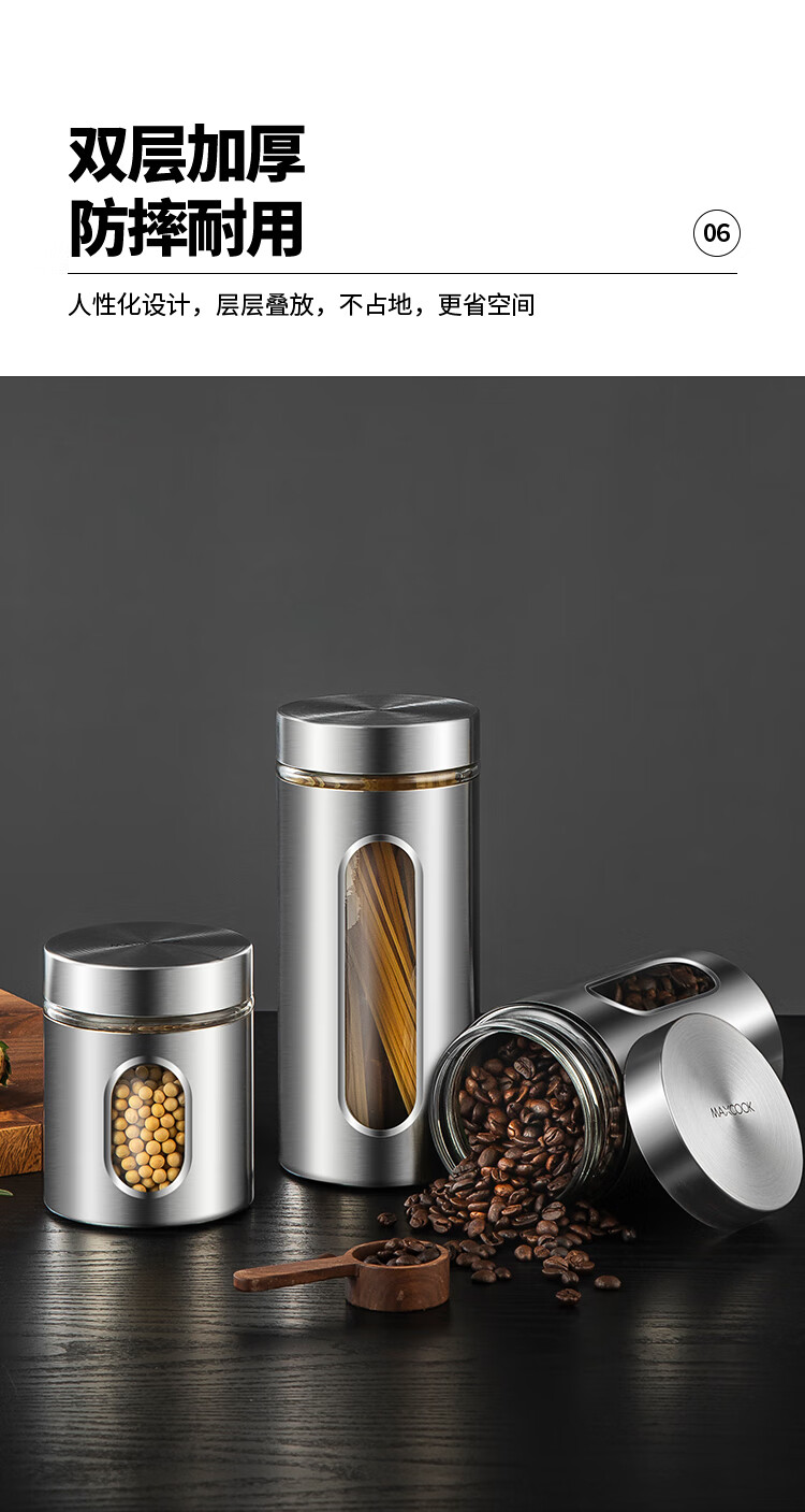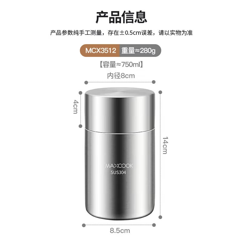 MAXCOOK sealed jar seasoning jar tea jar spice jar storage jar thickened stainless steel storage storage sealed jar portable 304 stainless steel storage jar 550ml MCX3505