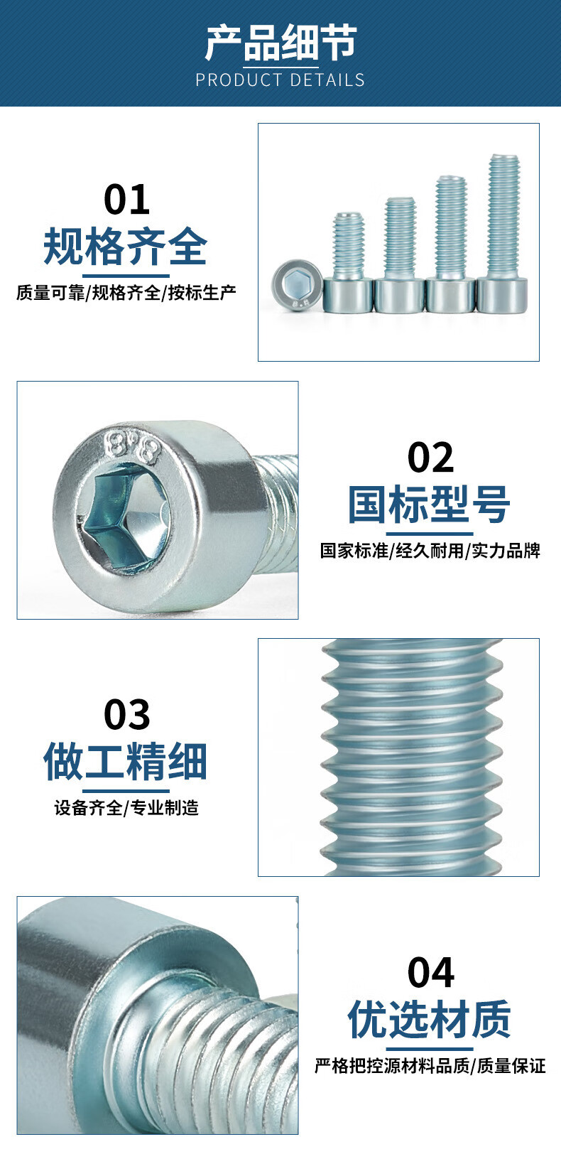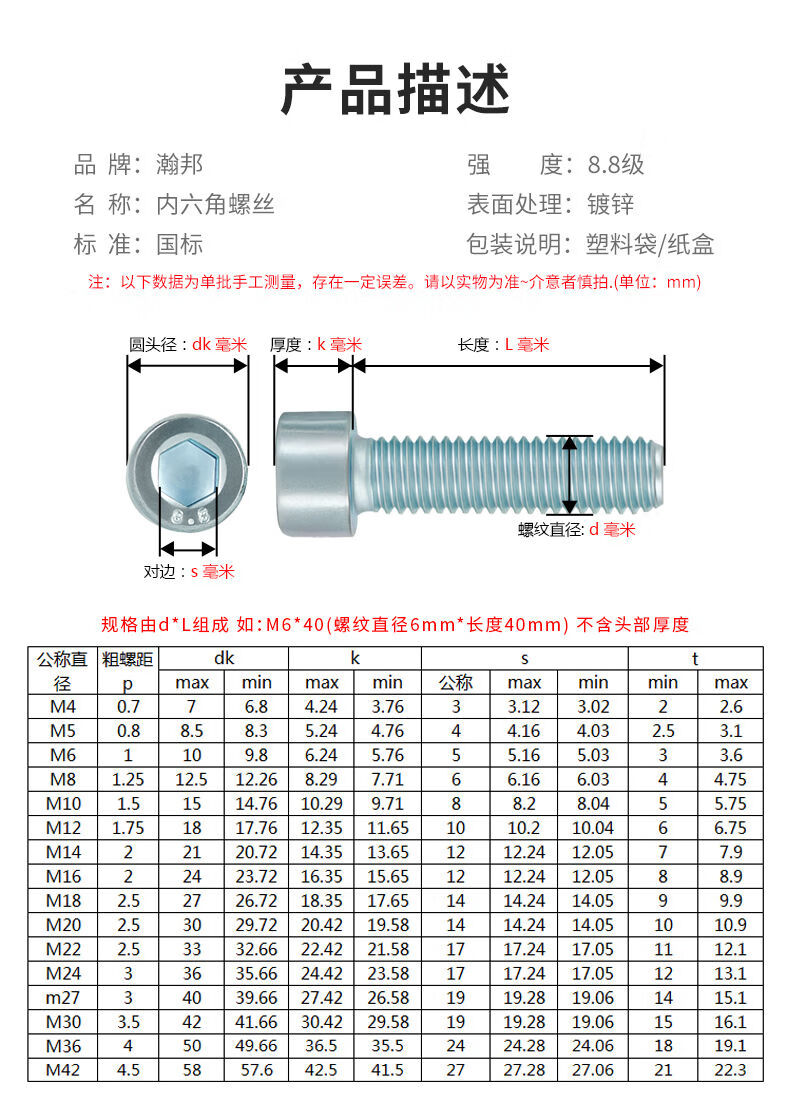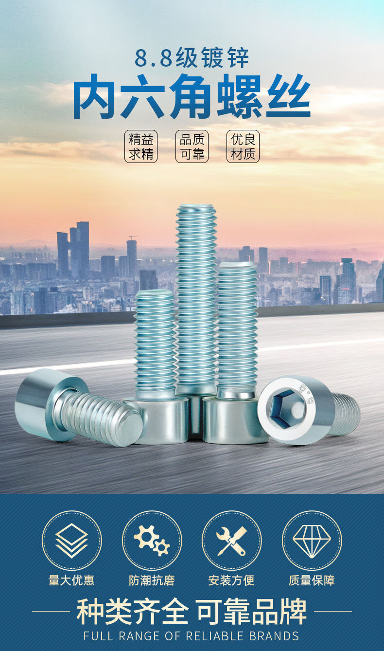 Ling Yuxun customized 8.8 grade galvanized hexagon socket screws high strength cup head screws cylindrical head bolts boxed M5M6M8M10 M4*20 (1700 pieces)