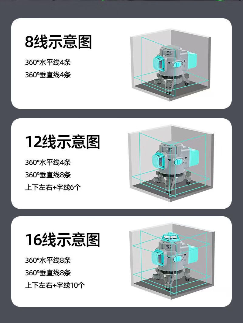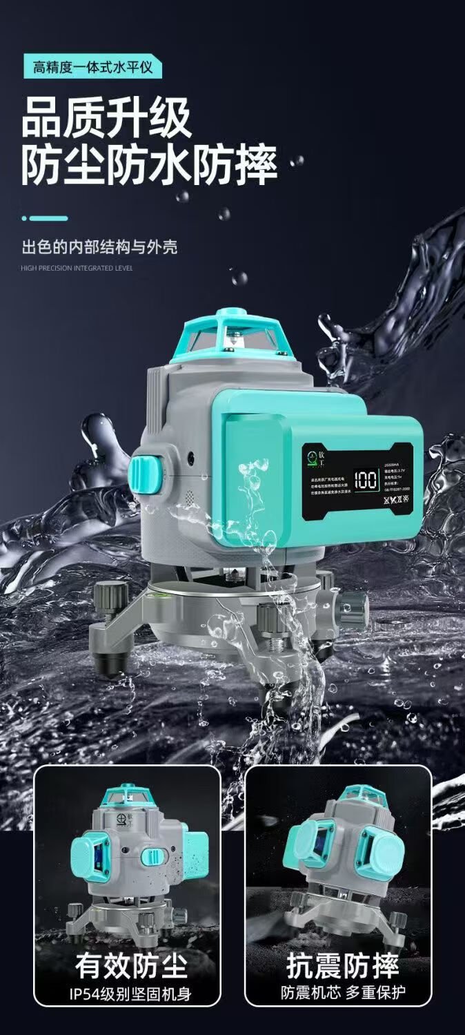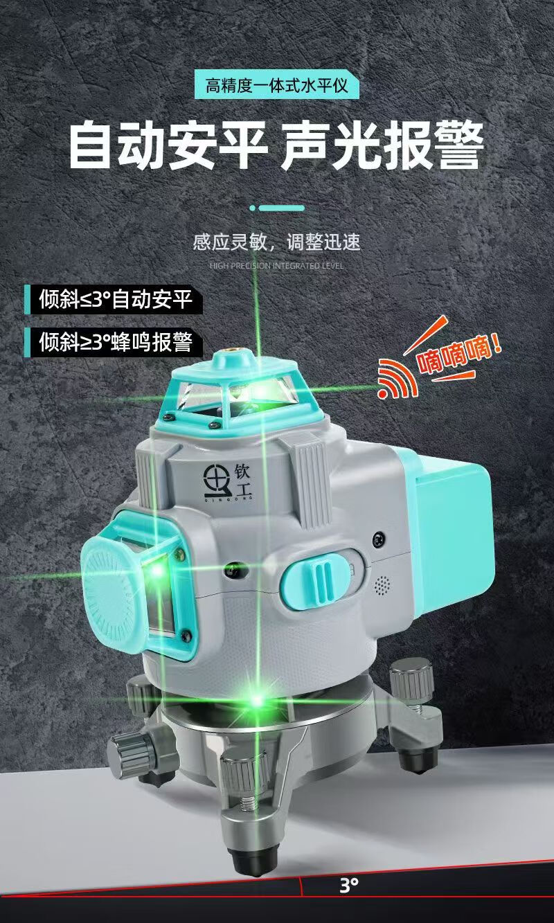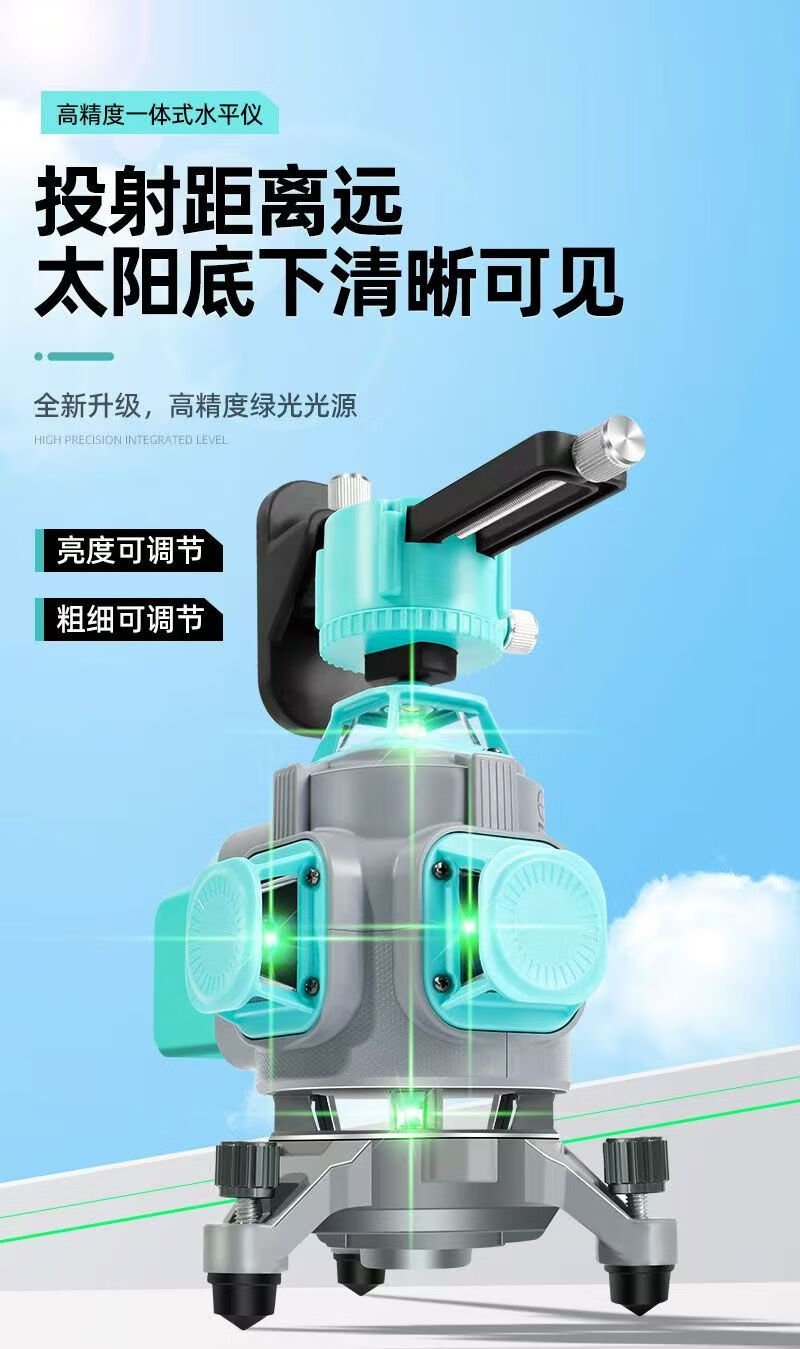 Qingong high-end indoor and outdoor strong green light infrared 12/16 line level blue light wall and floor meter high precision automatic leveling rotation integrated 16 line LD super green light standard