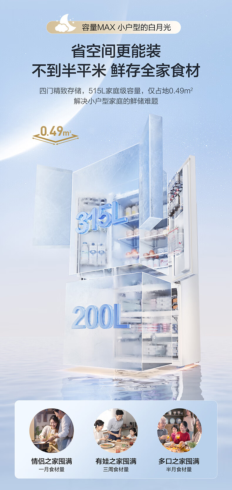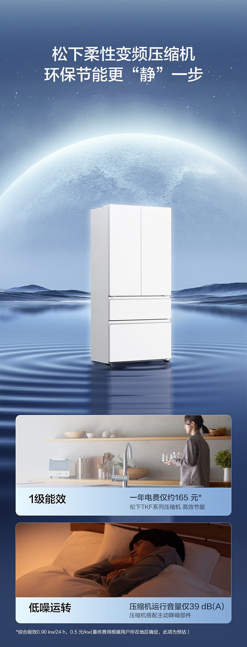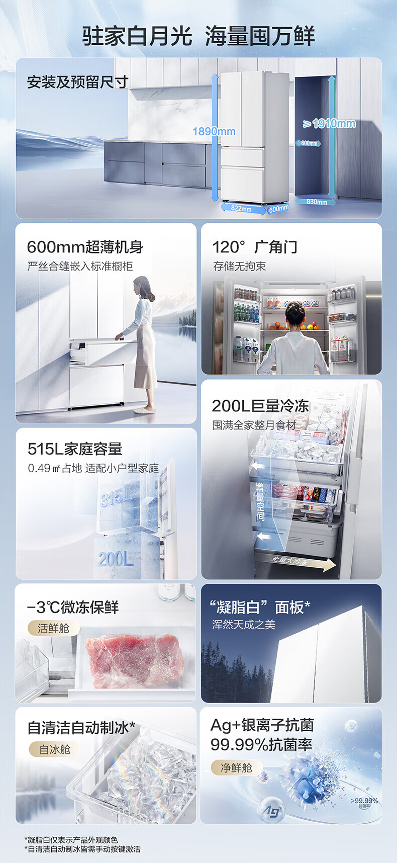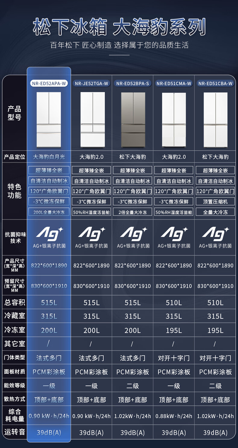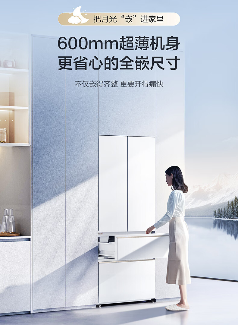 Panasonic 515L French-style multi-door four-door refrigerator 60CM depth ultra-thin zero-embedded automatic ice making dual circulation air duct first-class energy-efficiency large freezer NR-ED52APA-W White Moonlight