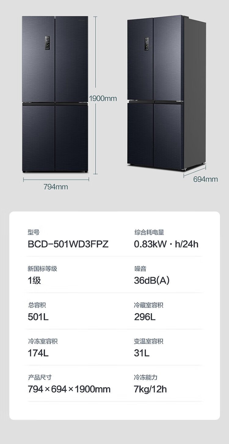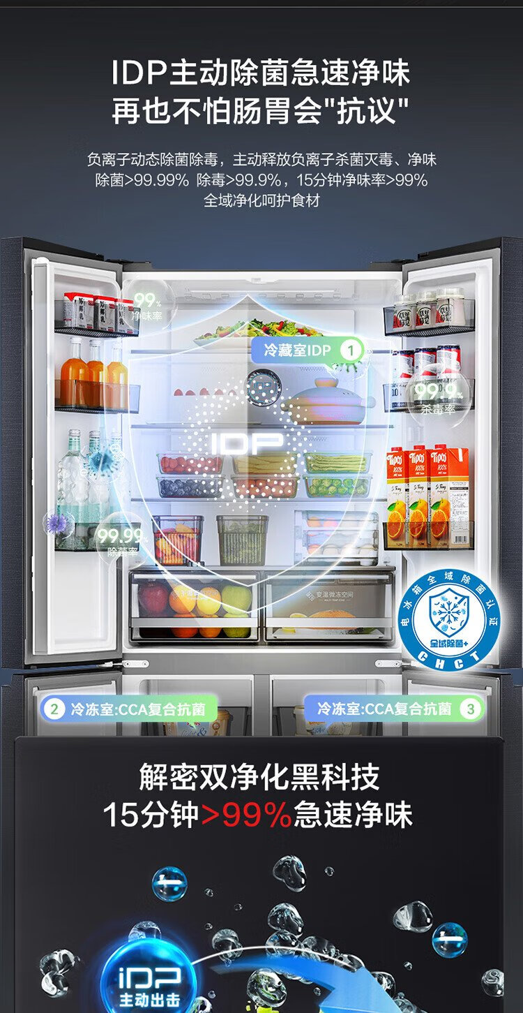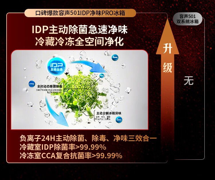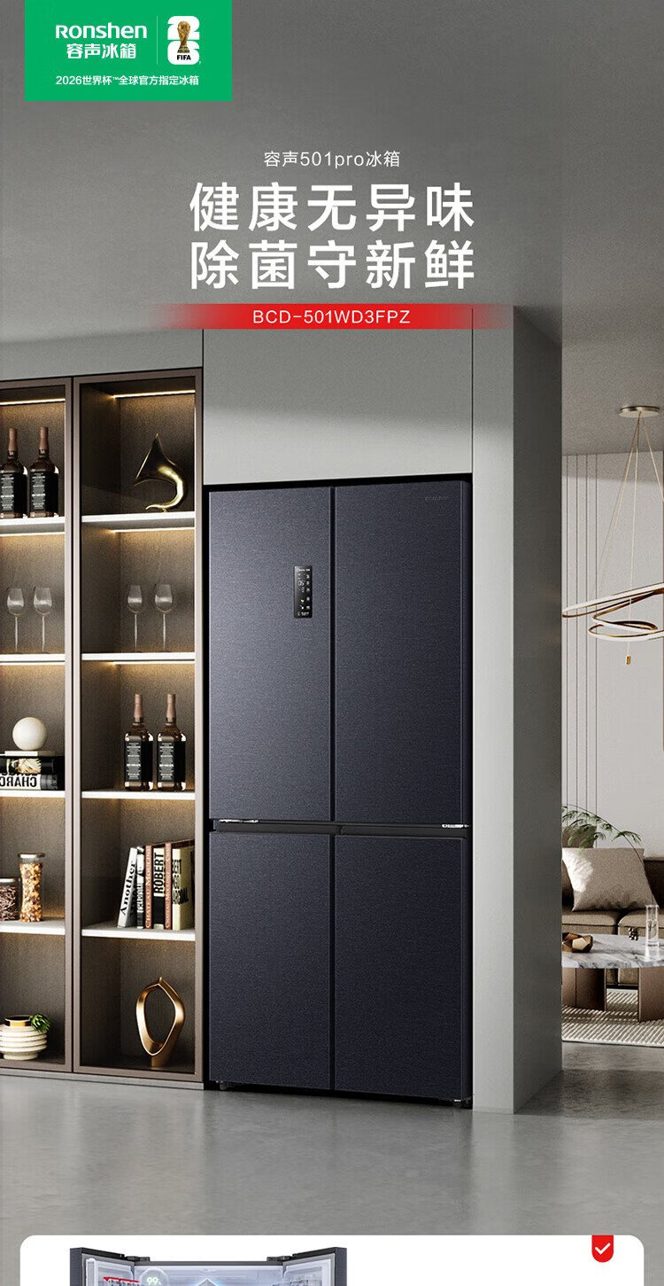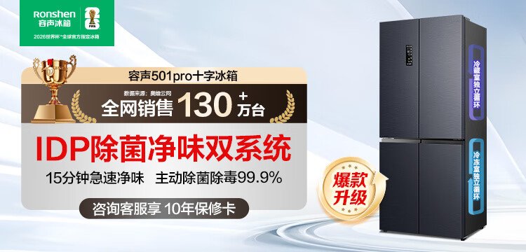 Rongsheng 501proIDP odor-free dual-system dual-circulation cross four-door dual-frequency refrigerator household first-class energy-efficiency energy-saving air-cooled frost-free BCD-501WD3FPZ national subsidy industry hot model | Rongsheng 501 dual-system active sterilization