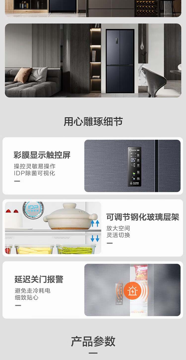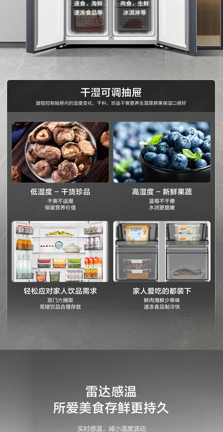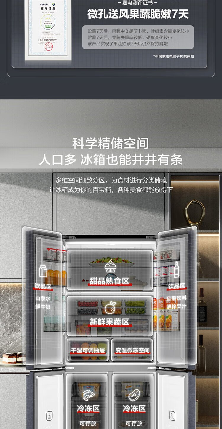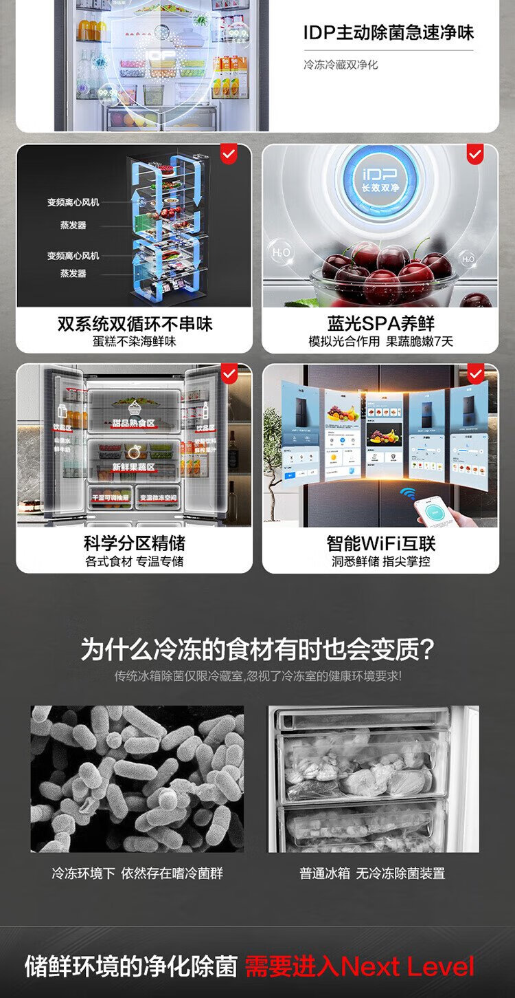 Rongsheng 501proIDP odor-free dual-system dual-circulation cross four-door dual-frequency refrigerator household first-class energy-efficiency energy-saving air-cooled frost-free BCD-501WD3FPZ national subsidy industry hot model | Rongsheng 501 dual-system active sterilization