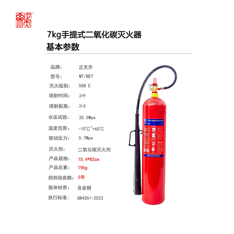 Zhengtianqi portable carbon dioxide fire extinguisher portable 7 kg vehicle household fire protection 3C certified equipment MT/BE7