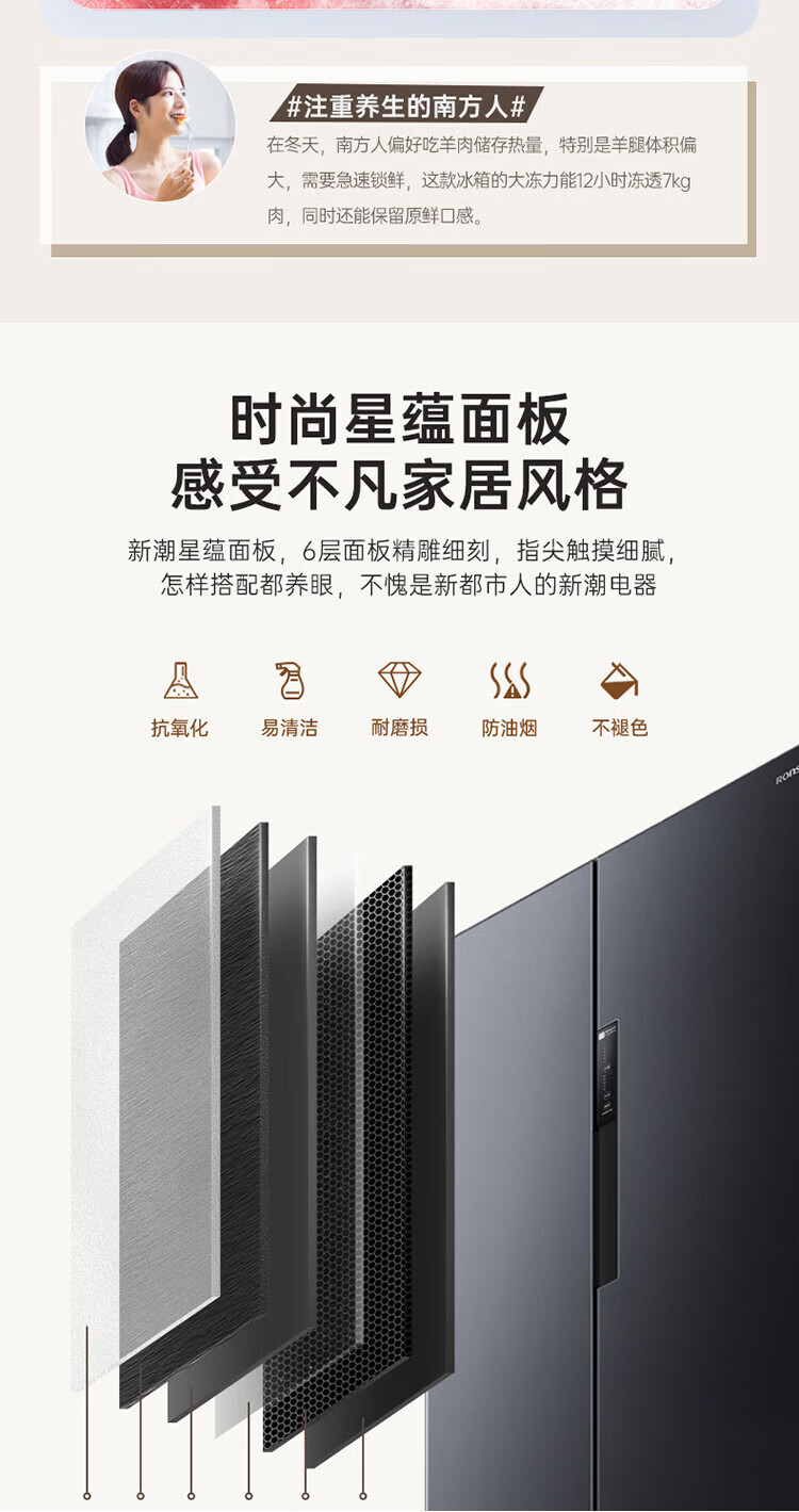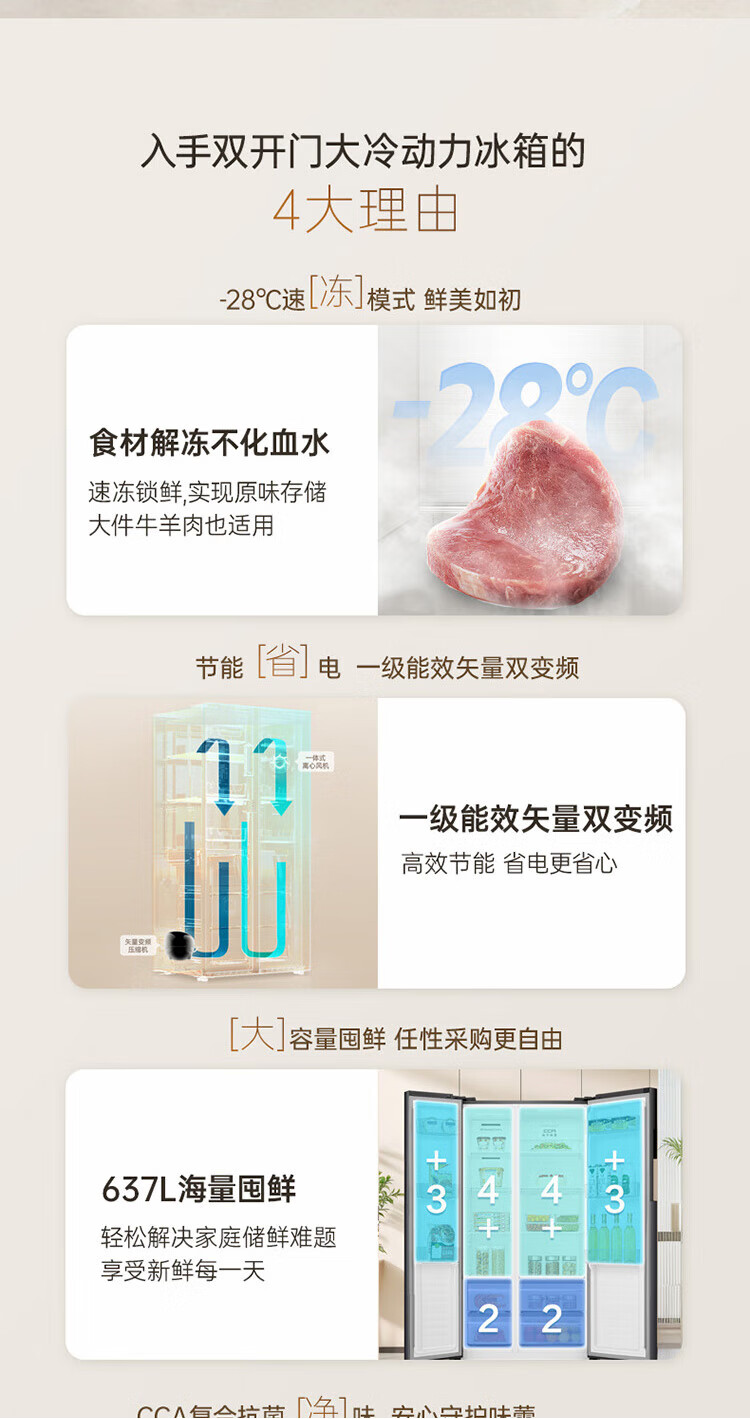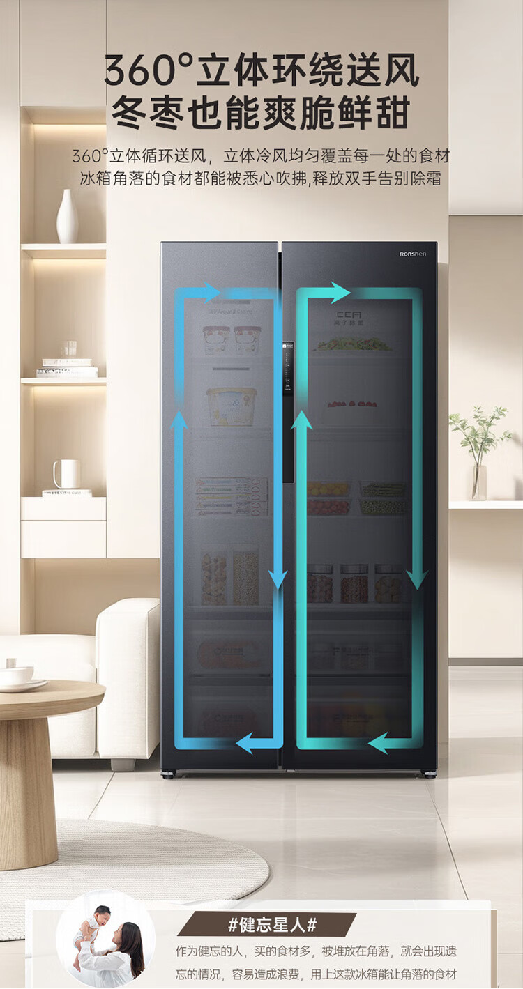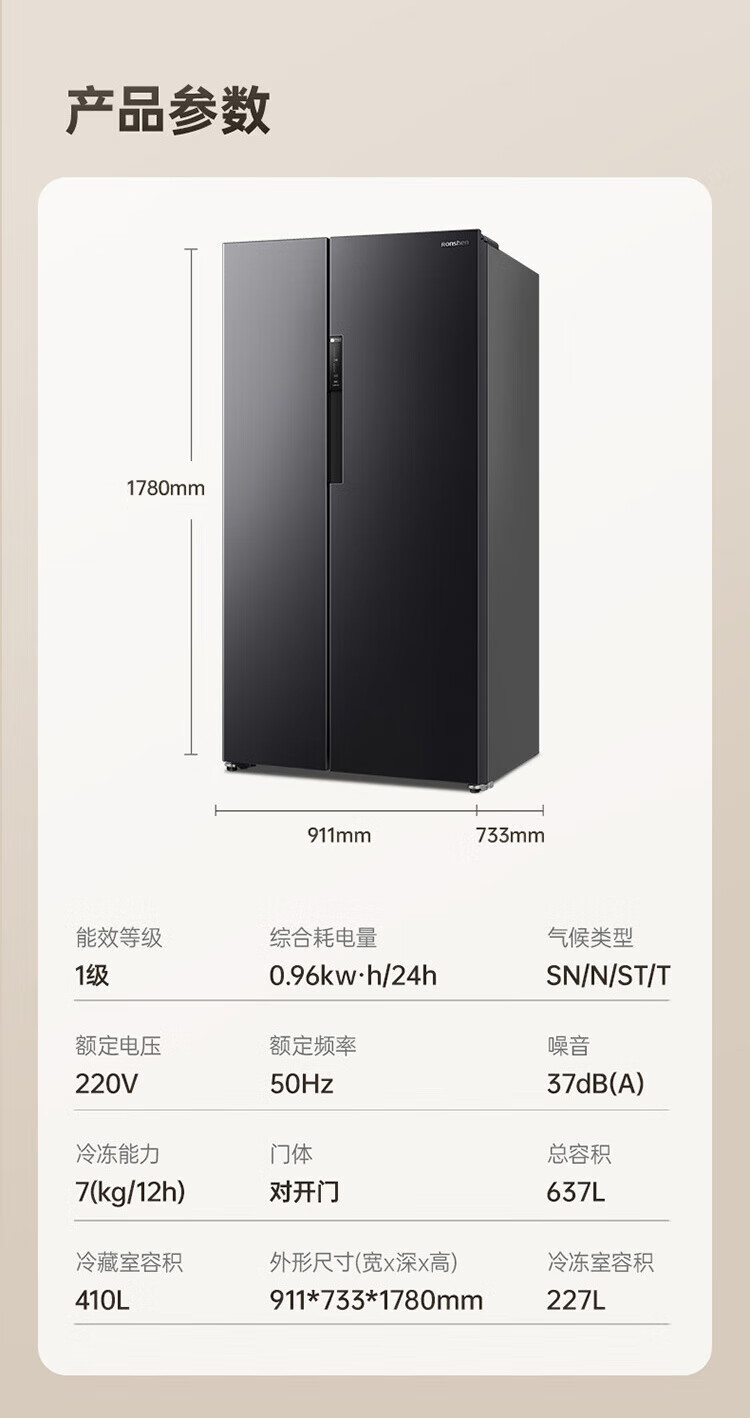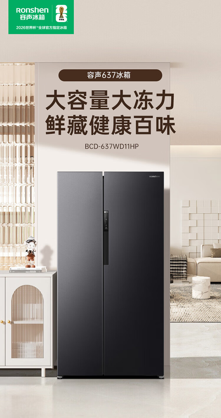 Rongsheng 637 liter double-door door-to-door refrigerator household first-class energy efficiency air-cooled frost-free frequency conversion energy-saving ultra-thin large capacity BCD-637WD11HP trade-in national subsidy 637 liter large capacity energy-saving odor-free