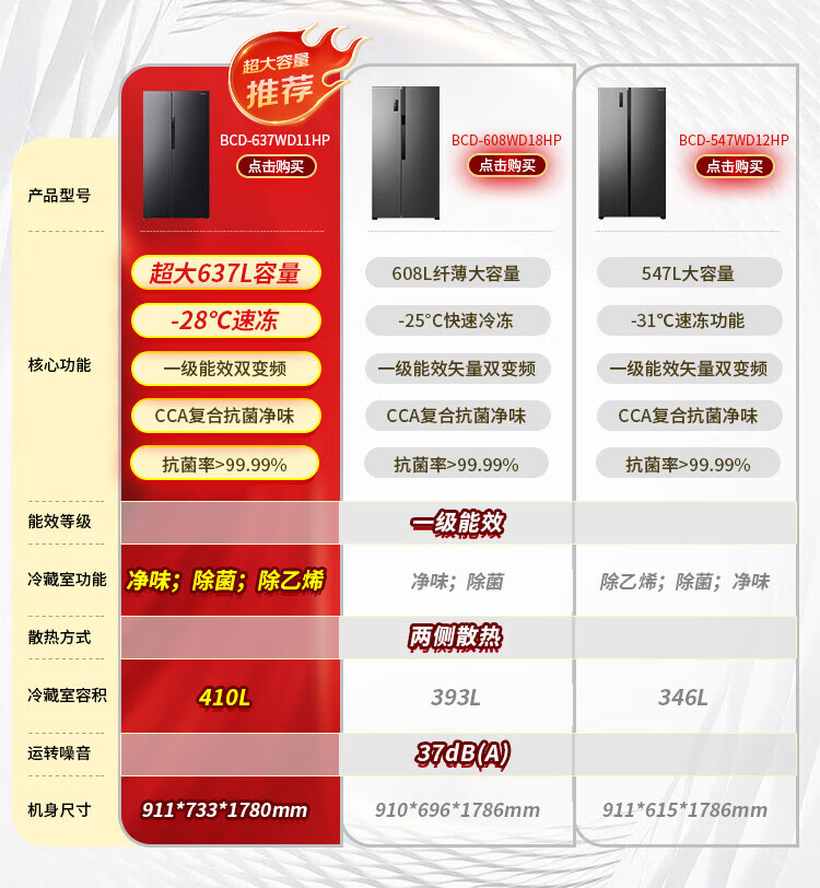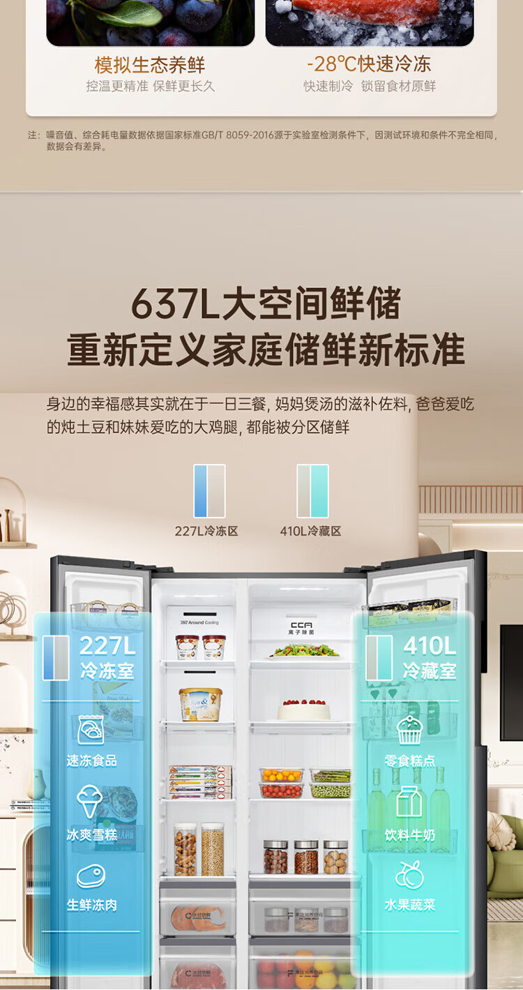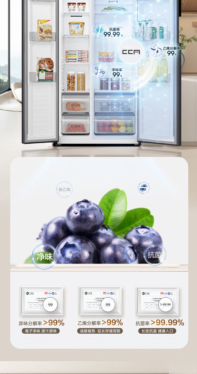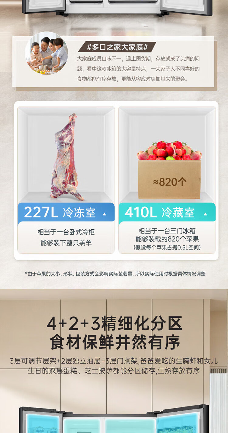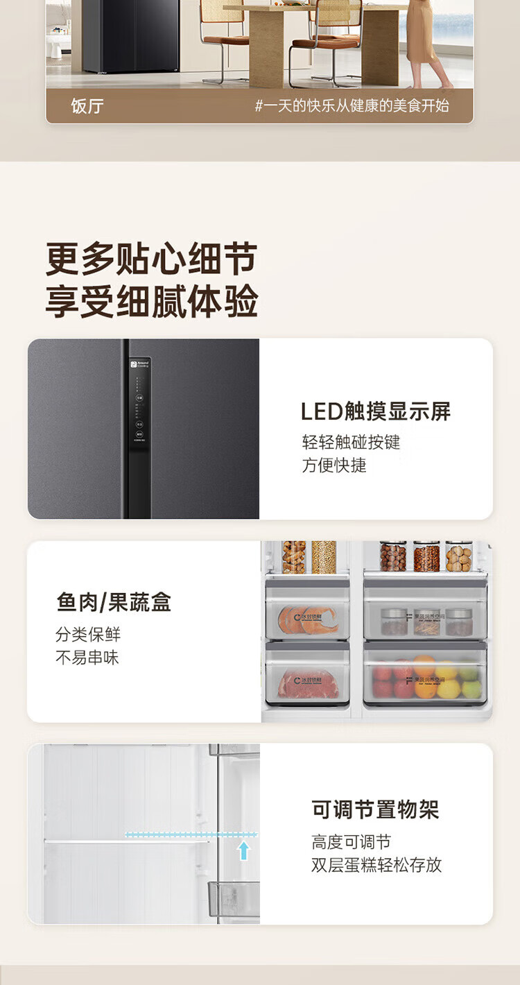 Rongsheng 637 liter double-door door-to-door refrigerator household first-class energy efficiency air-cooled frost-free frequency conversion energy-saving ultra-thin large capacity BCD-637WD11HP trade-in national subsidy 637 liter large capacity energy-saving odor-free