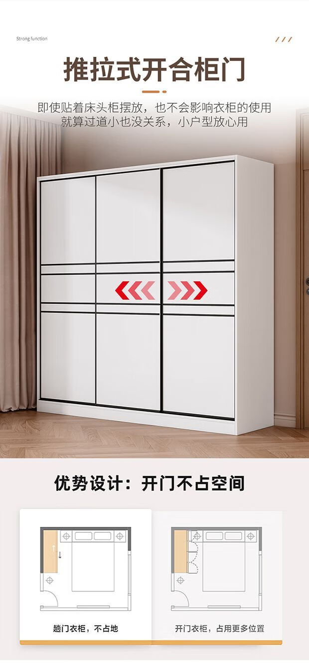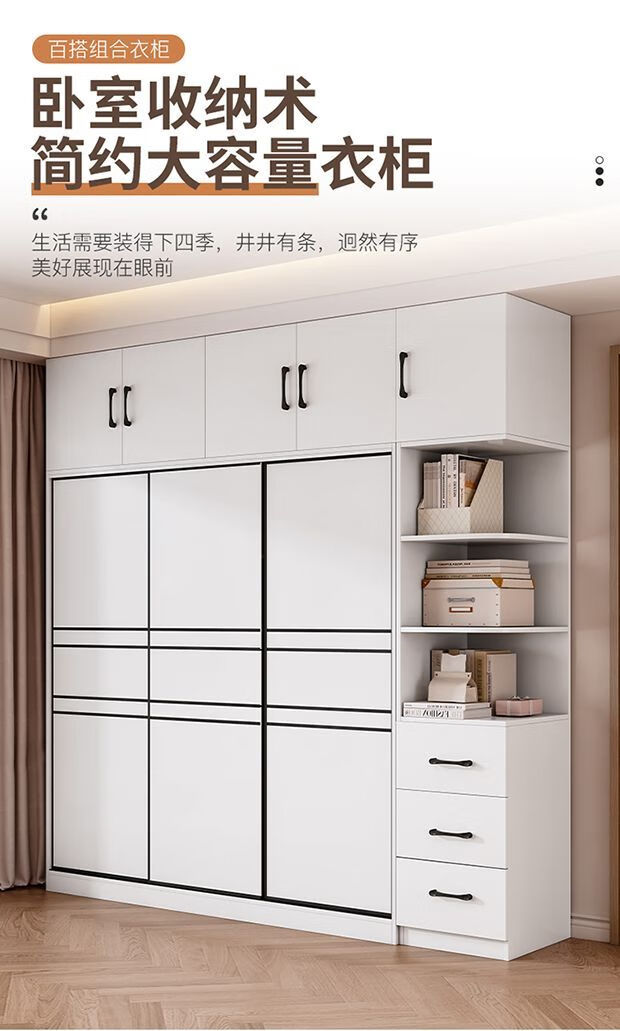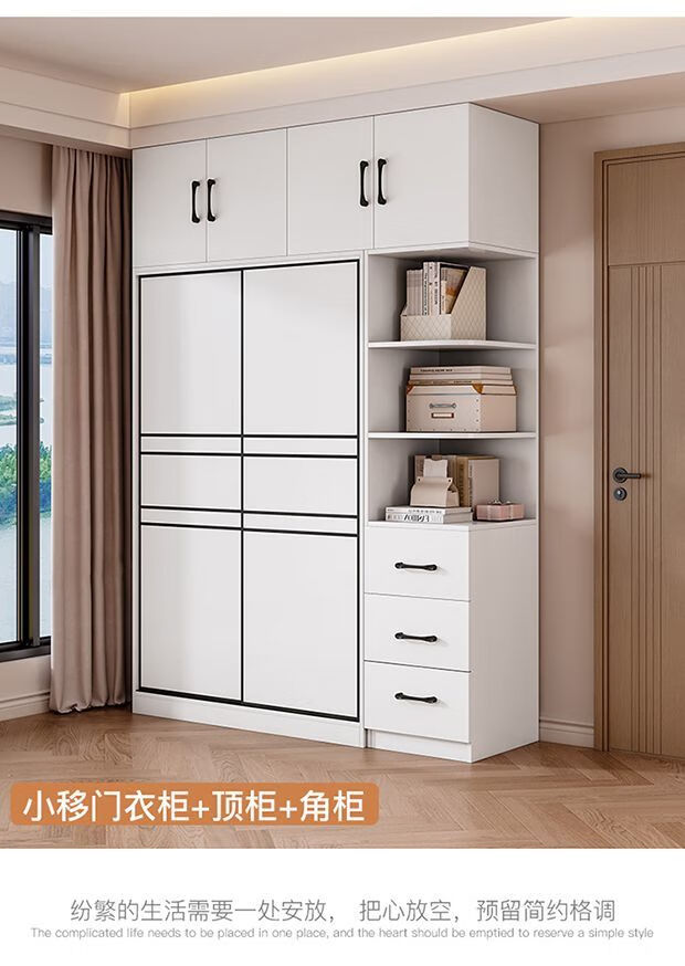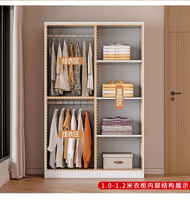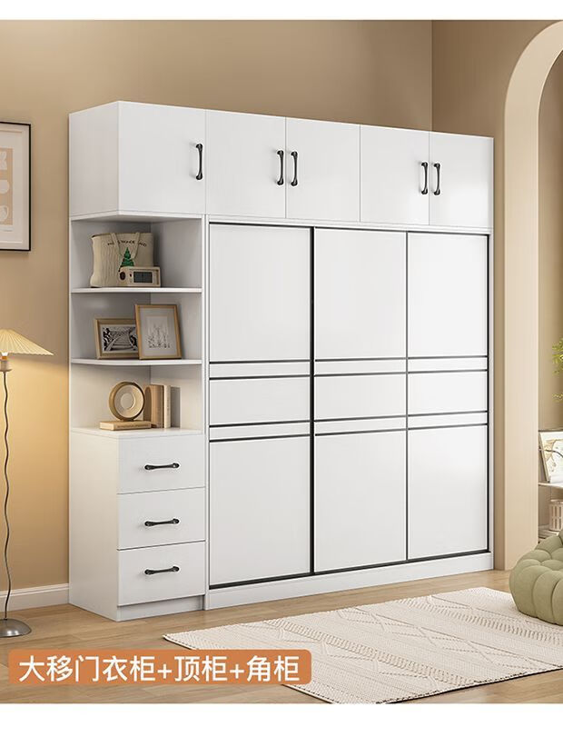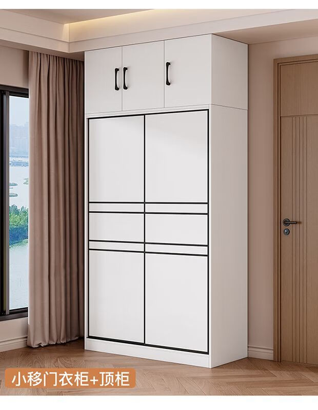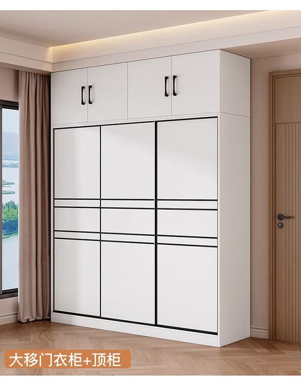 Jingxi Selection Mubote thickened solid wood wardrobe household double-door wardrobe bedroom rental room small apartment 200 main cabinet + top cabinet + side cabinet thickened version package installation package installation