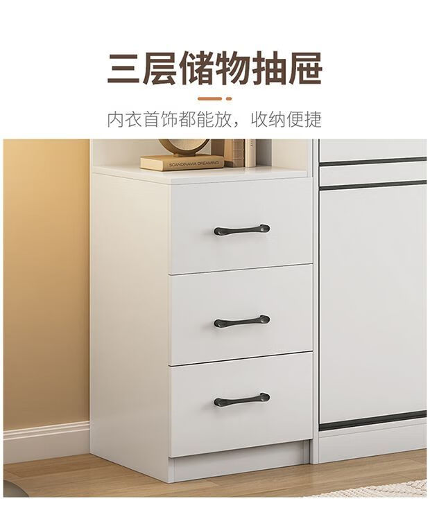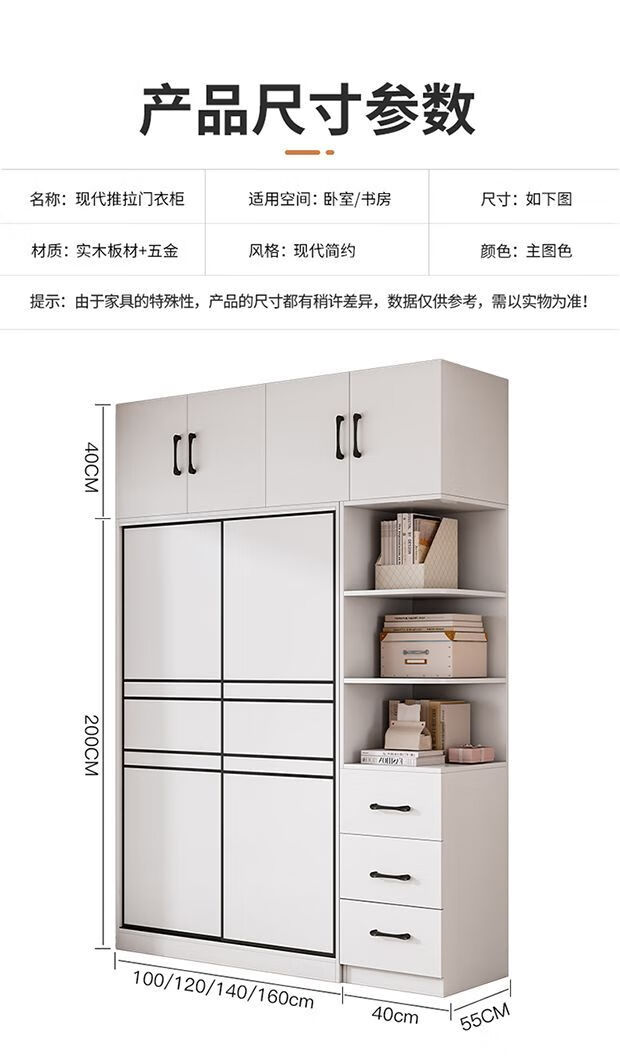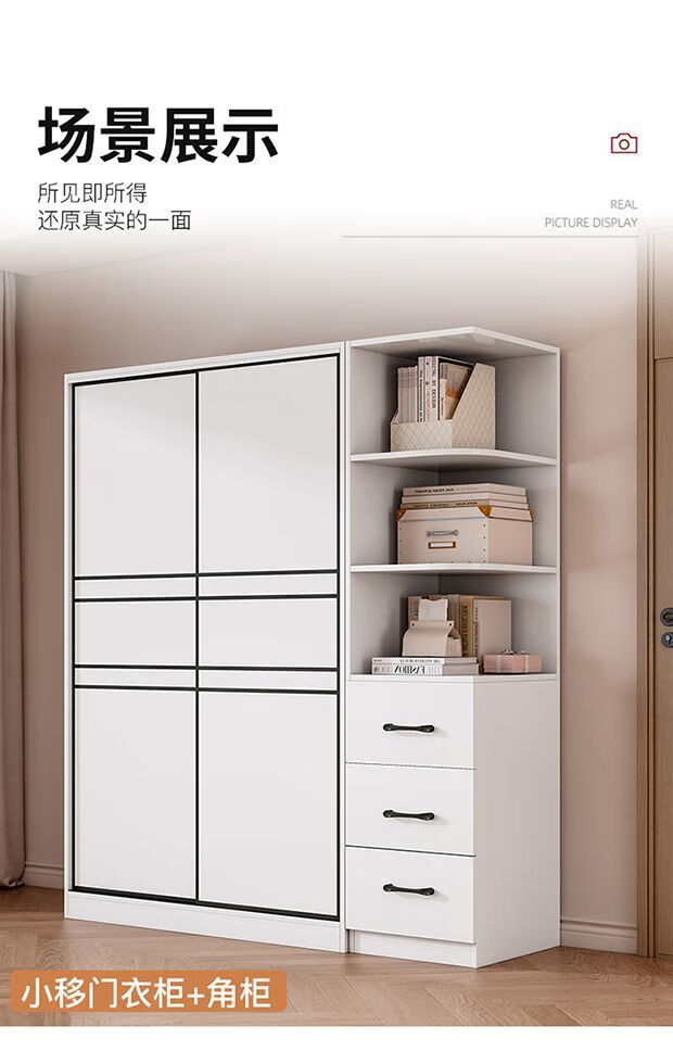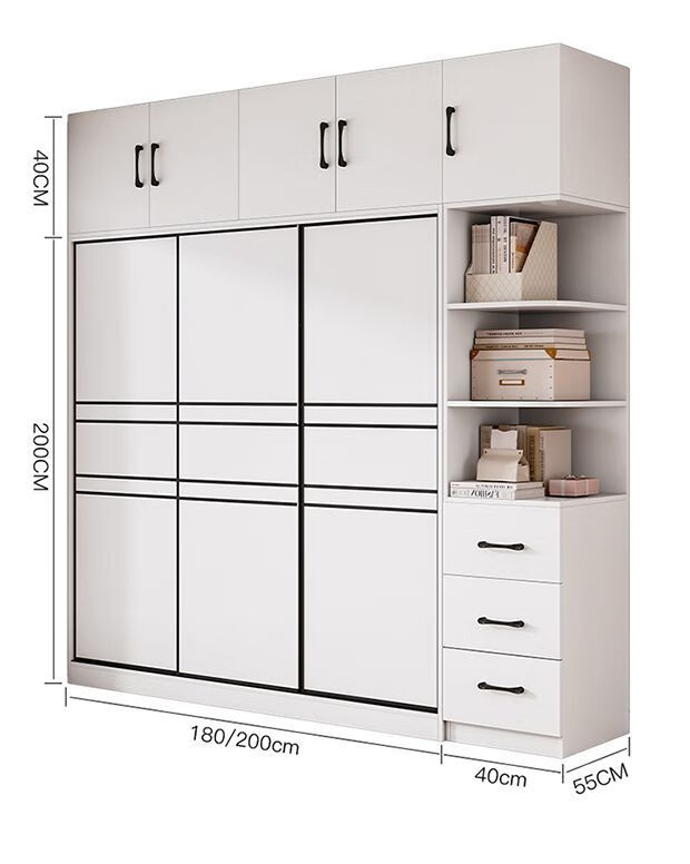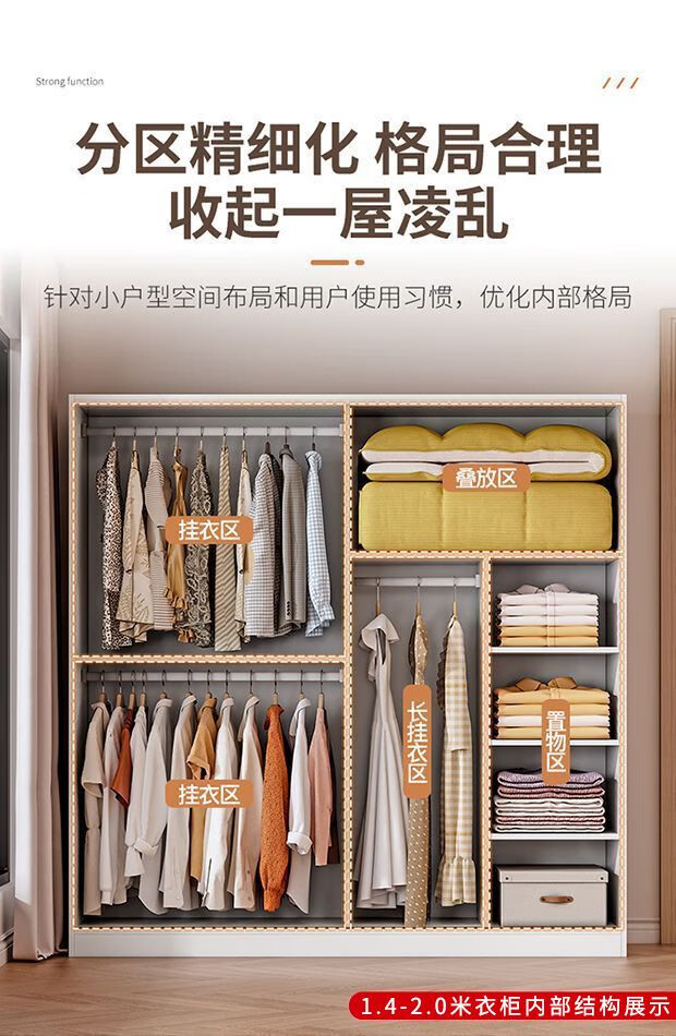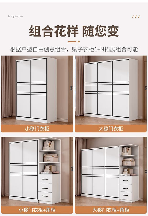 Jingxi Selection Mubote thickened solid wood wardrobe household double-door wardrobe bedroom rental room small apartment 200 main cabinet + top cabinet + side cabinet thickened version package installation package installation