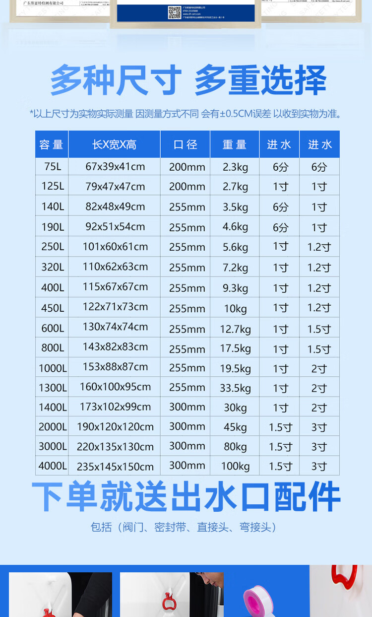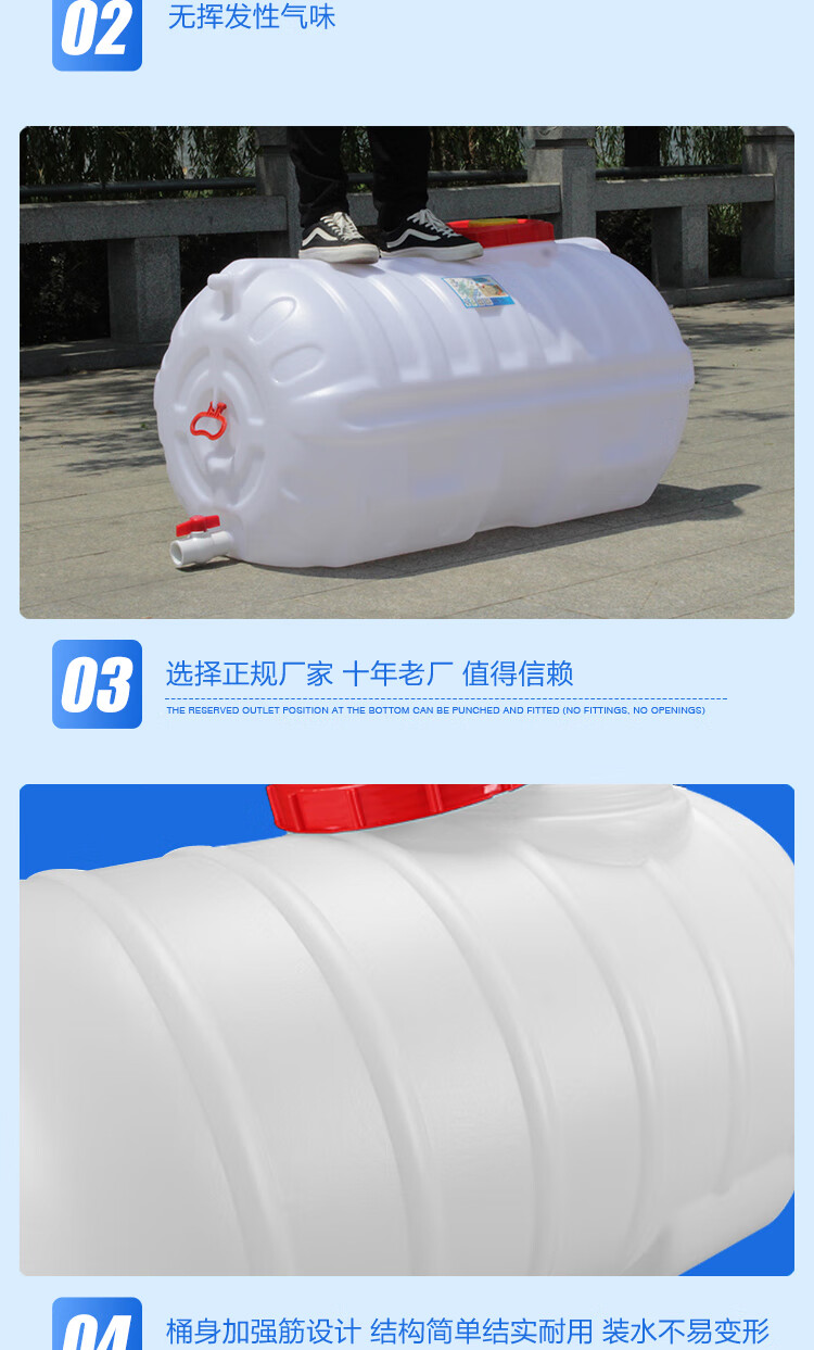 Haiaode household horizontal round water tank plastic bucket large bucket large water storage bucket water tower thickened water storage bucket extra large ton bucket 75 liters (67*37*35 cm)