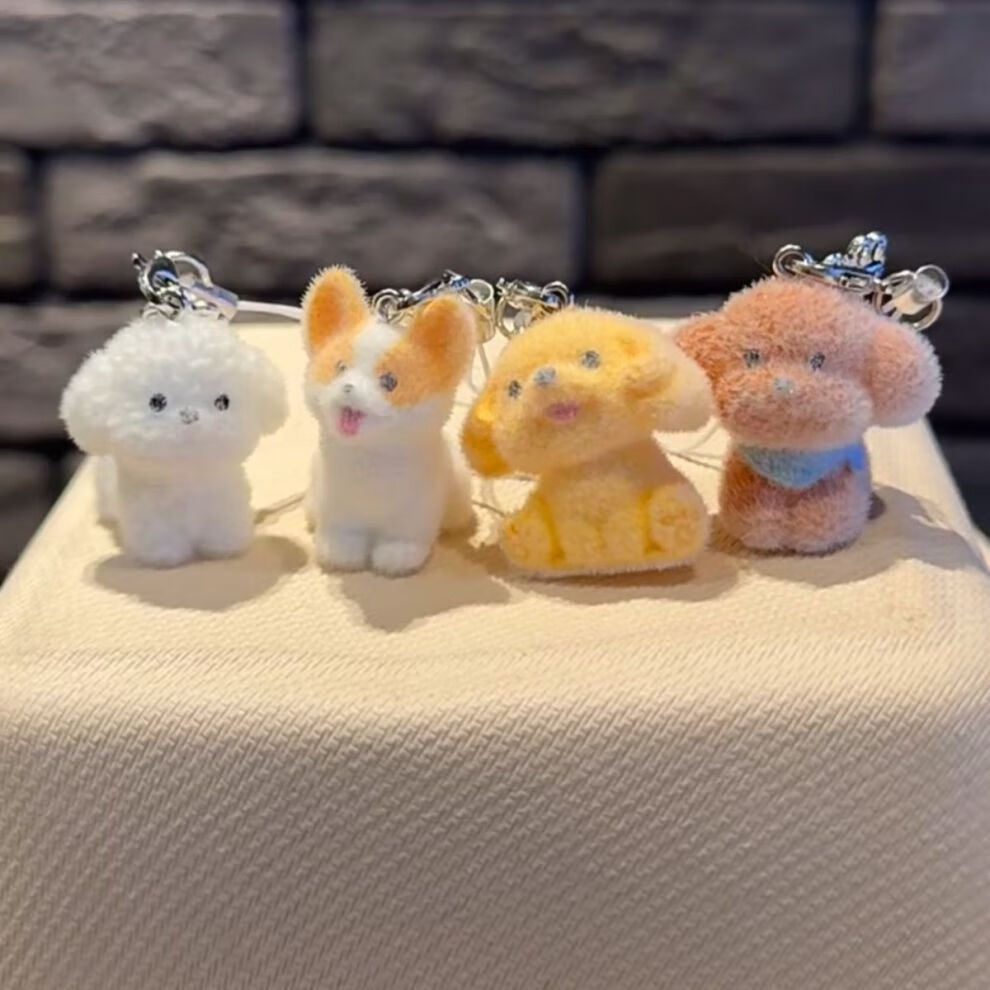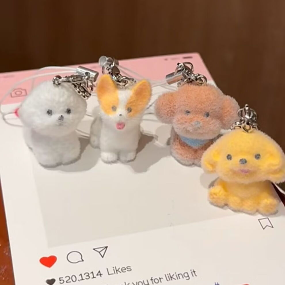 G.duck Cartoon Cute Puppy School Bag Pendant Keychain Flocked Doll Doll Girl Gift Cute Chain Pendant Puppy Bichon Frize