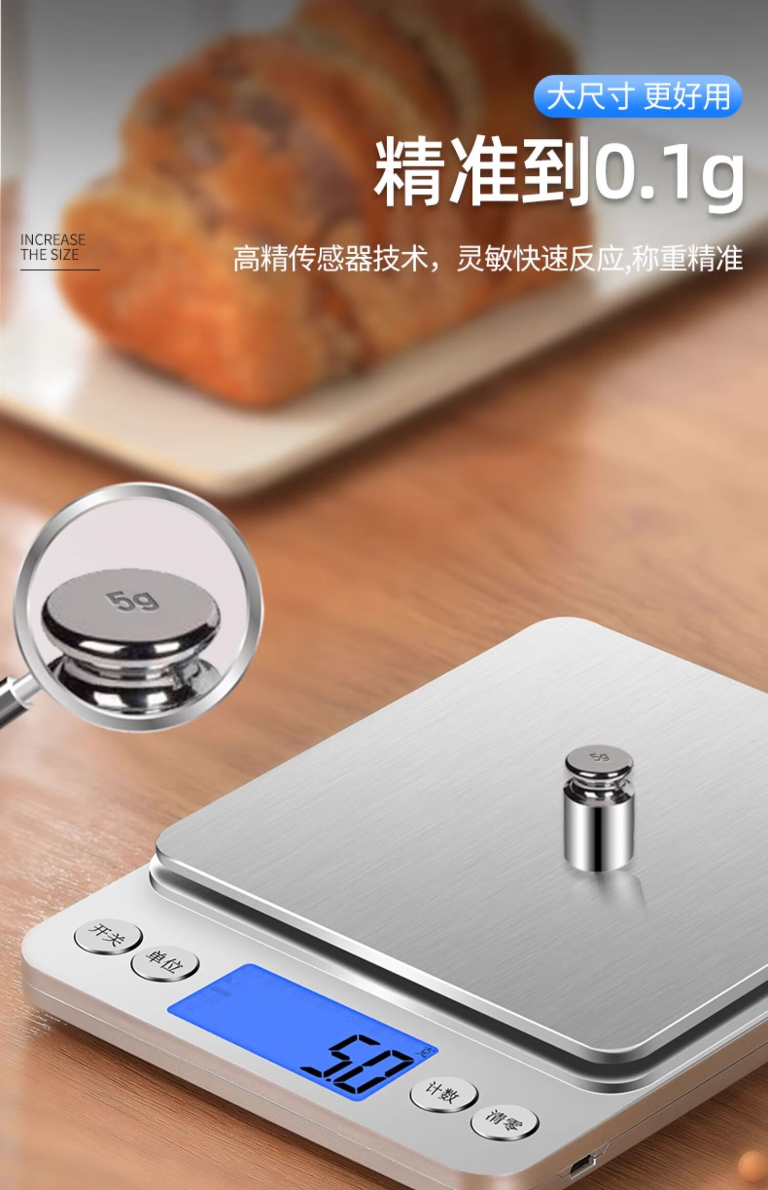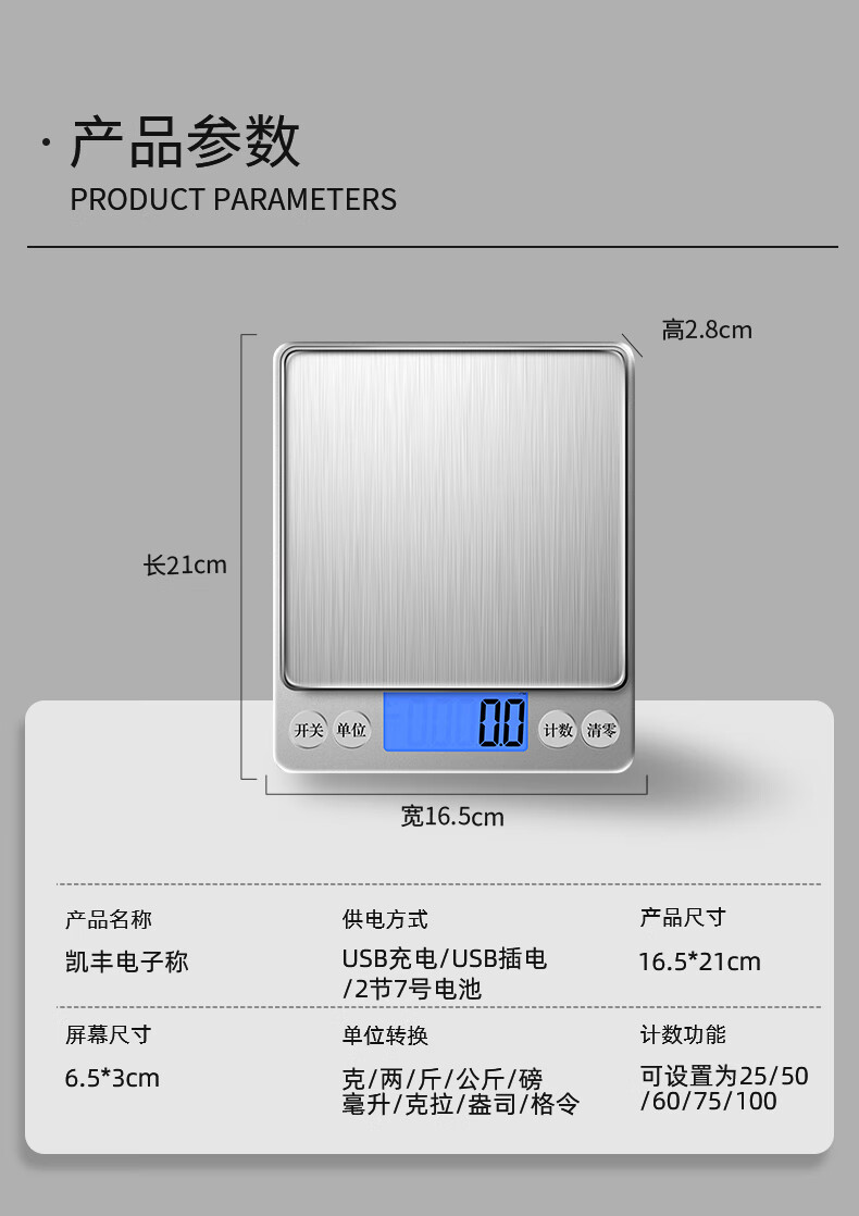 Kaifeng i2000 high-precision kitchen baking electronic scale household small 0.01 accurate weighing food gram weight weighing balance recommended charging 3kg/0.1g+tray+weight