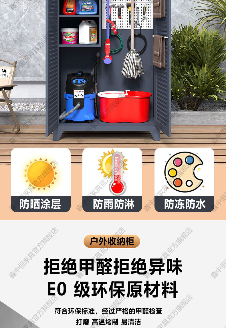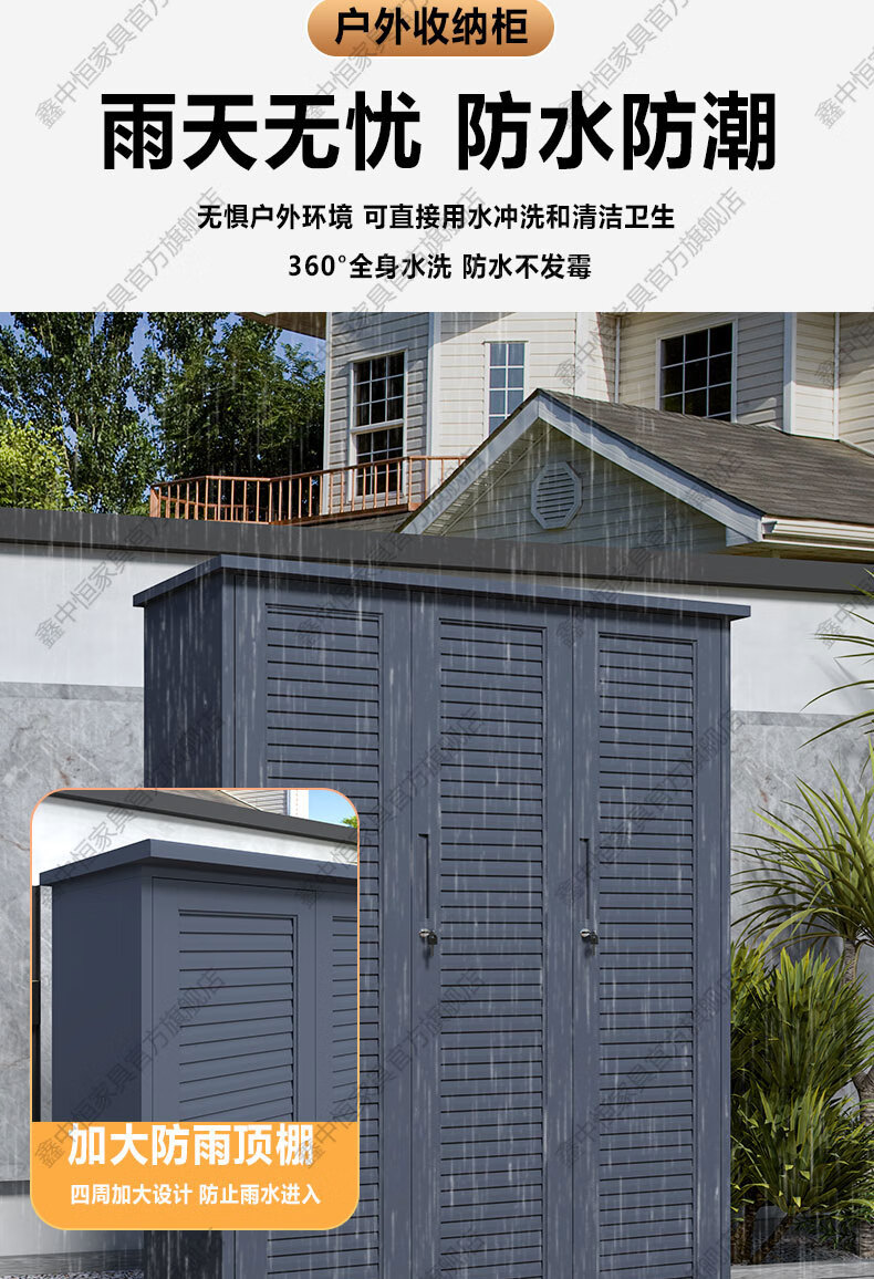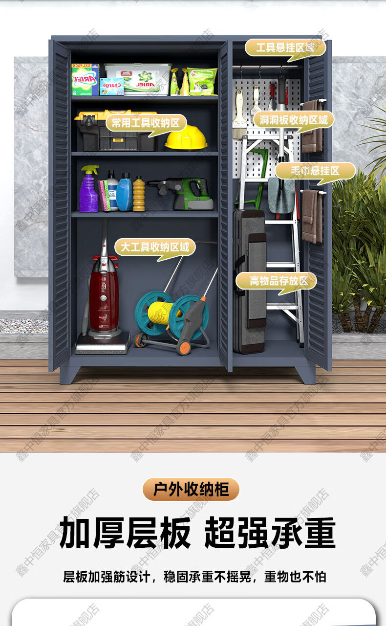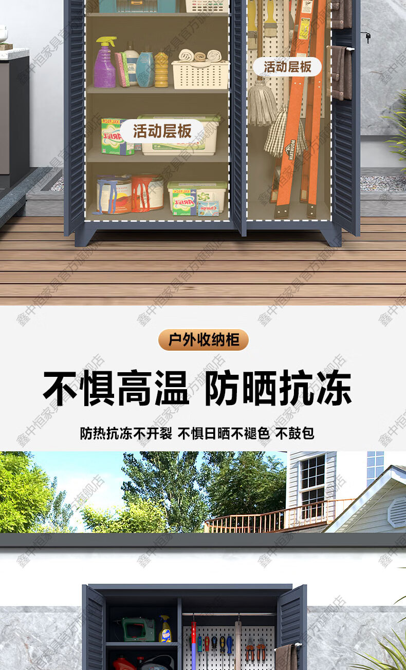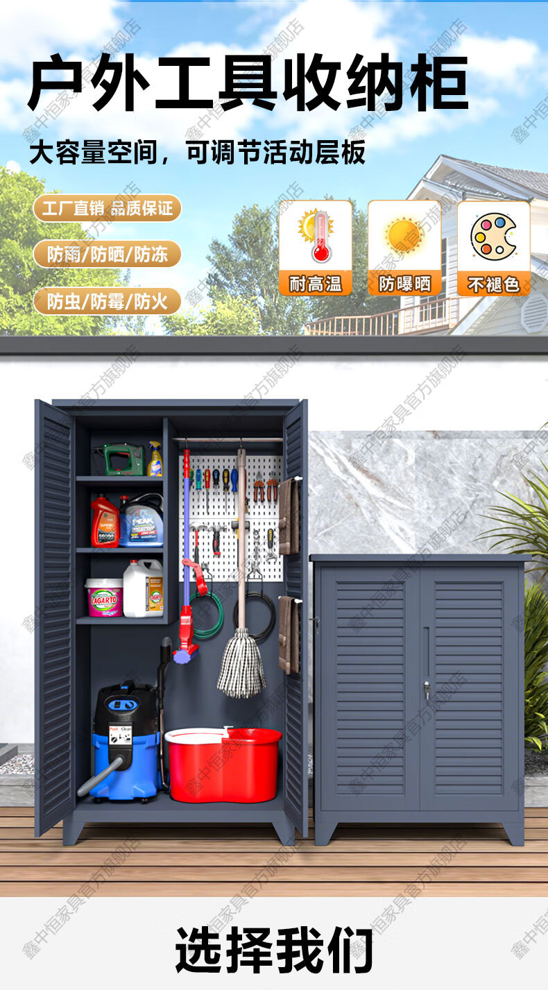 Xinzhongheng outdoor villa storage cabinet waterproof and sunproof courtyard door debris housekeeping cabinet large capacity storage tool storage cabinet A type 120 wide 185 high outdoor tool cabinet Free installation service after placing an order