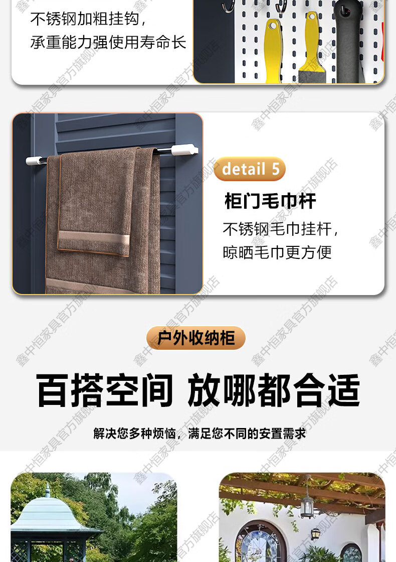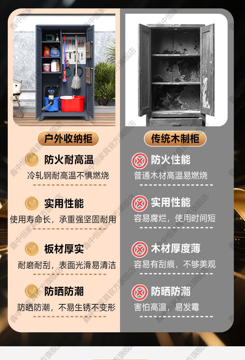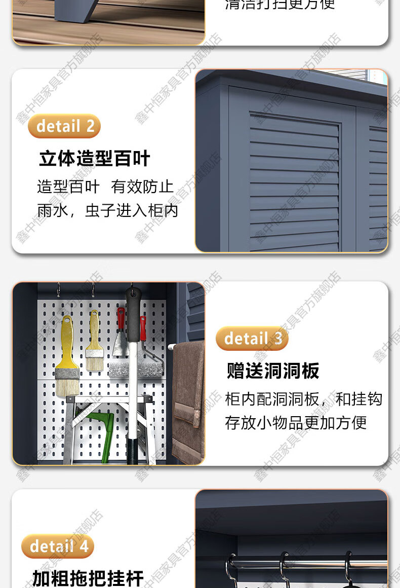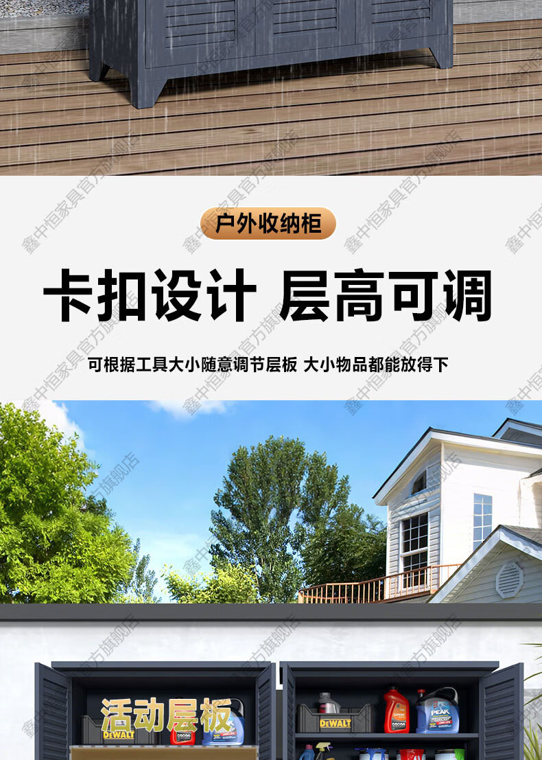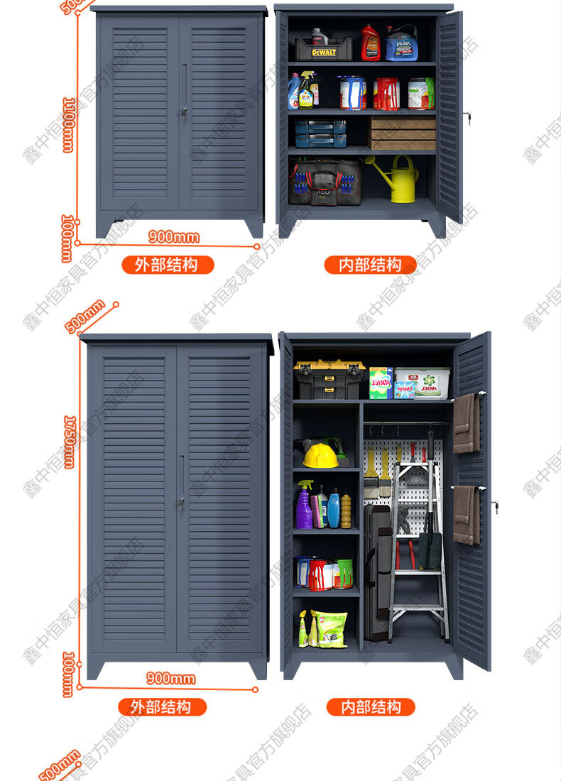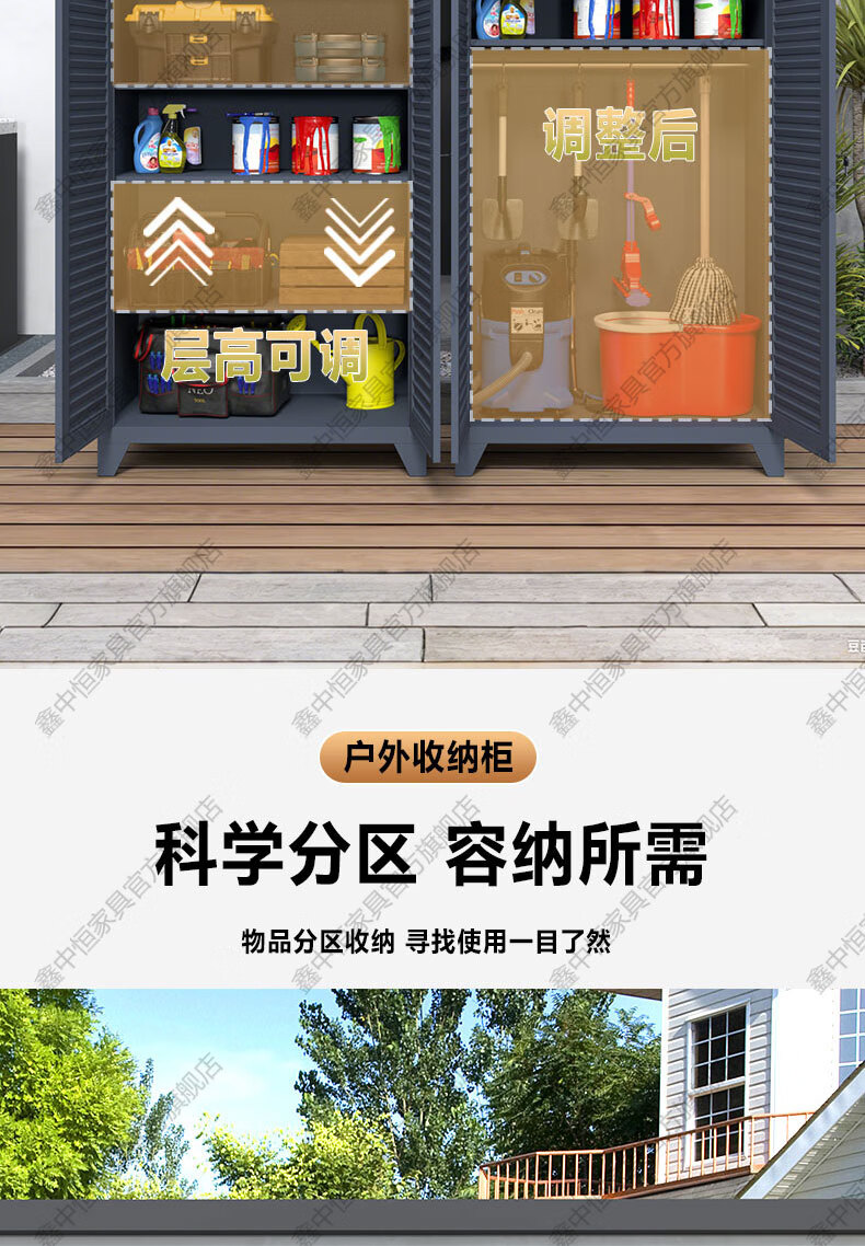 Xinzhongheng outdoor villa storage cabinet waterproof and sunproof courtyard door debris housekeeping cabinet large capacity storage tool storage cabinet A type 120 wide 185 high outdoor tool cabinet Free installation service after placing an order