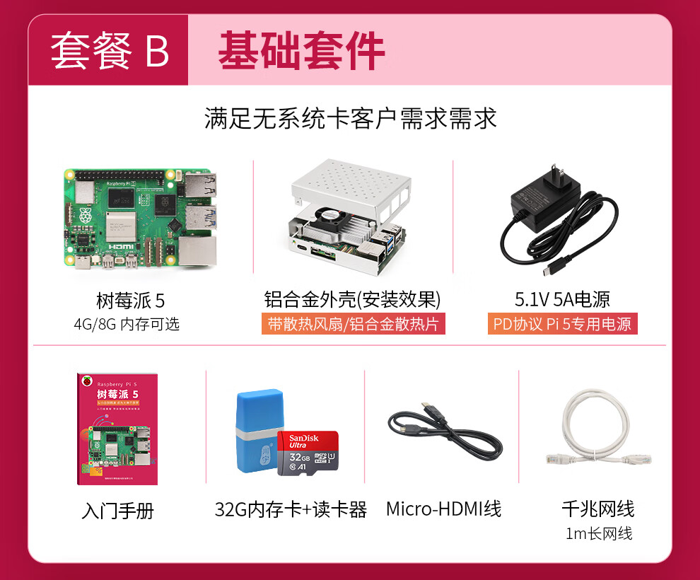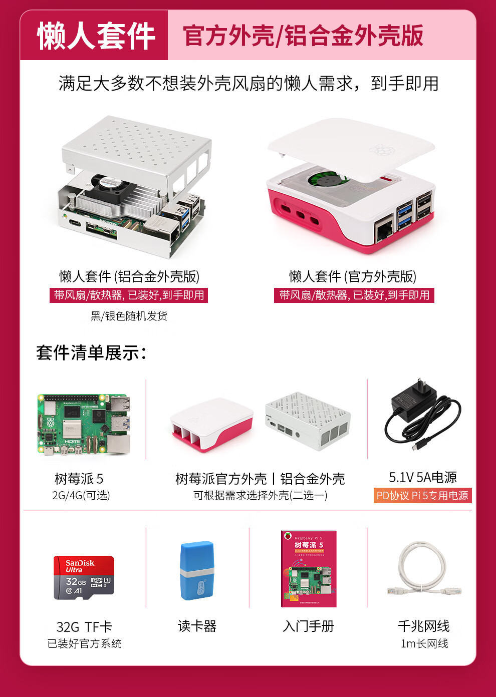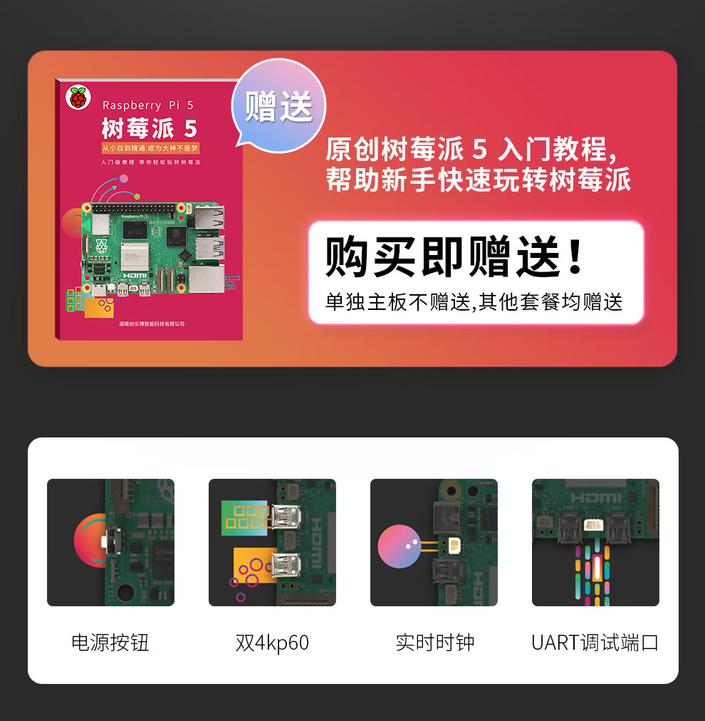Chuanglebo Raspberry Pi 5th generation Raspberry Pi 5 development board development kit 4G 8G development board Linux Raspberry Pi 5 radiator (domestic model A without motherboard) Raspberry Pi 5 2G version