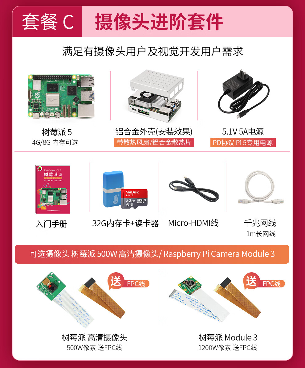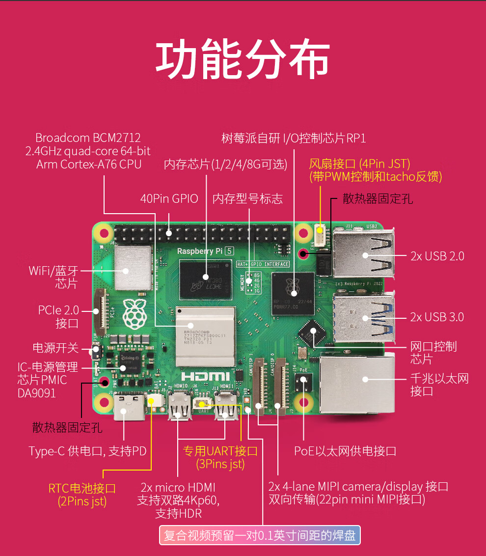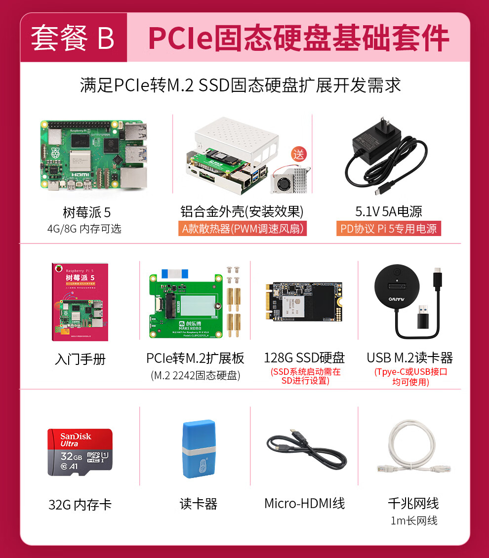 Chuanglebo Raspberry Pi 5th generation Raspberry Pi 5 development board development kit 4G 8G development board Linux Raspberry Pi 5 radiator (domestic model A without motherboard) Raspberry Pi 5 2G version