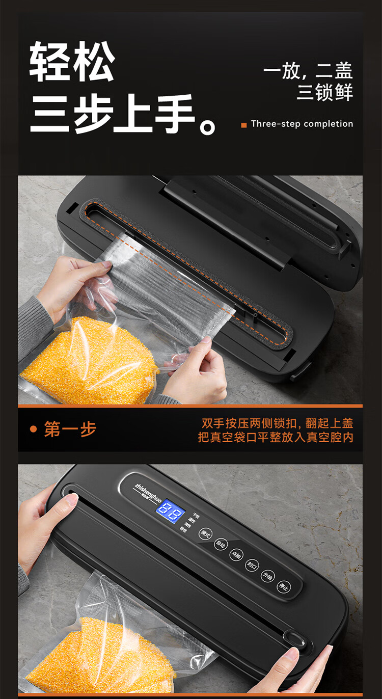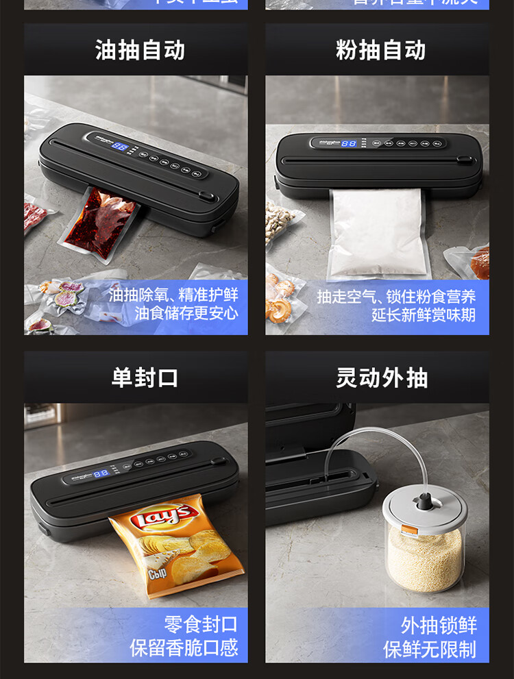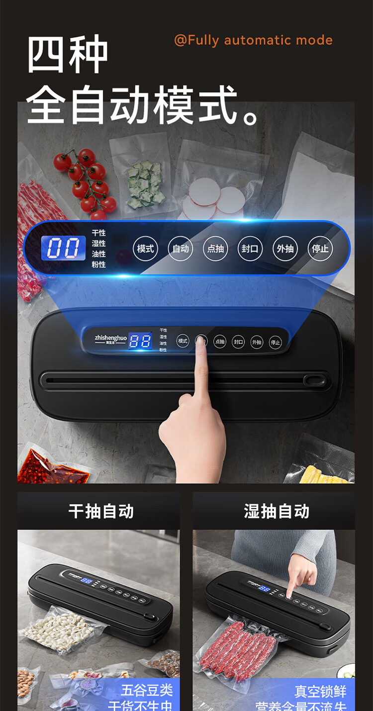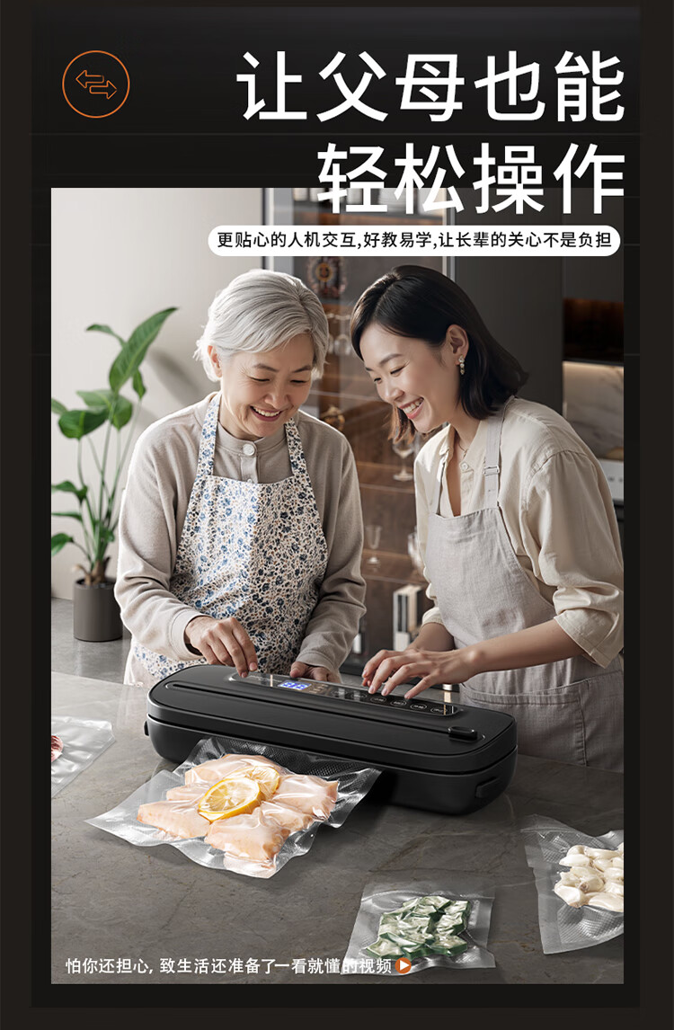 To life vacuum machine sealing machine household fully automatic sealing machine food preservation machine dry and wet universal compression sealing machine large suction vacuum sausage bacon packer refrigerator storage flagship black dry and wet dual-use strong and large suction 60 bags