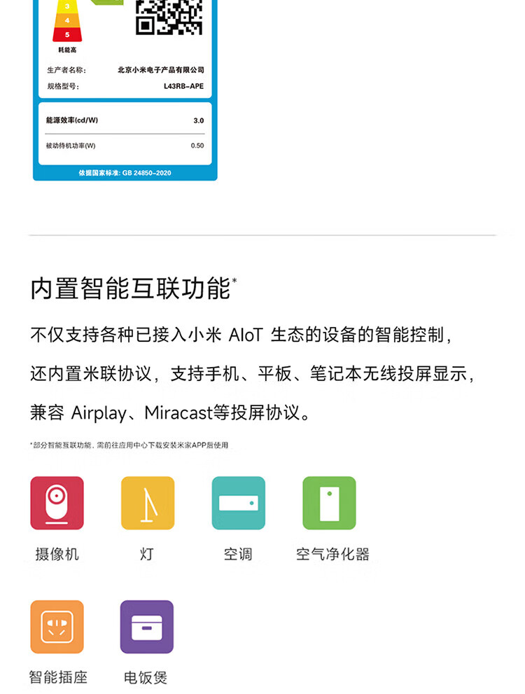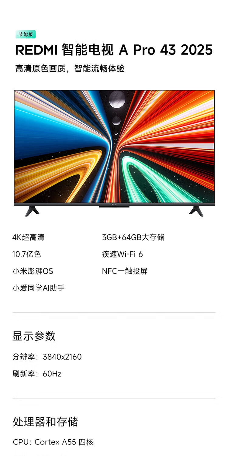 Xiaomi (MI) TV 43-inch 4K ultra-high-definition LCD flat-panel TV 2025 new 3+64GB WiFi6 home eye protection game Redmi Redmi A Pro43 trade-in 43-inch worry-free package installation A Pro43+ door-to-door installation