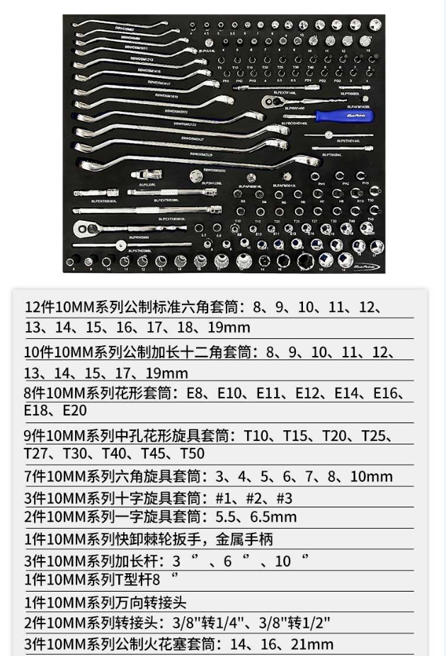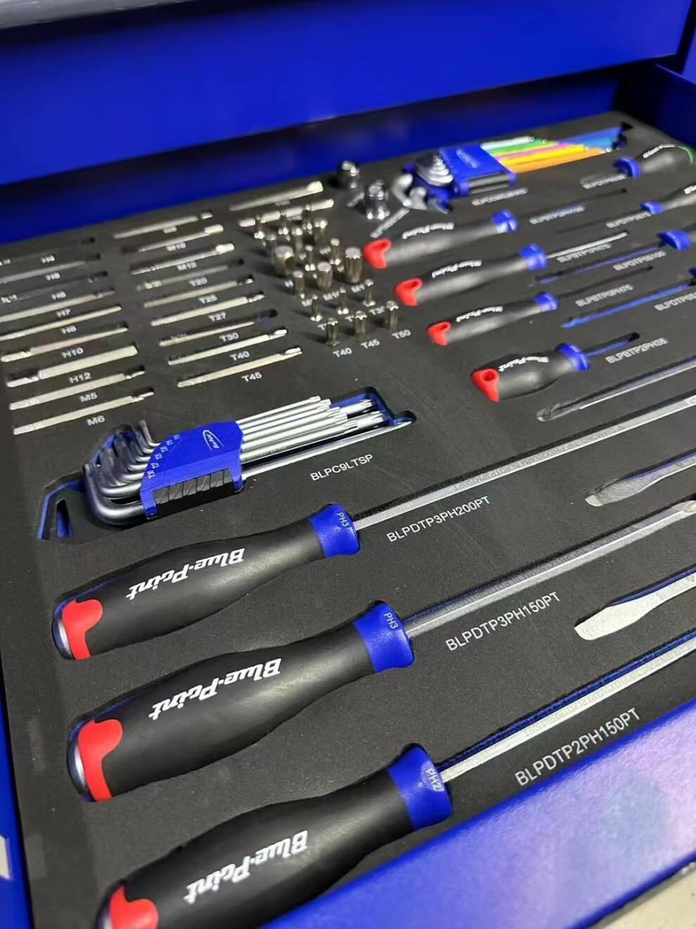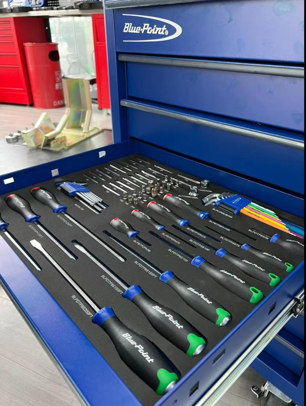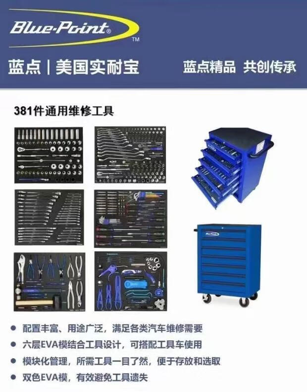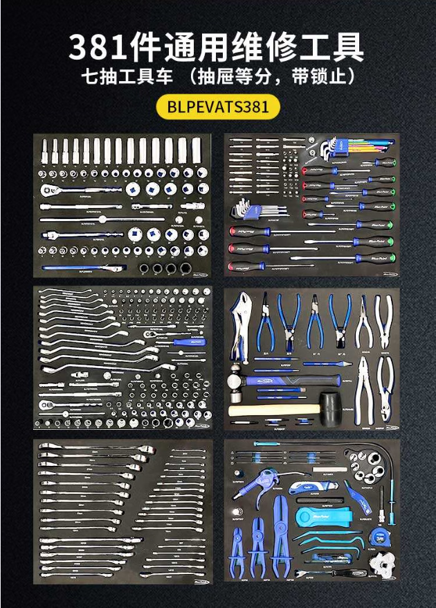 Blue-Point 381-piece film engraving tool set Six-draw seven-draw tool cart 381-piece EVA film engraving repair tools Blue-Point seven-draw tool cart - gray