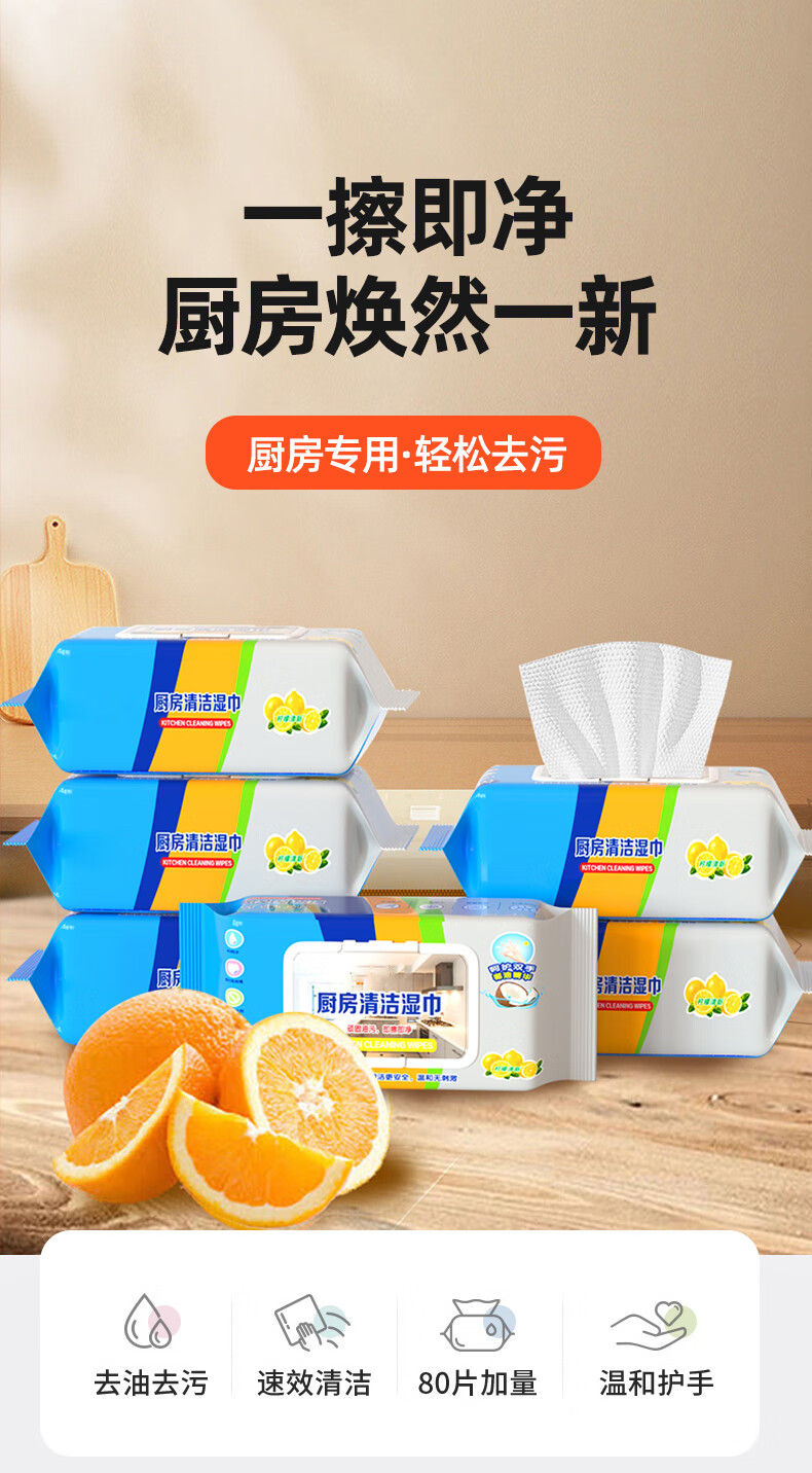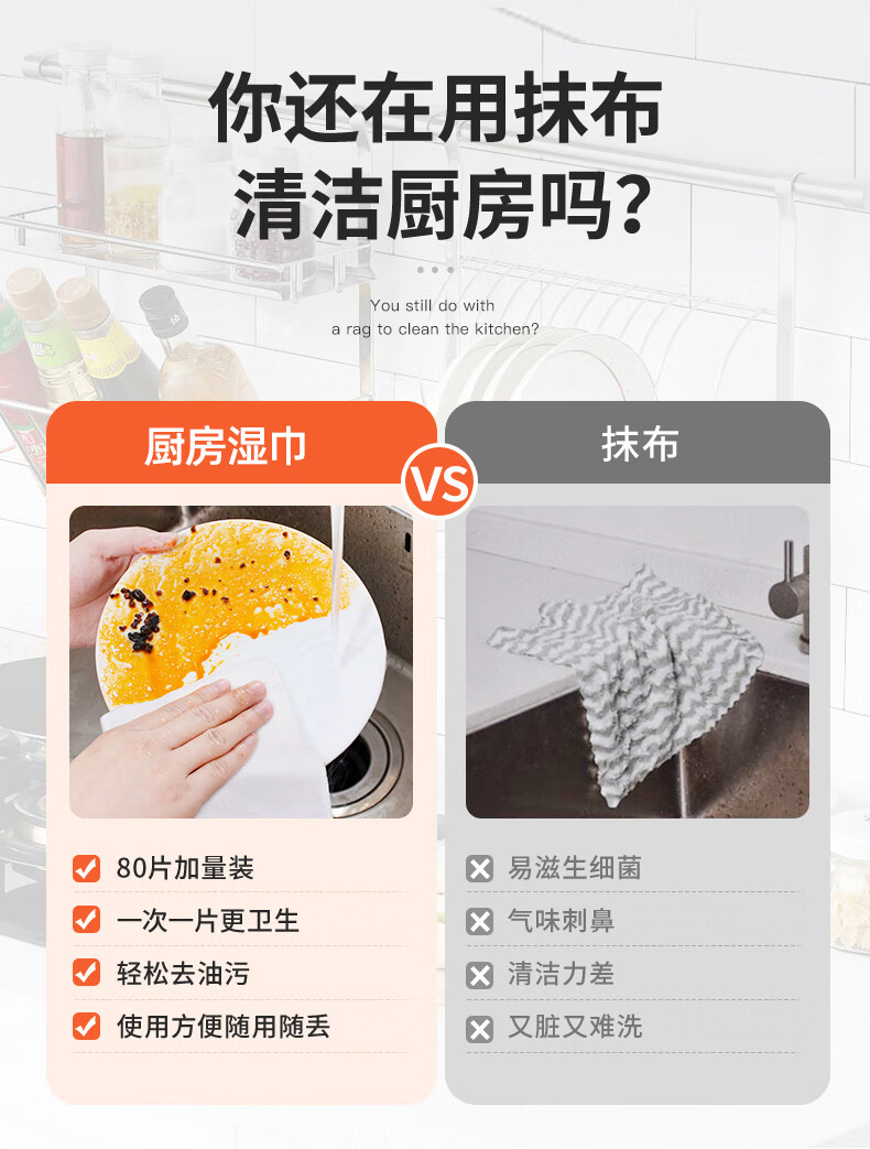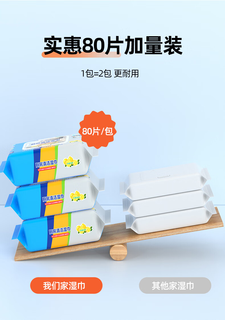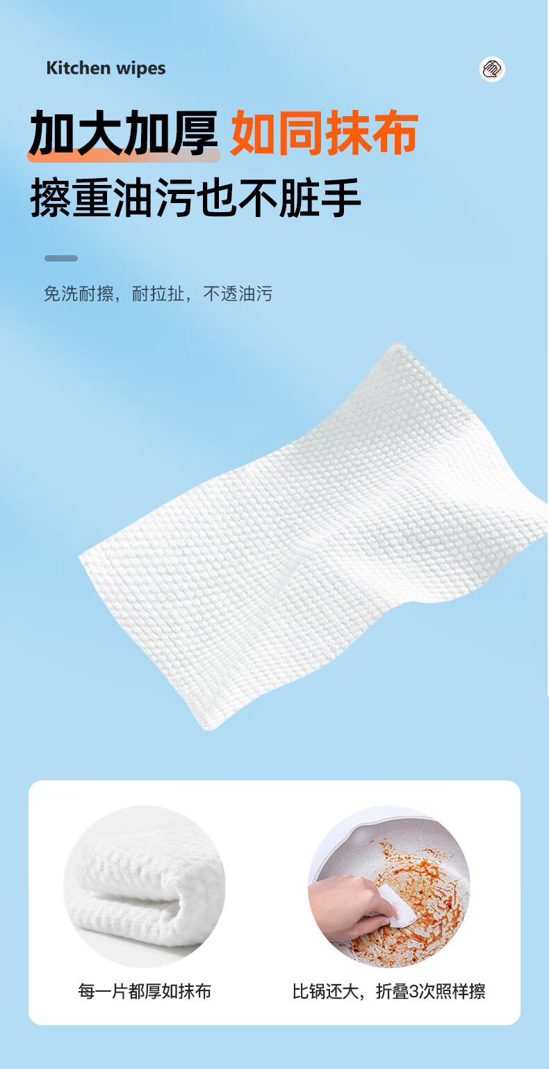 Kitchen wipes, household powerful oil removal, oil absorption, water absorption, thickened lazy rag, hygienic cleaning paper, basic model, 1 pack of 80 wipes