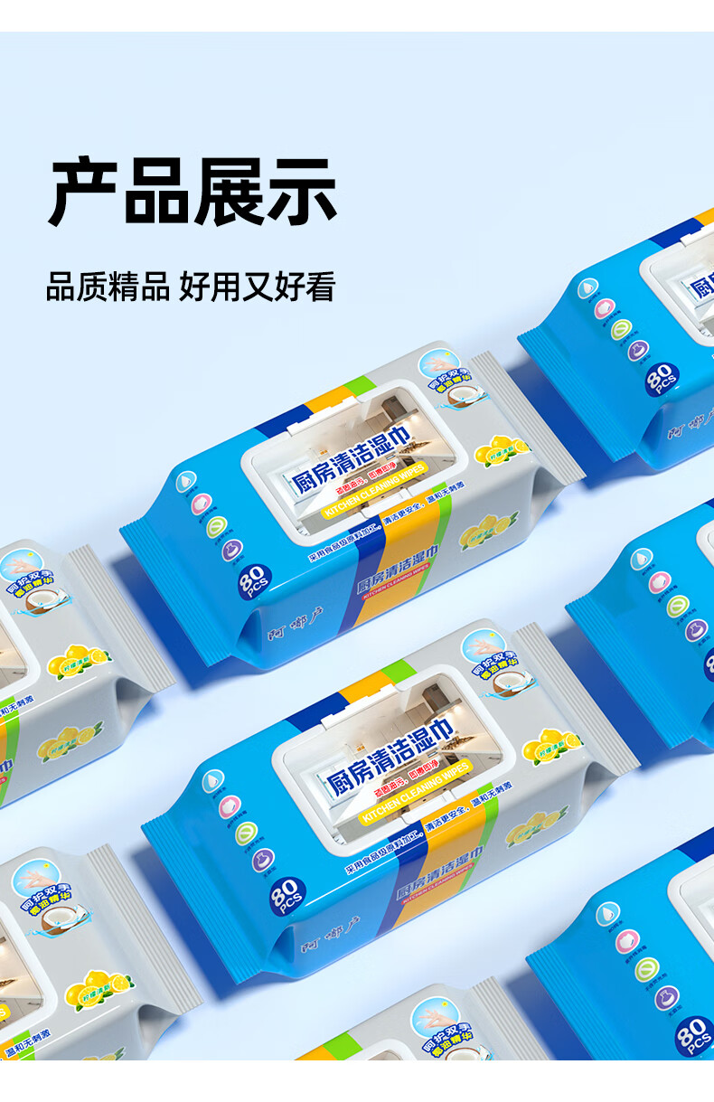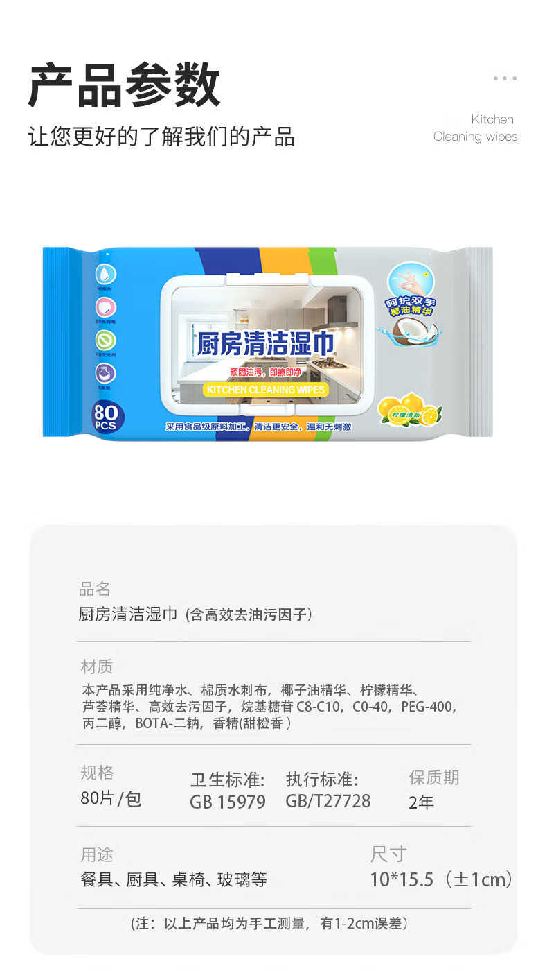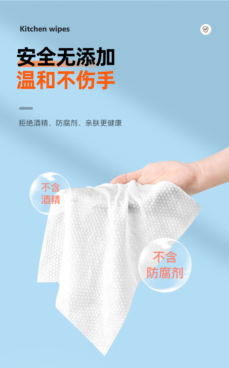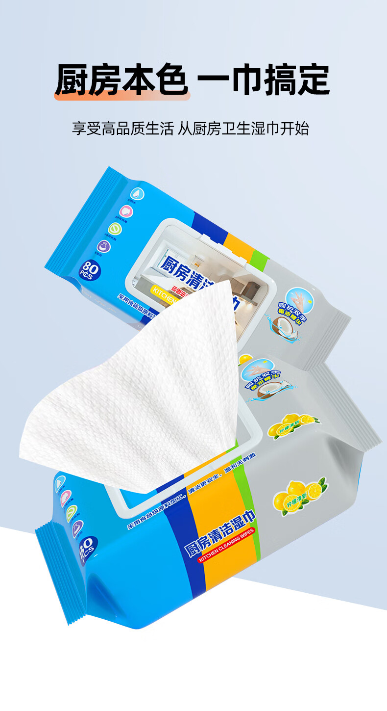 Kitchen wipes, household powerful oil removal, oil absorption, water absorption, thickened lazy rag, hygienic cleaning paper, basic model, 1 pack of 80 wipes