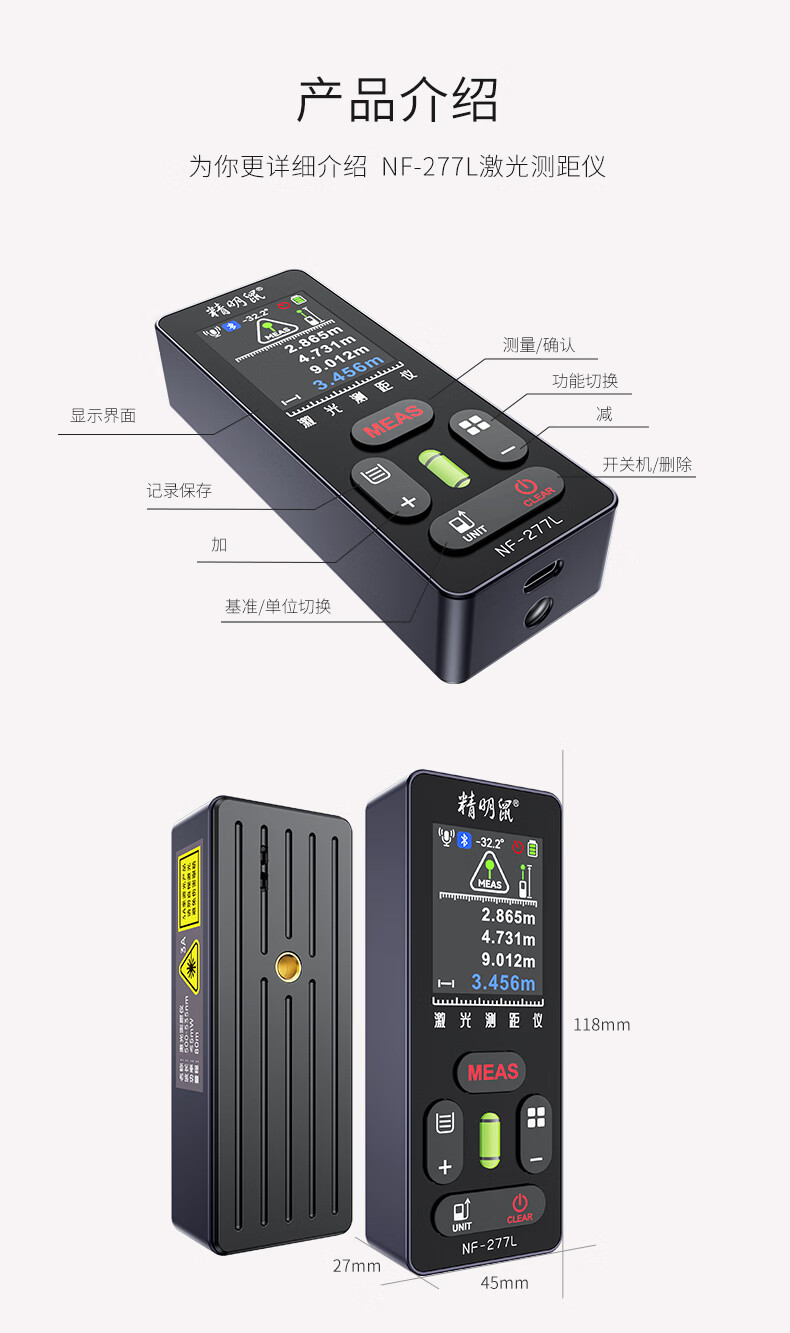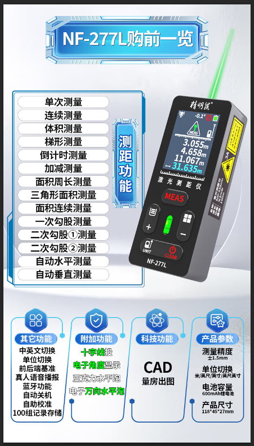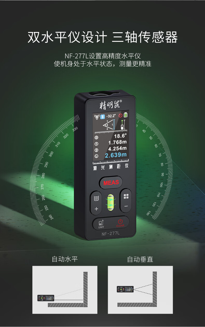 Smart Mouse NF-277L laser rangefinder cross mark high-precision handheld green light outdoor room measuring instrument electronic ruler green light rangefinder 60 meters + tripod stand