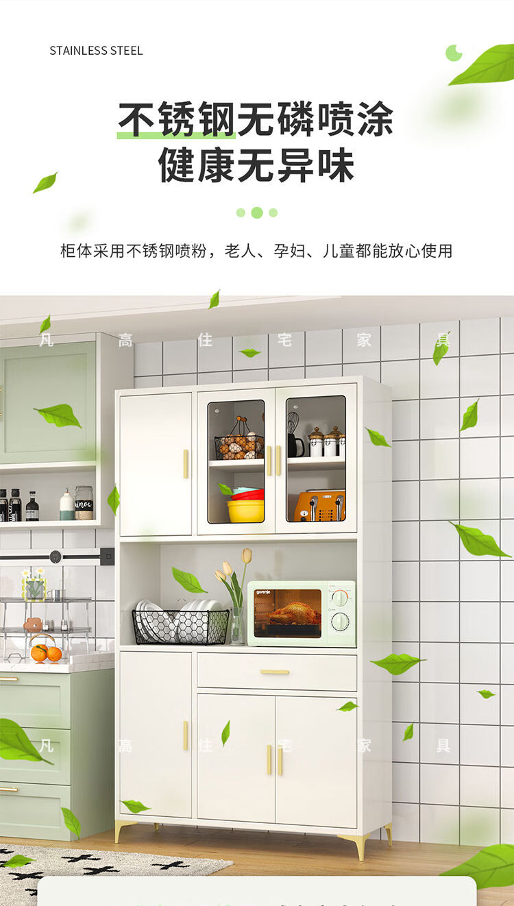 Wen Yijia 304 stainless steel sideboard kitchen cupboard home cabinet living room tea cabinet microwave storage cabinet storage 400 single door tempered glass 201