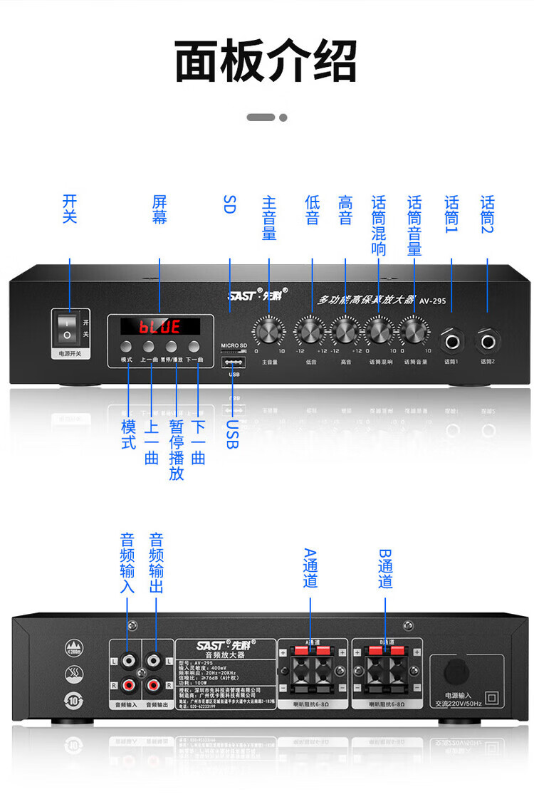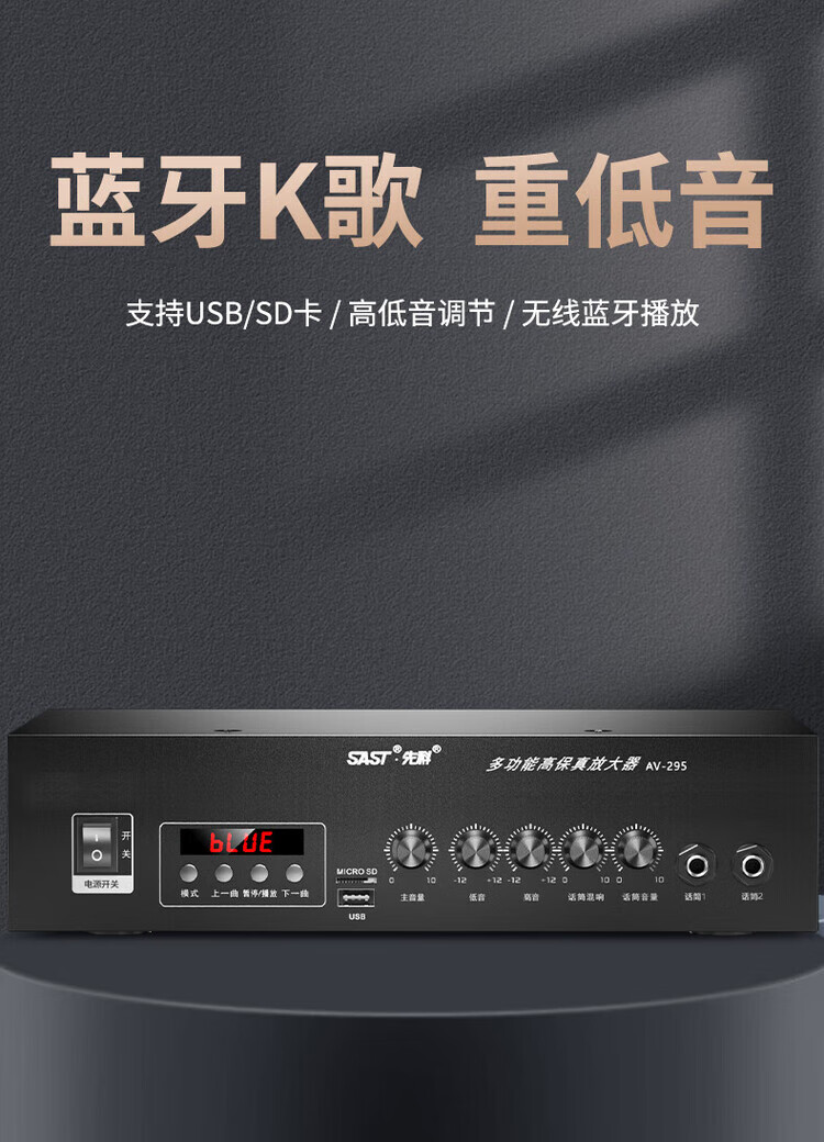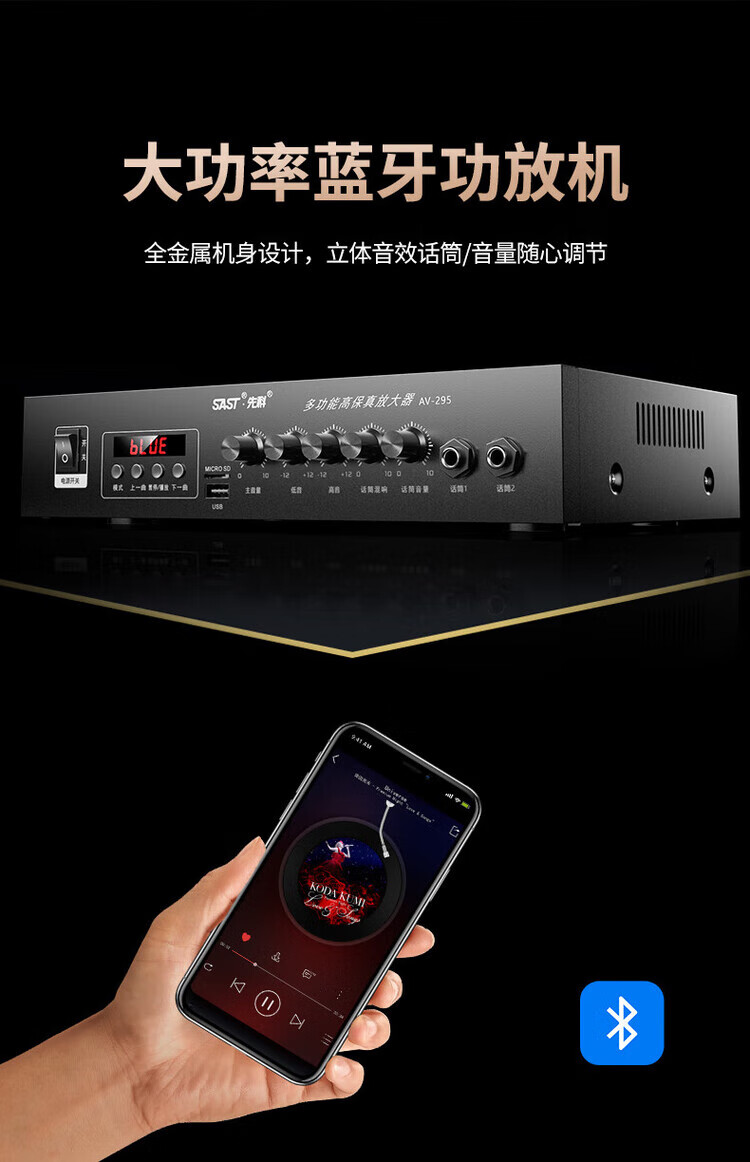 SAST AV295 home fixed resistance KTV power amplifier Bluetooth professional high power home theater conference audio amplifier fixed resistance power amplifier 100W (peak)