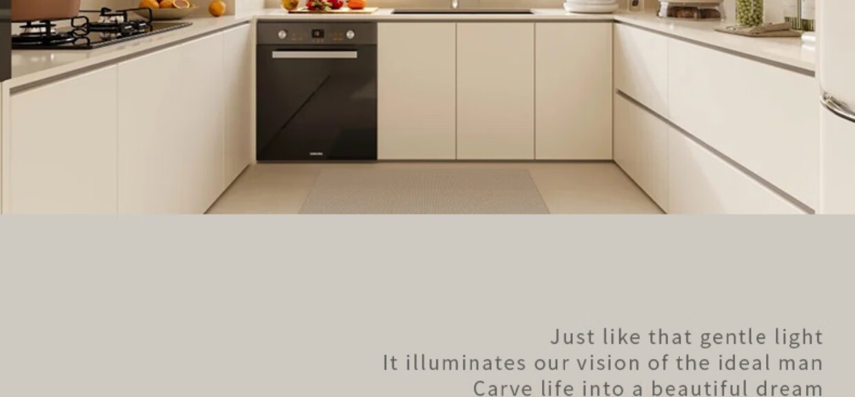 Wen Yijia Dunge modern cream style U-shaped cabinet overall home kitchen quartz stone stove custom-made whole house white 1 meter