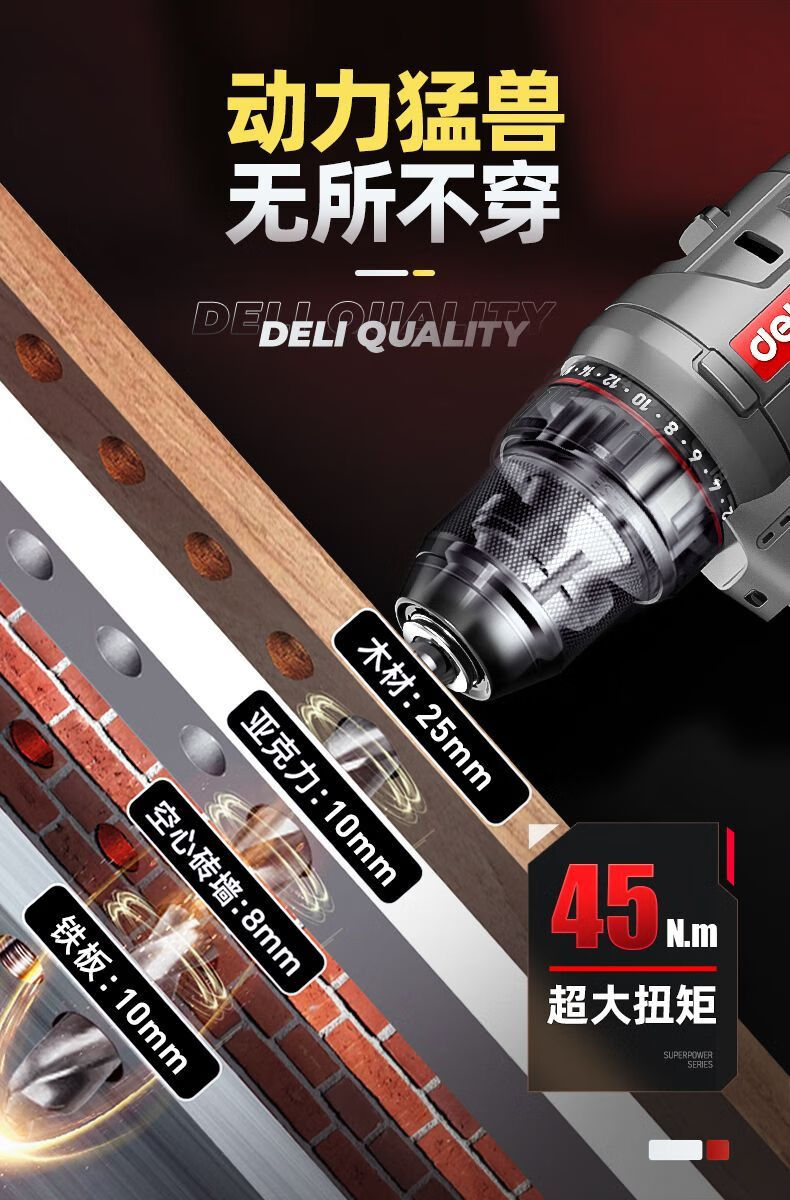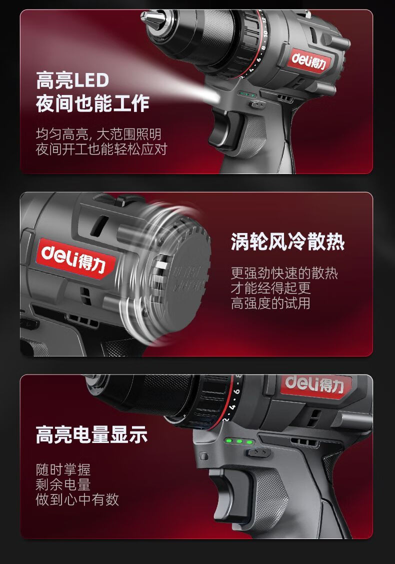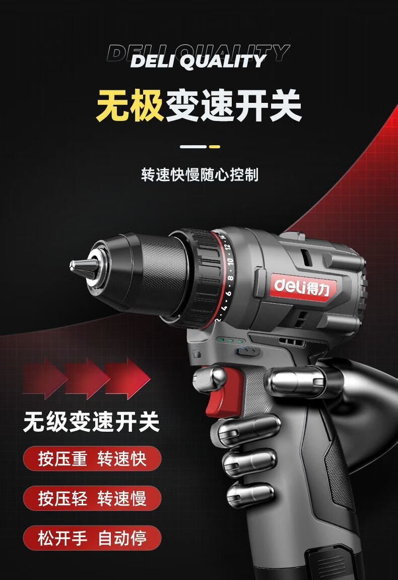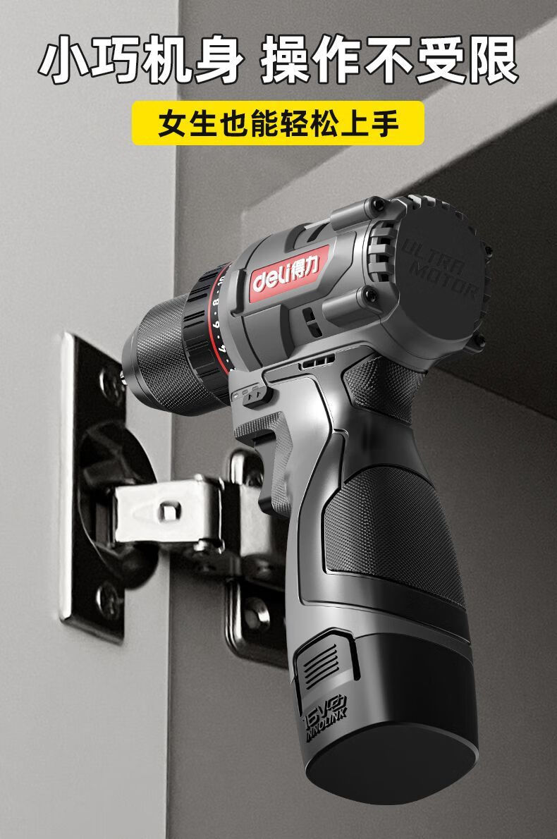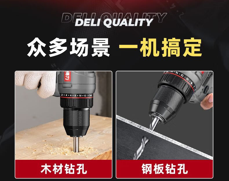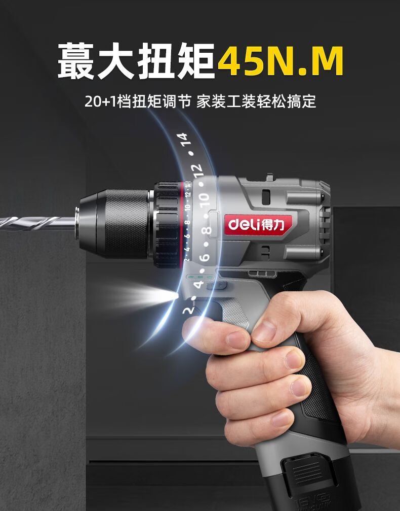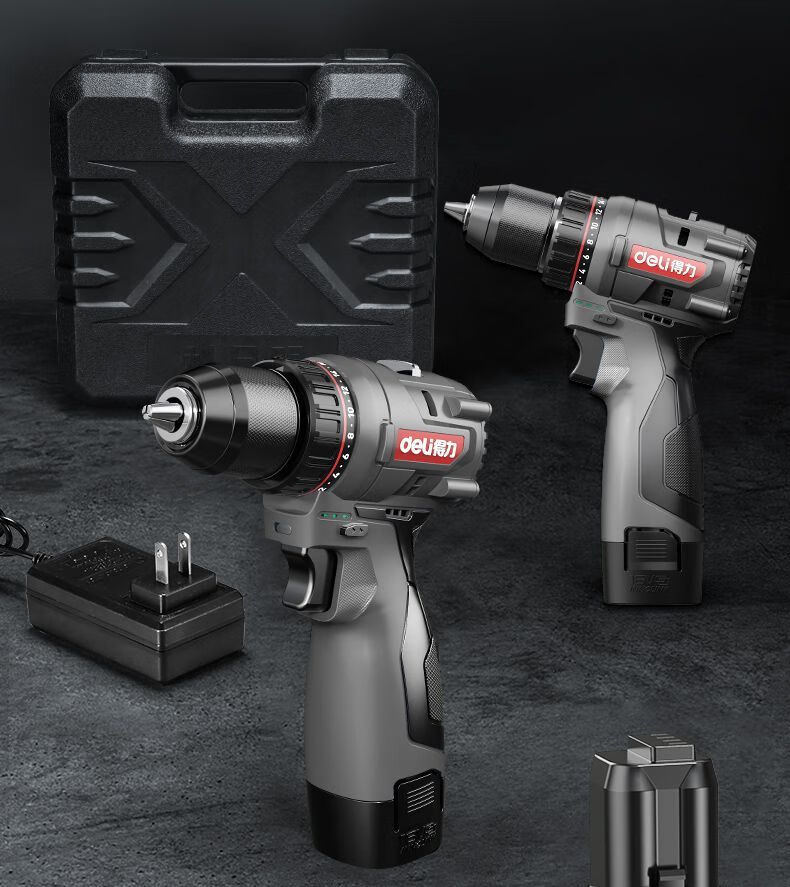 Deli (deli) hand drill brushless household pistol drill lithium impact drill punching multi-function rechargeable electric screwdriver 16V45N.m brushless dual battery twist drill set + tool box