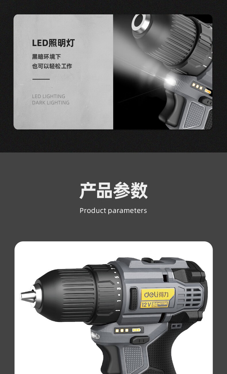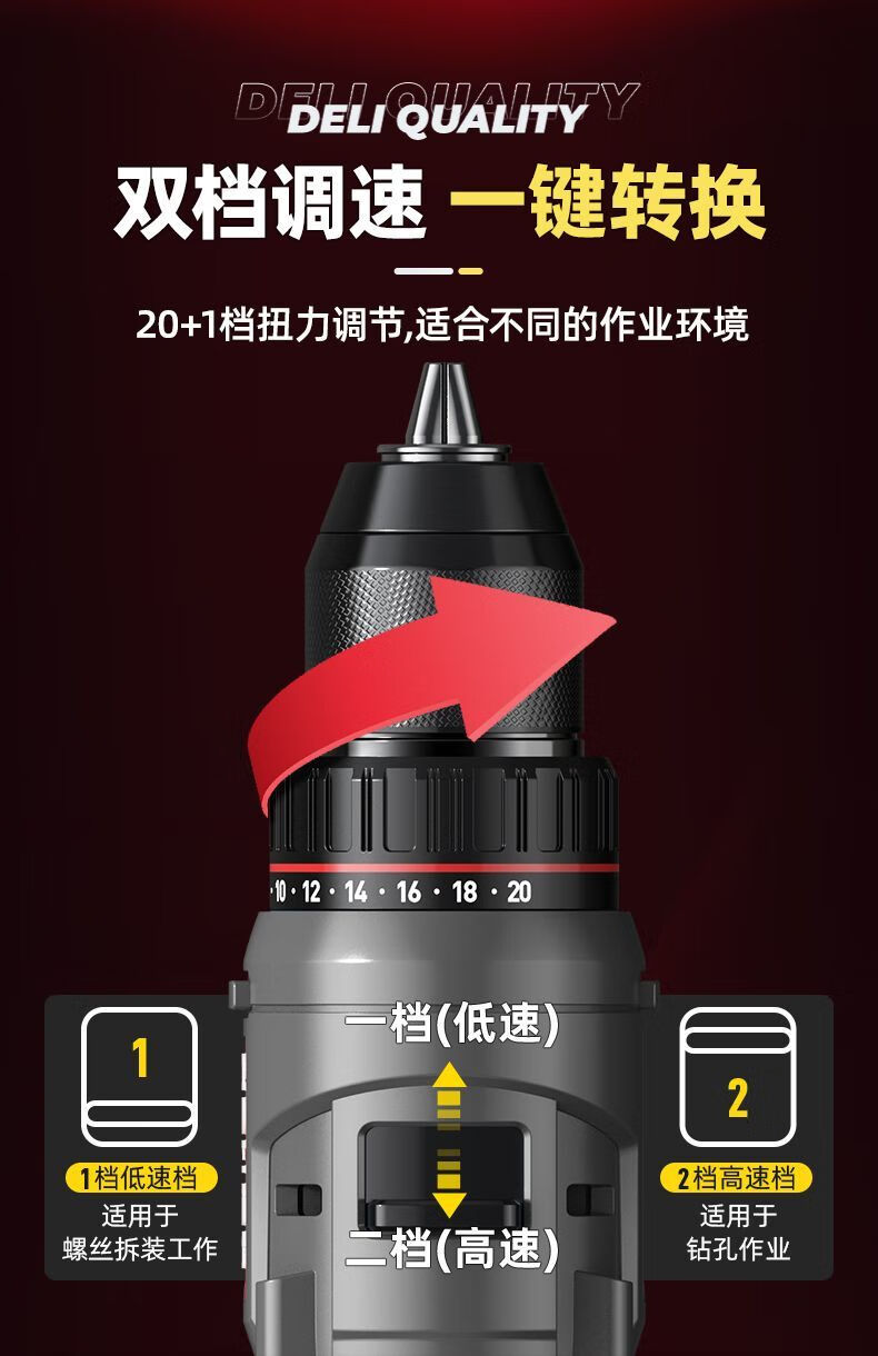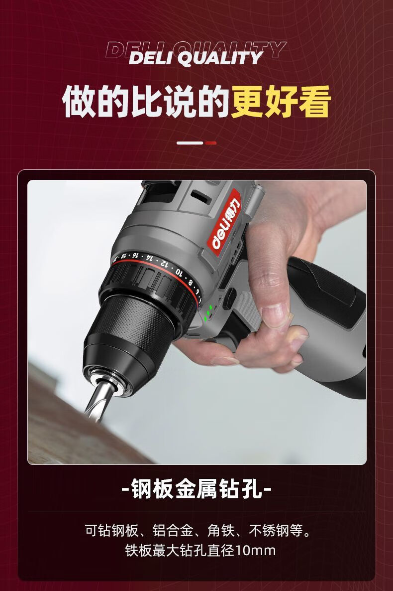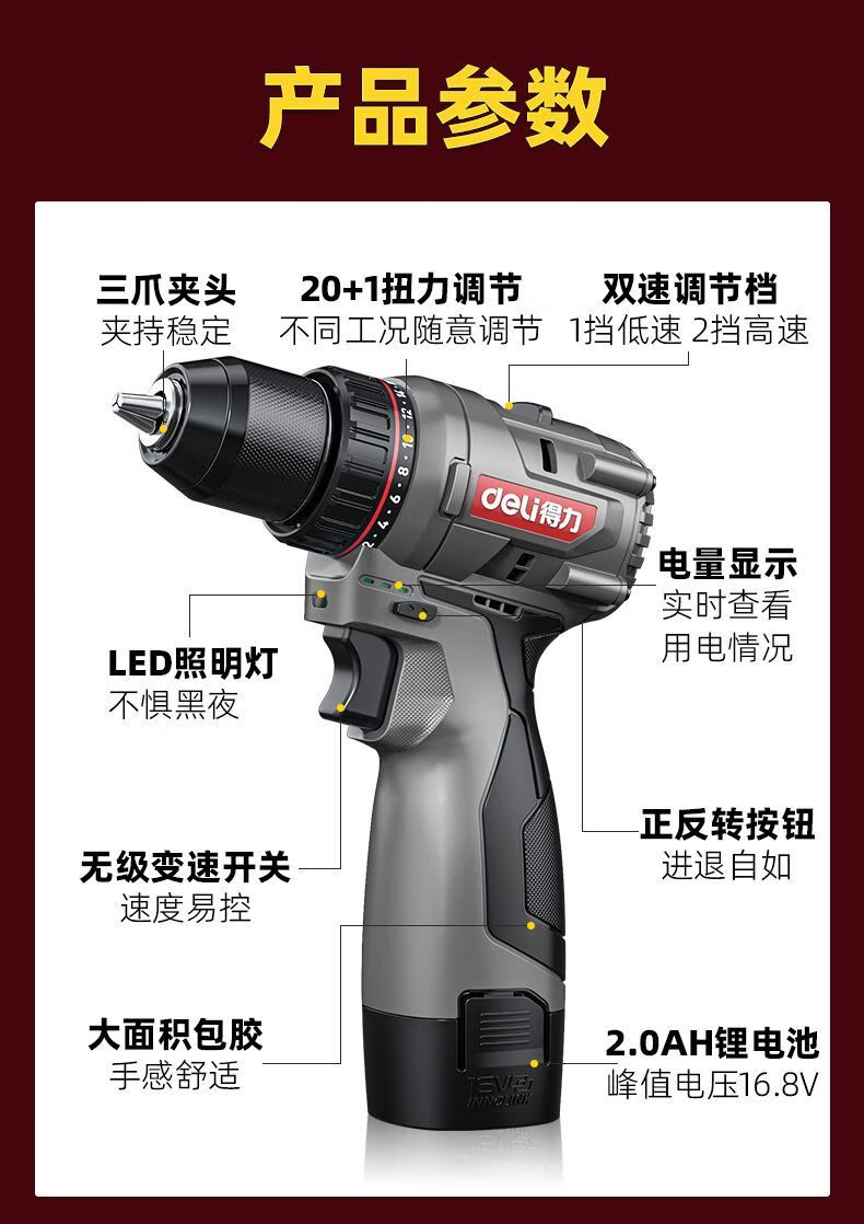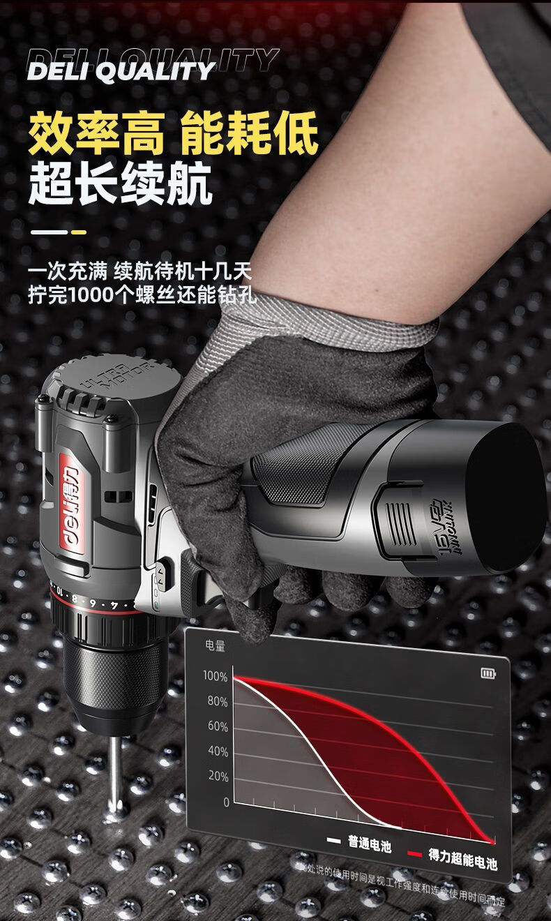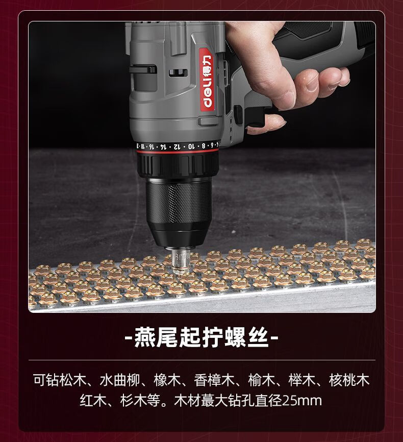 Deli (deli) hand drill brushless household pistol drill lithium impact drill punching multi-function rechargeable electric screwdriver 16V45N.m brushless dual battery twist drill set + tool box