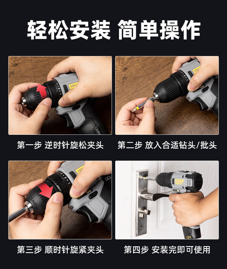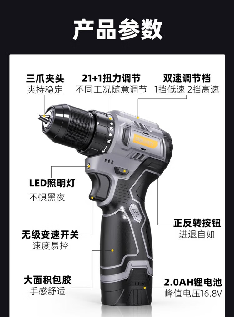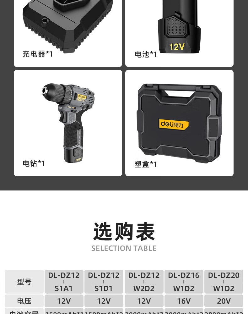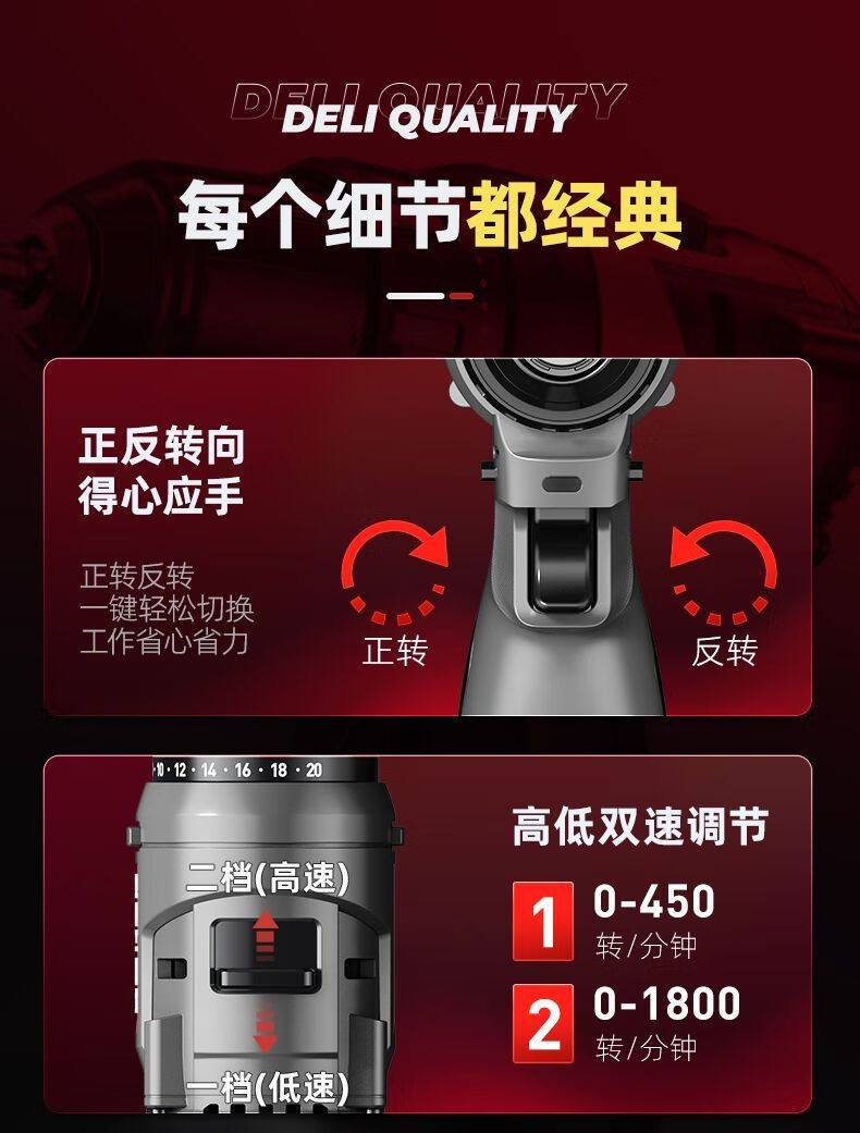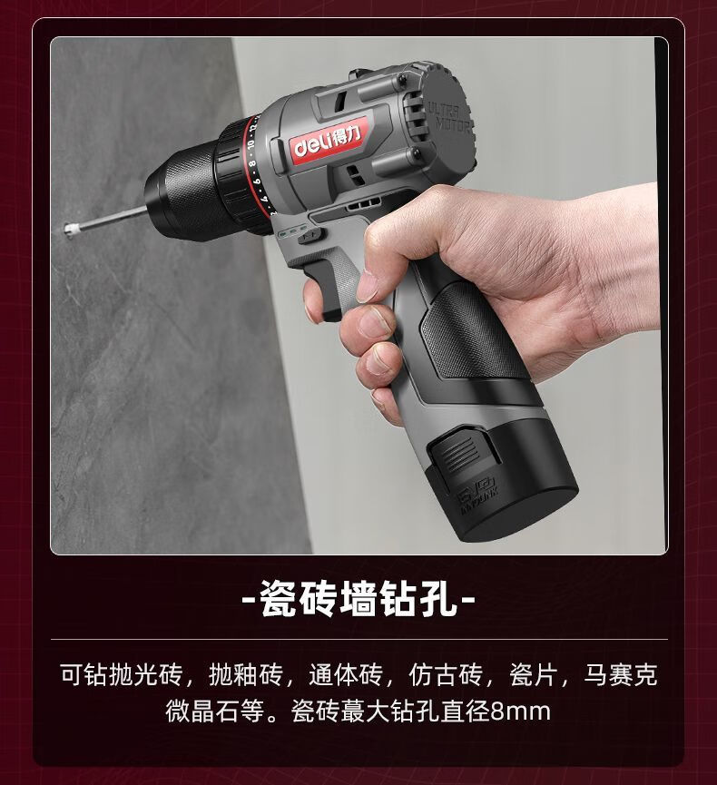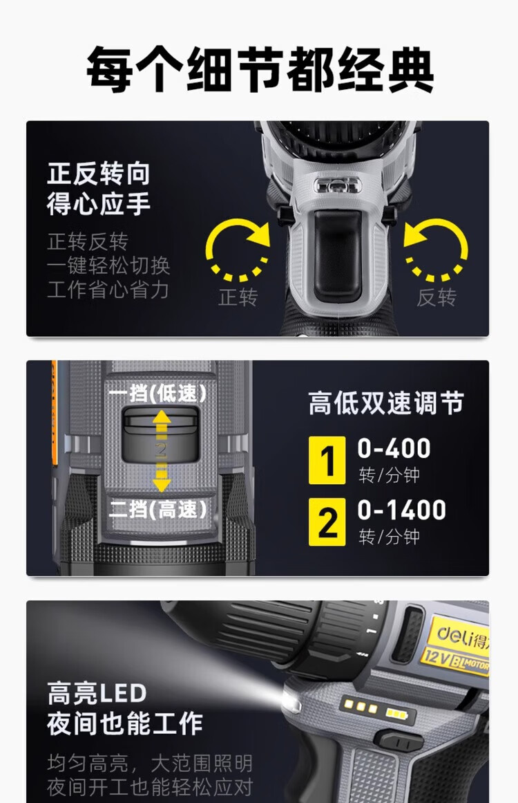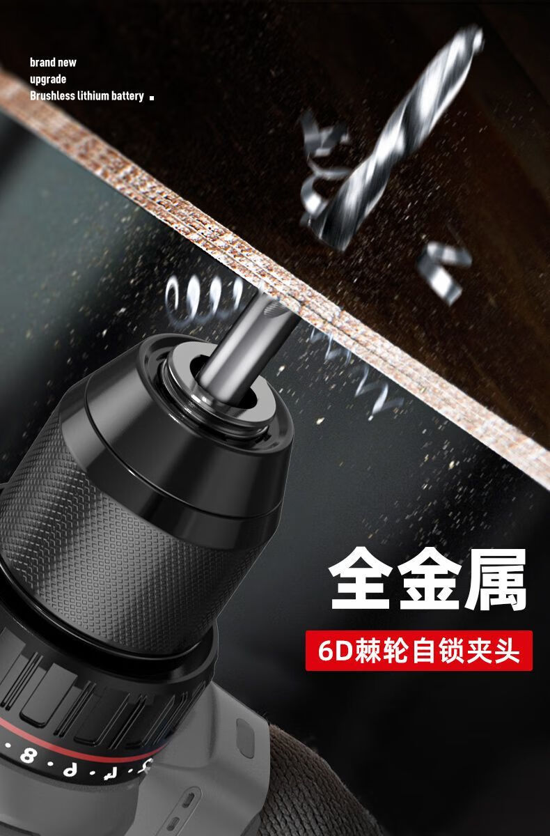 Deli (deli) hand drill brushless household pistol drill lithium impact drill punching multi-function rechargeable electric screwdriver 16V45N.m brushless dual battery twist drill set + tool box