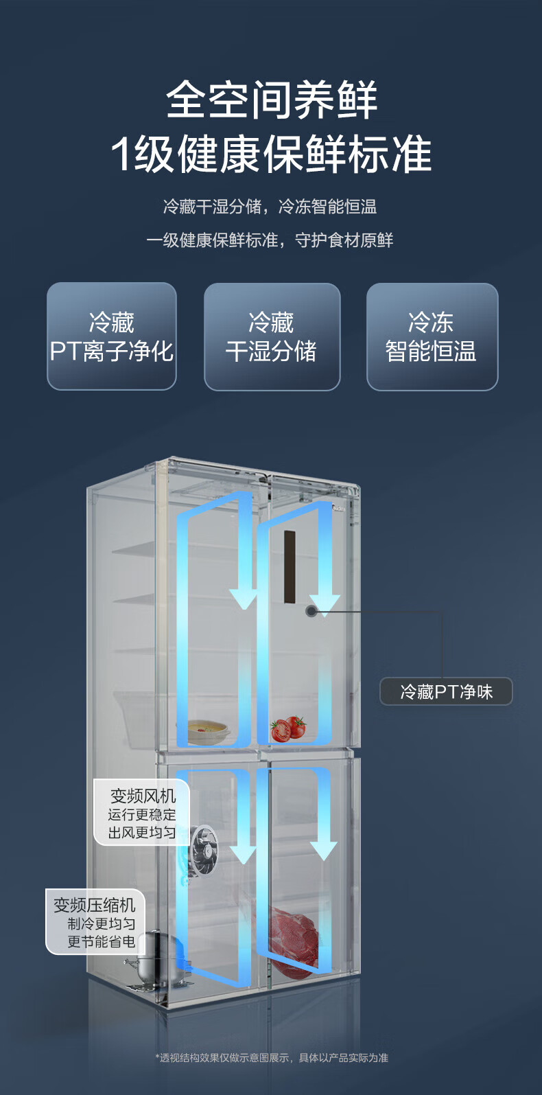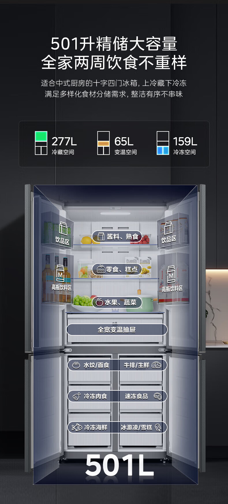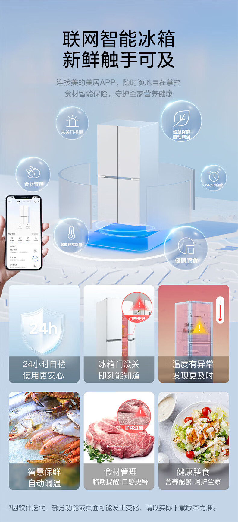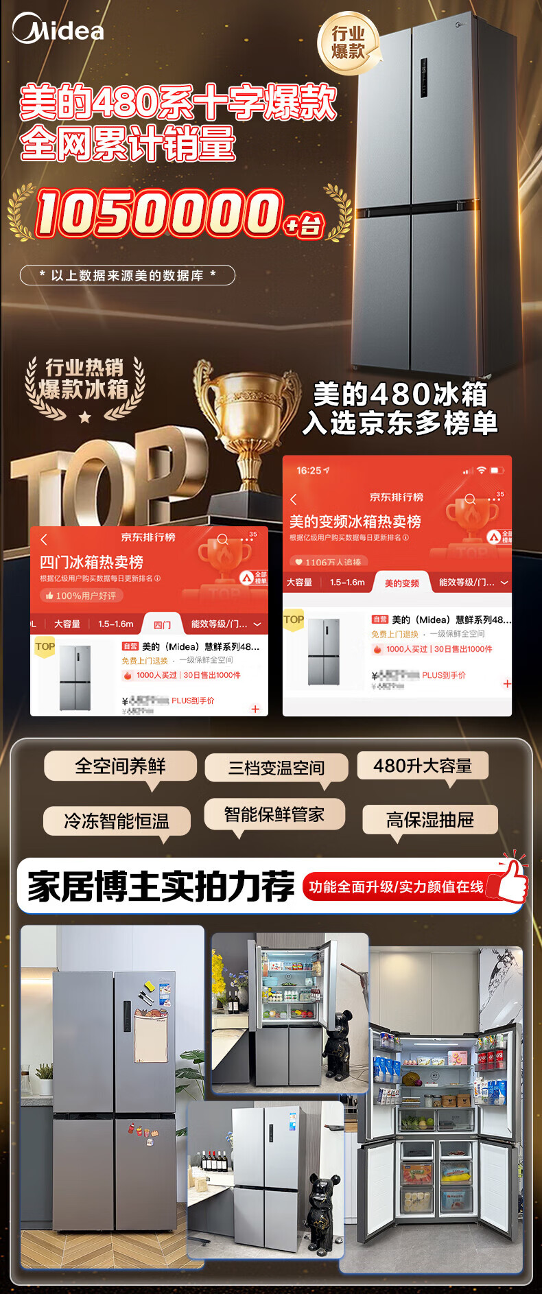 Midea refrigerator double-door four-door first-level energy efficiency double frequency conversion cross-door household refrigerator dual-cycle air-cooled frost-free large capacity 480wifi intelligent control/531/501 first-level energy efficiency 480L-480WSPZM(E)