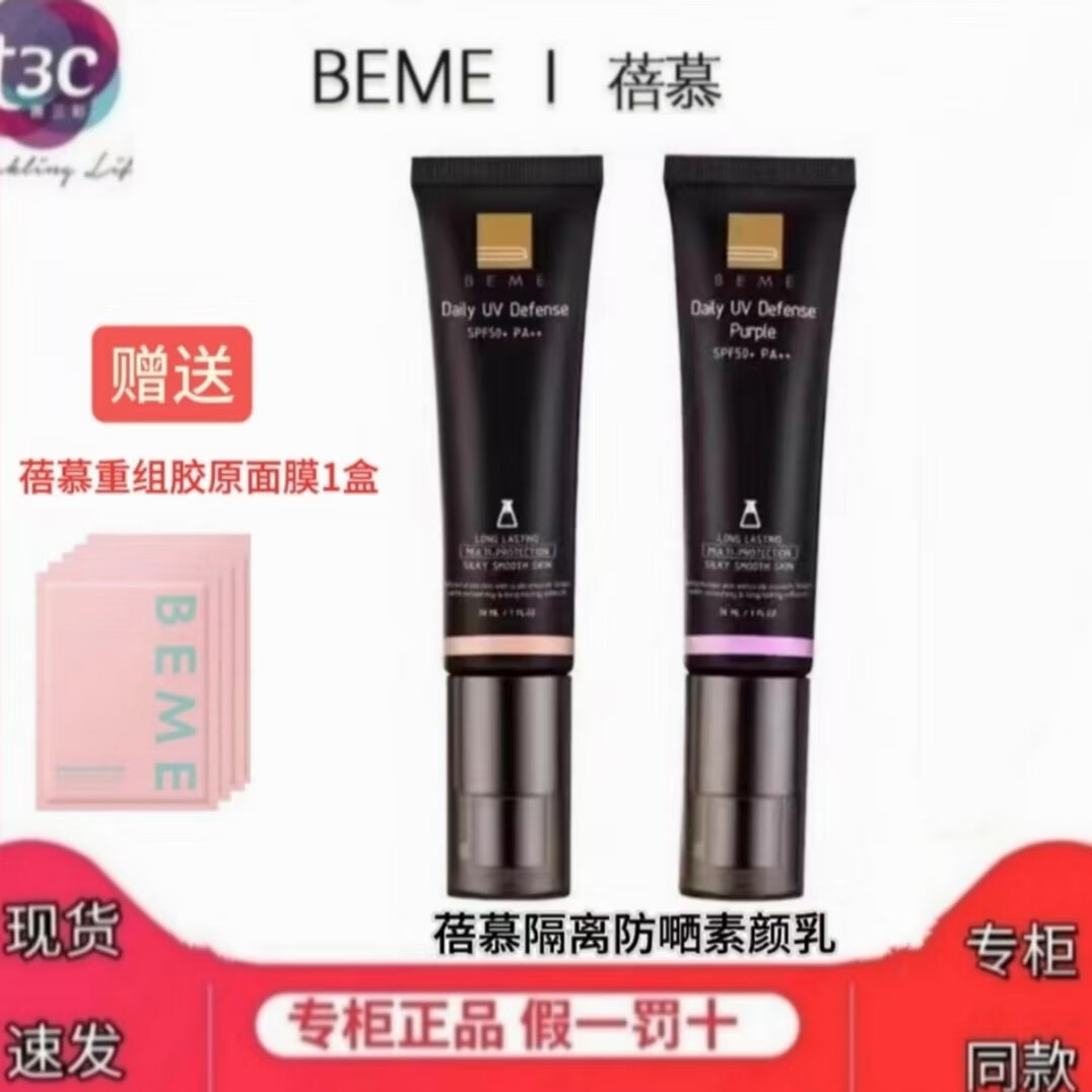 Beimu Isolation Sunscreen Cream No-makeup Milk Nourishment Two-in-one UV SPF50/PA++ Moisturizing Concealer Brightening Skin Purple (Suitable for dark yellow to dark skin, whitening and brightening
