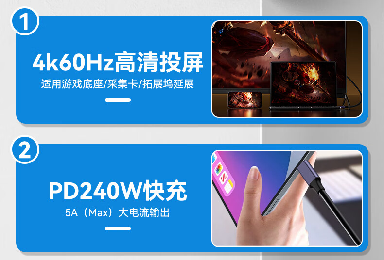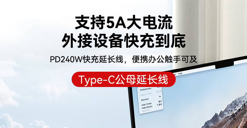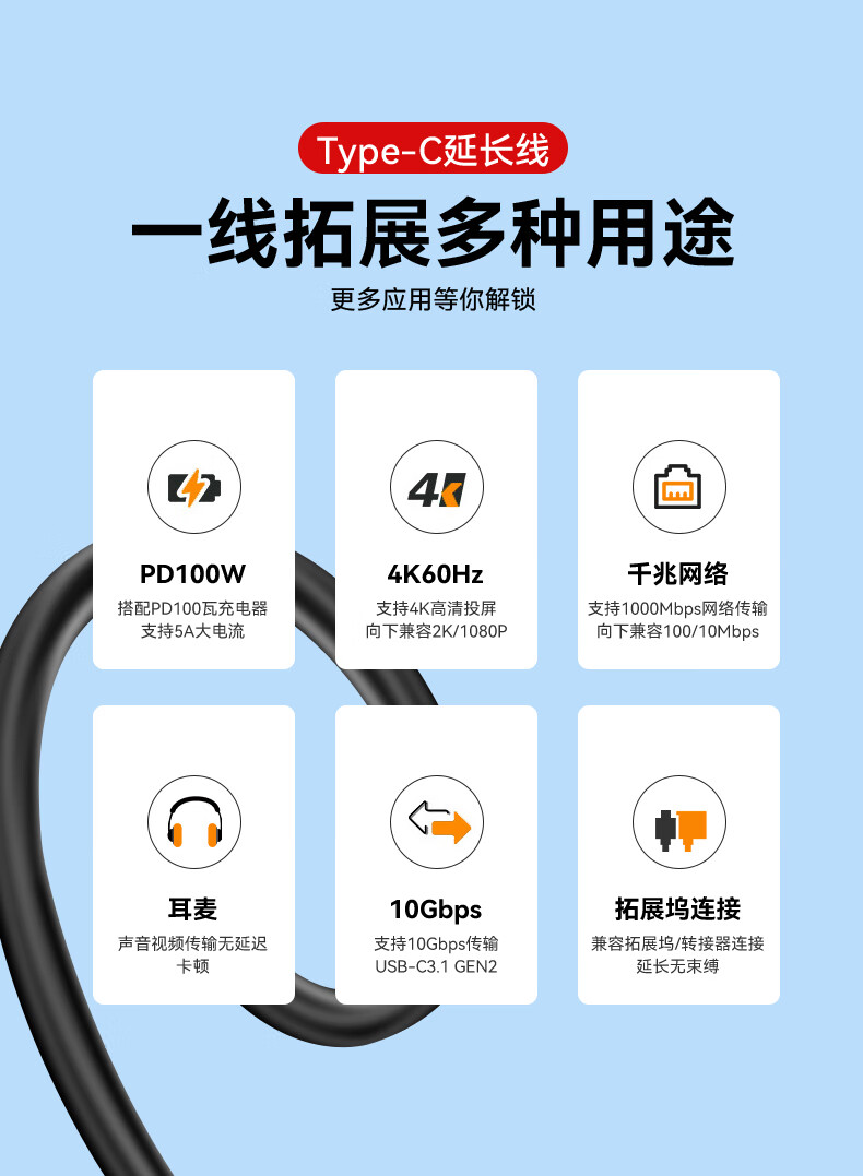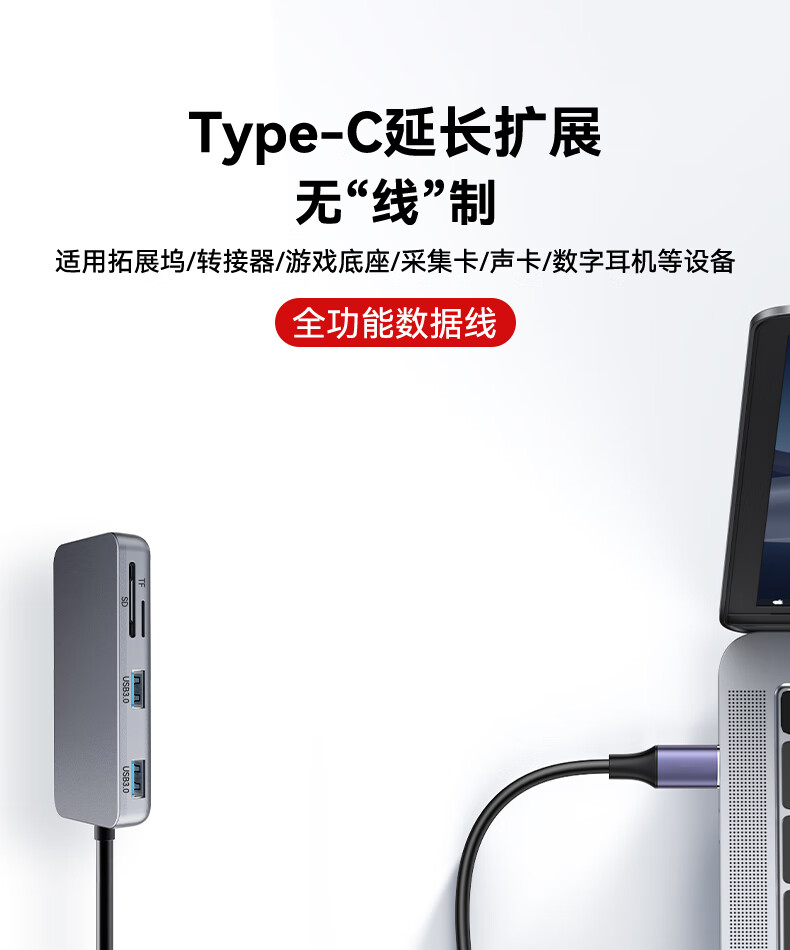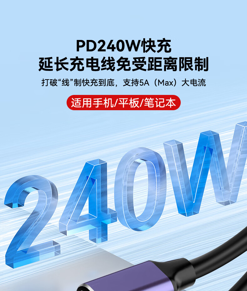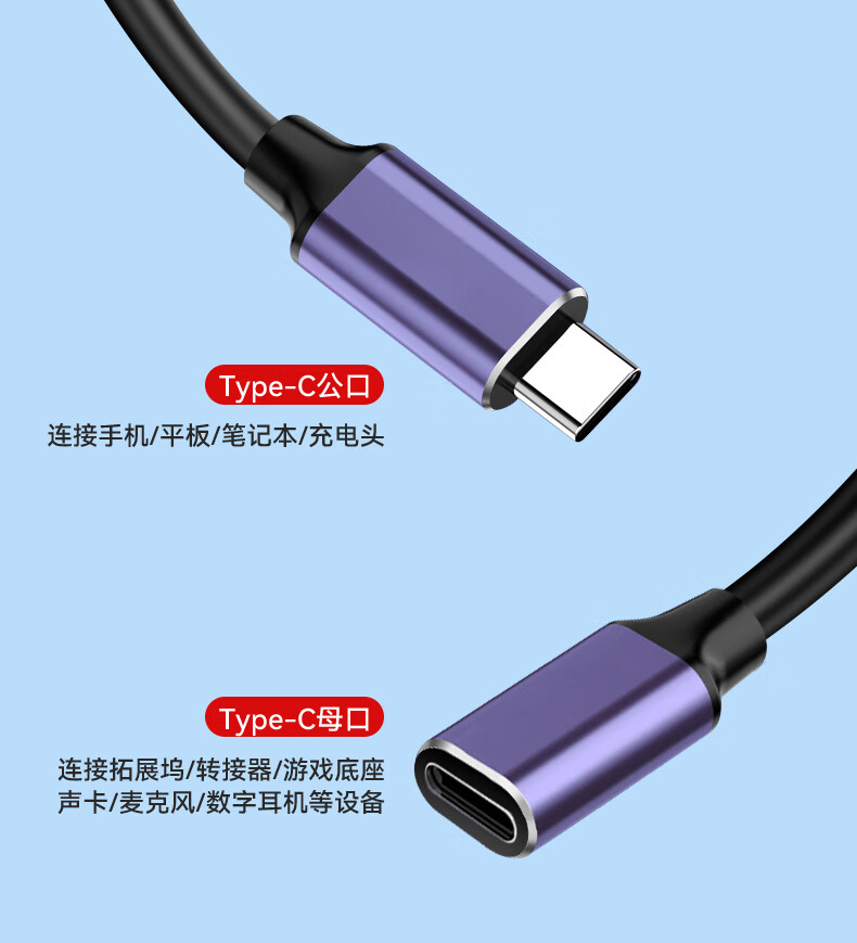 Type-C male-to-female extension cable is suitable for docking station switch adapter game chicken extension cable microphone extension conversion PD240W fast charging audio and video transmission Type-C male-female extension cable Note: distinguish single-sided compatible use 0.5 meters