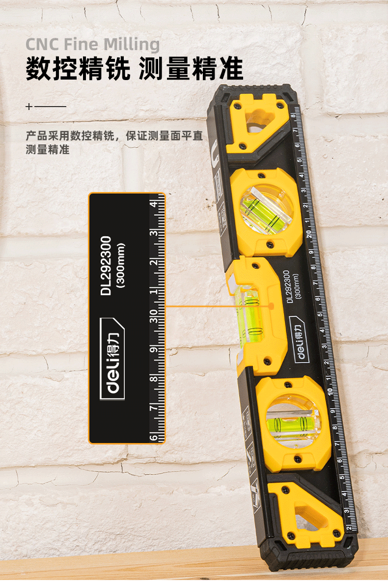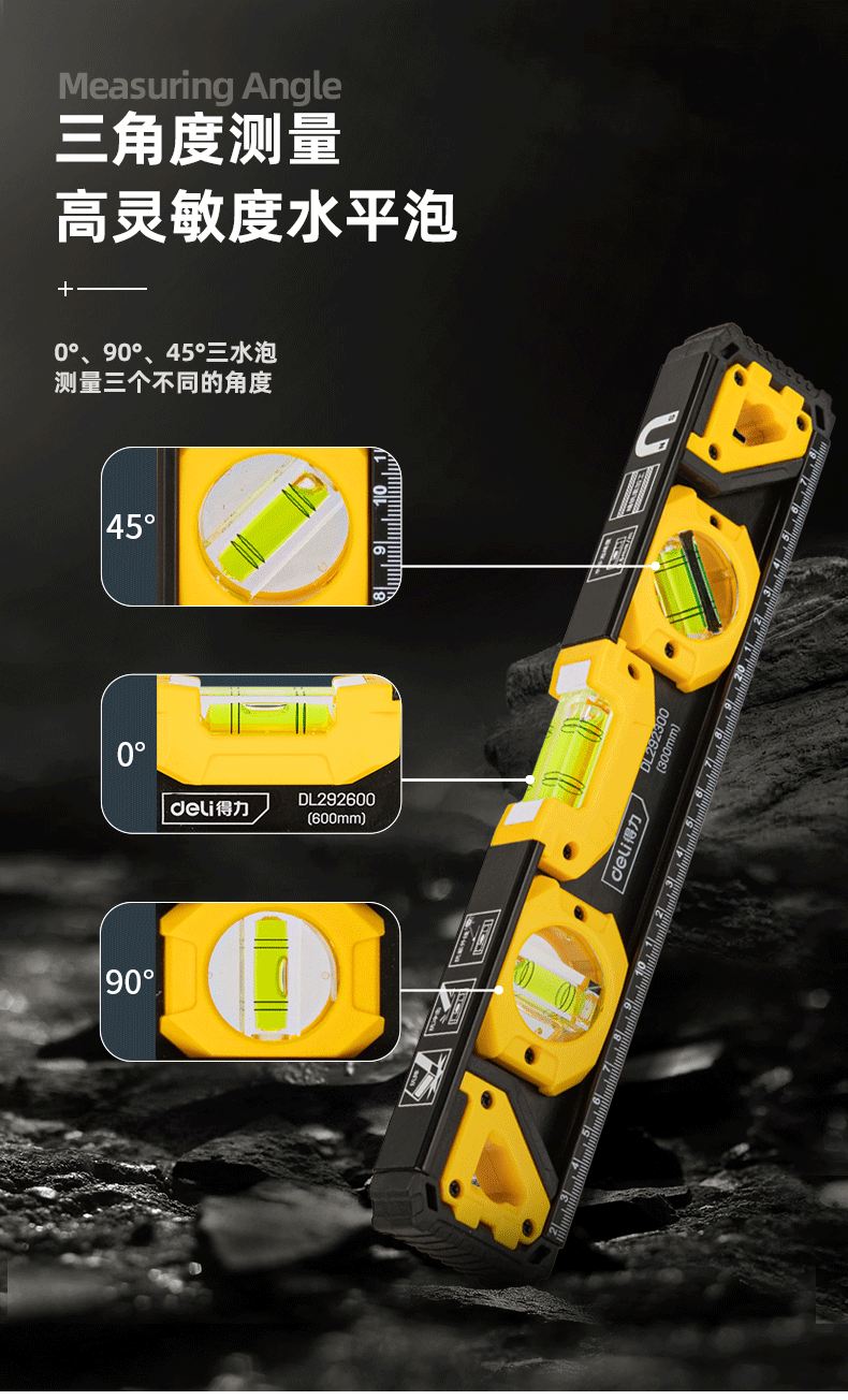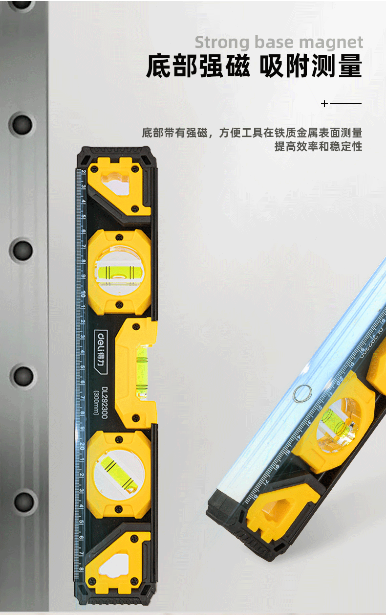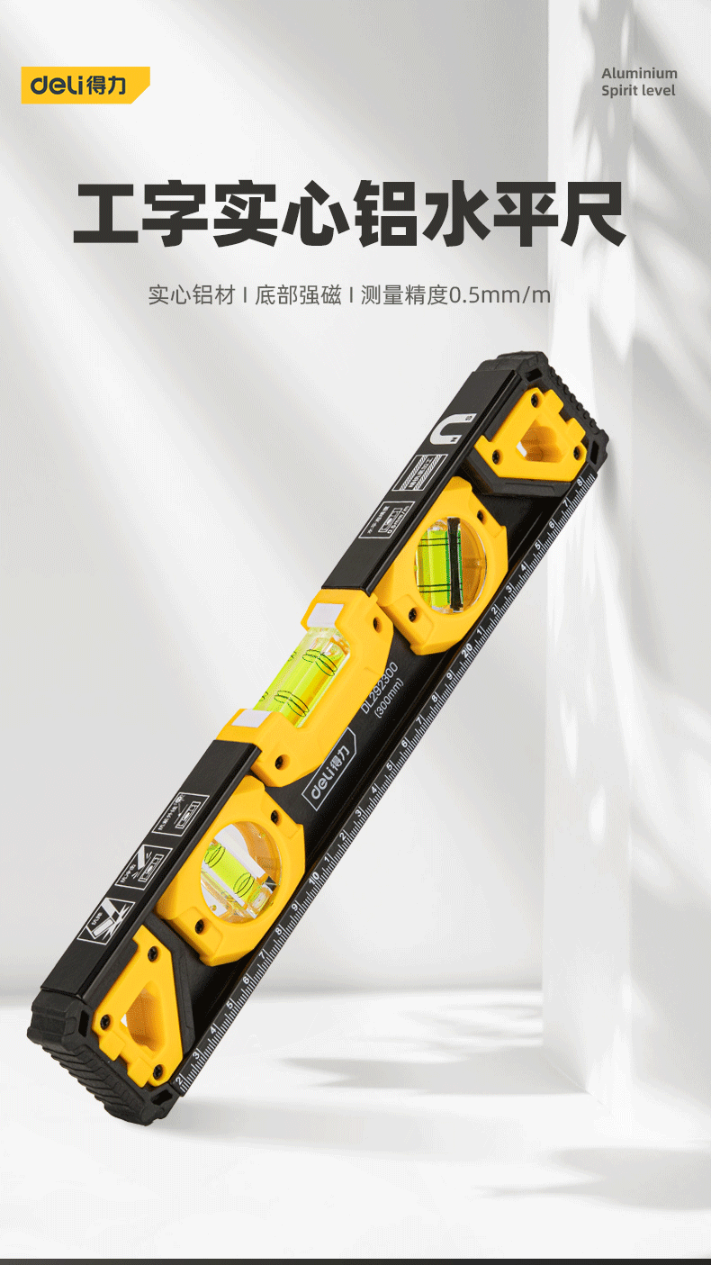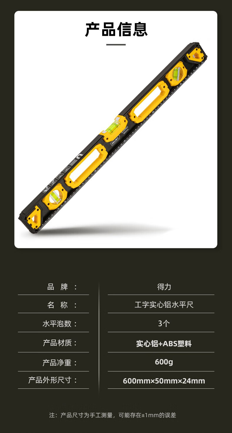Deli level high-precision solid cast aluminum heavy-duty aluminum alloy fan small precision level leveling scale anti-fall and wear-resistant with strong magnet 60cm three blisters solid aluminum