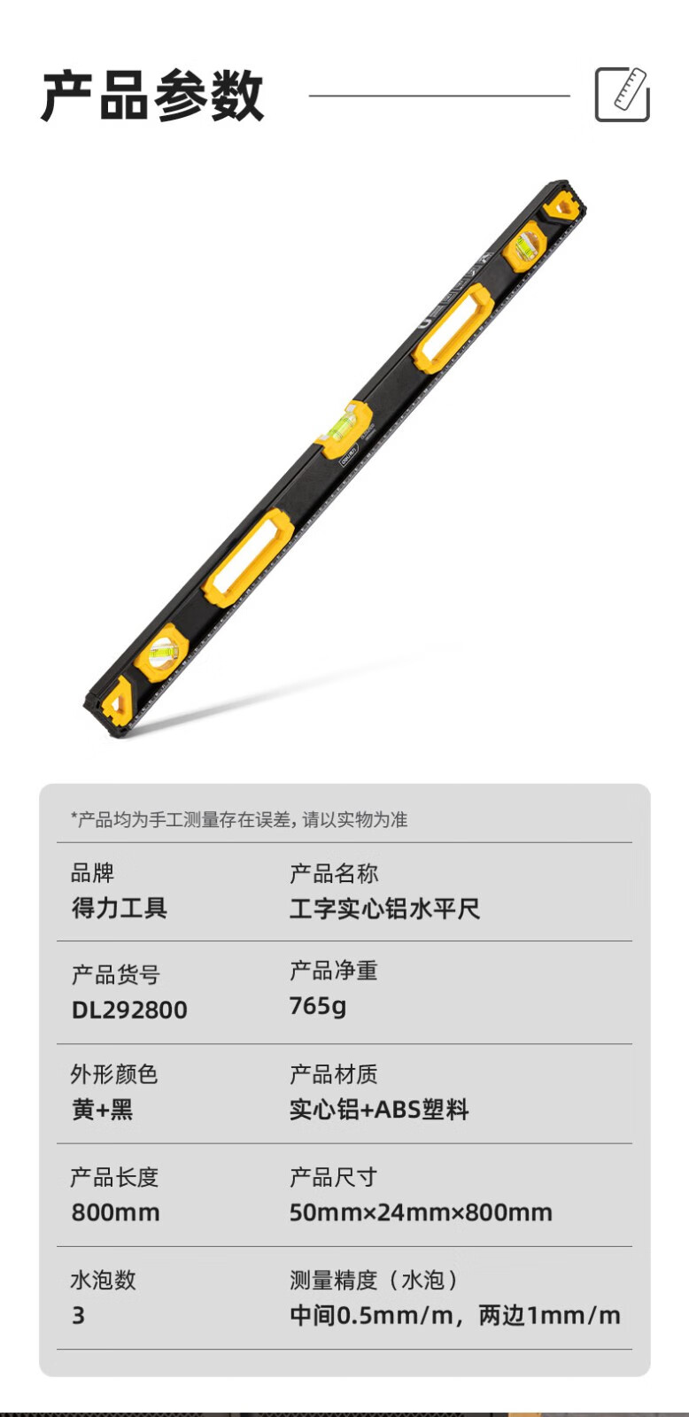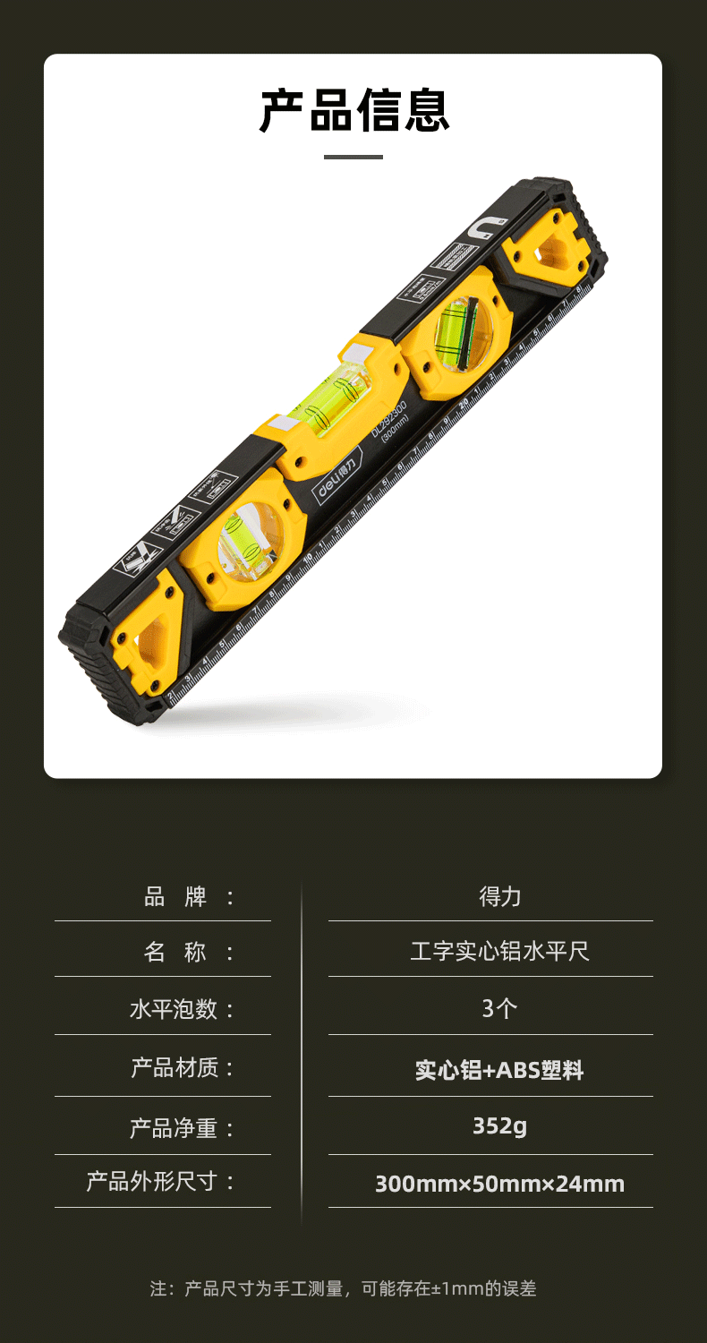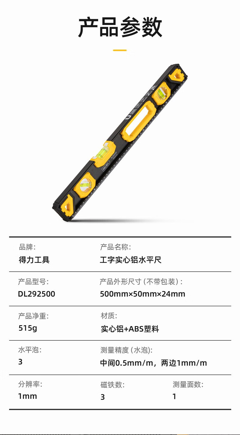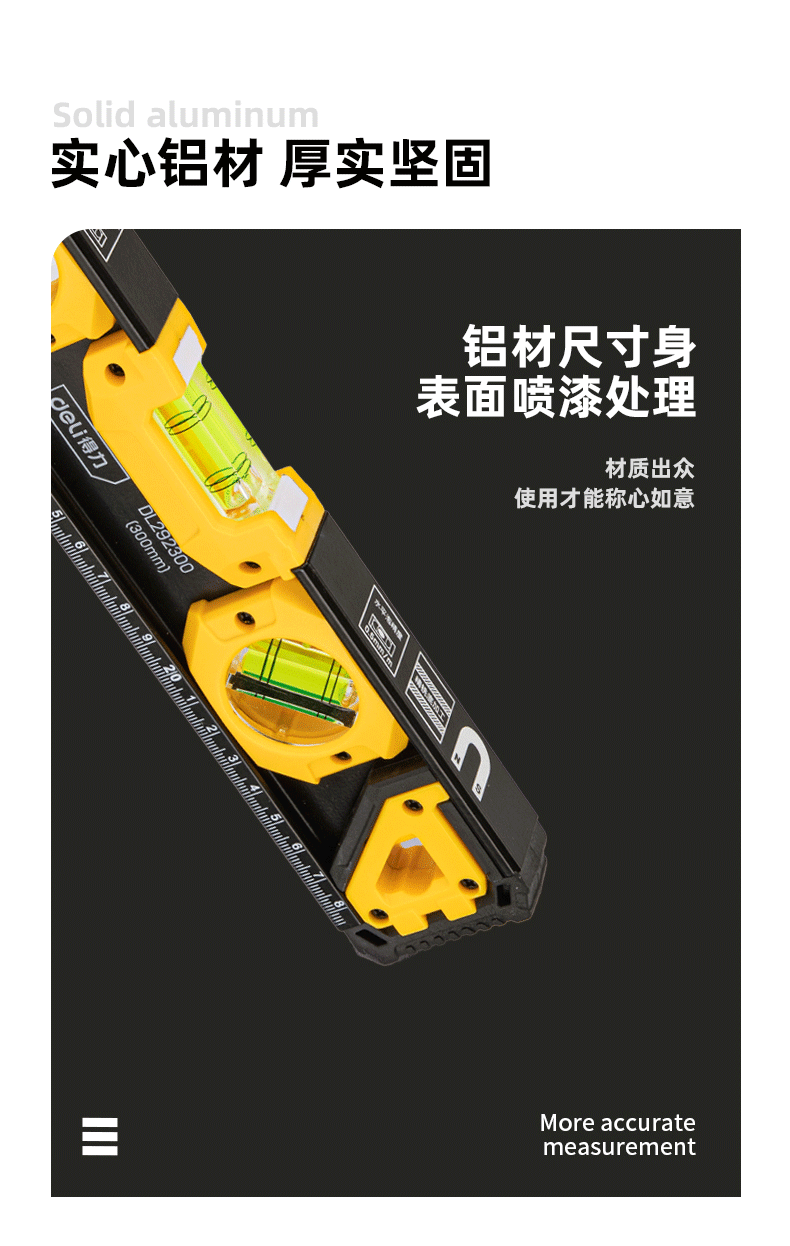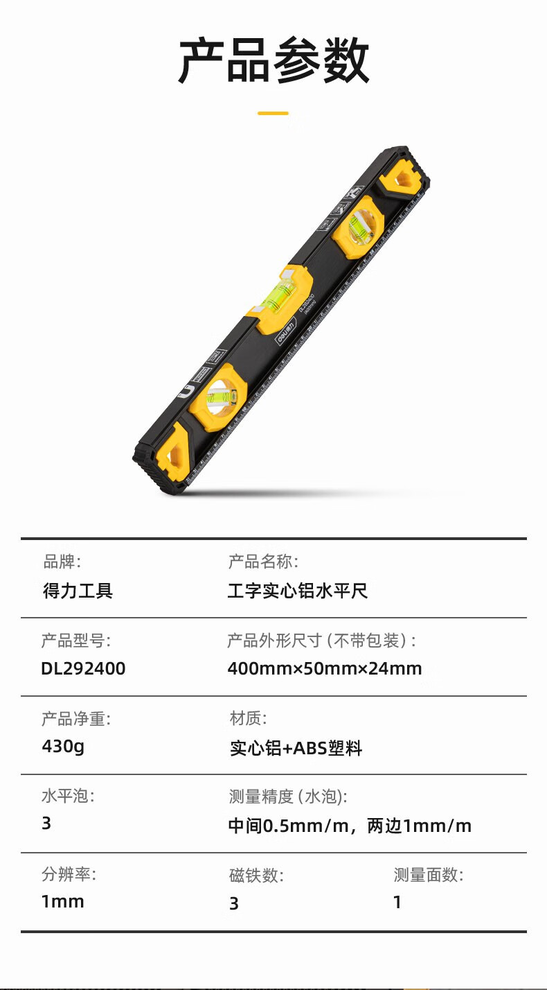 Deli level high-precision solid cast aluminum heavy-duty aluminum alloy fan small precision level leveling scale anti-fall and wear-resistant with strong magnet 60cm three blisters solid aluminum