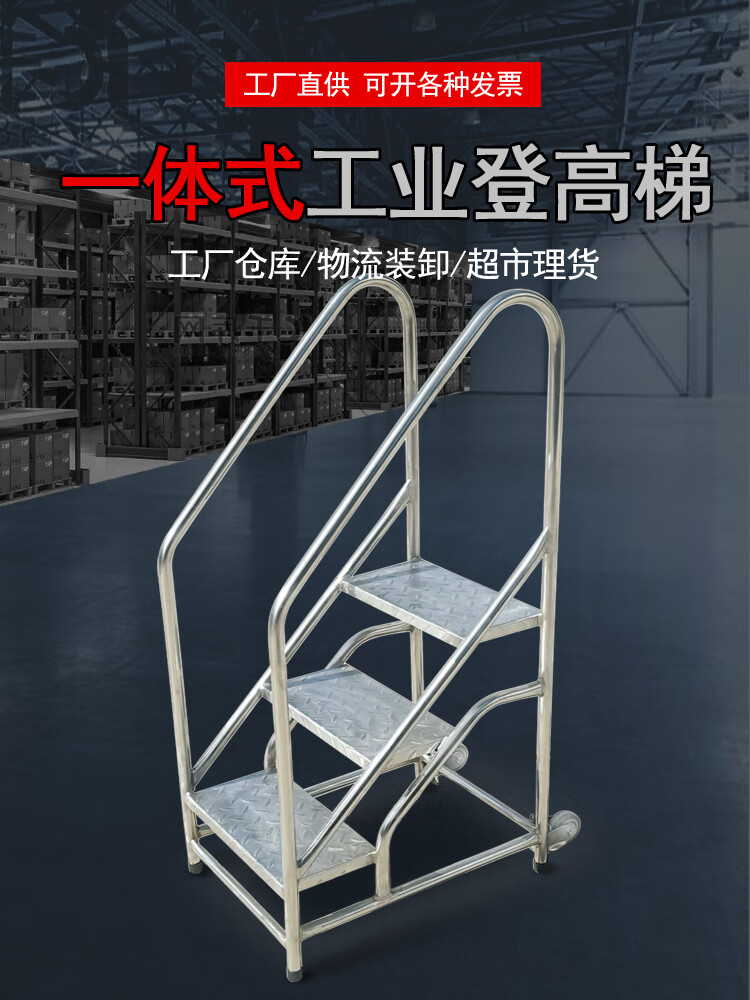 Extra thick 304 stainless steel step stool step ladder household ladder warehouse mobile ladder shelf climbing ladder two or three step ladder 3-step platform height 75 cm handrail + 2 rear wheels (extra thick 304 stainless steel) special invoice for 13% value-added tax